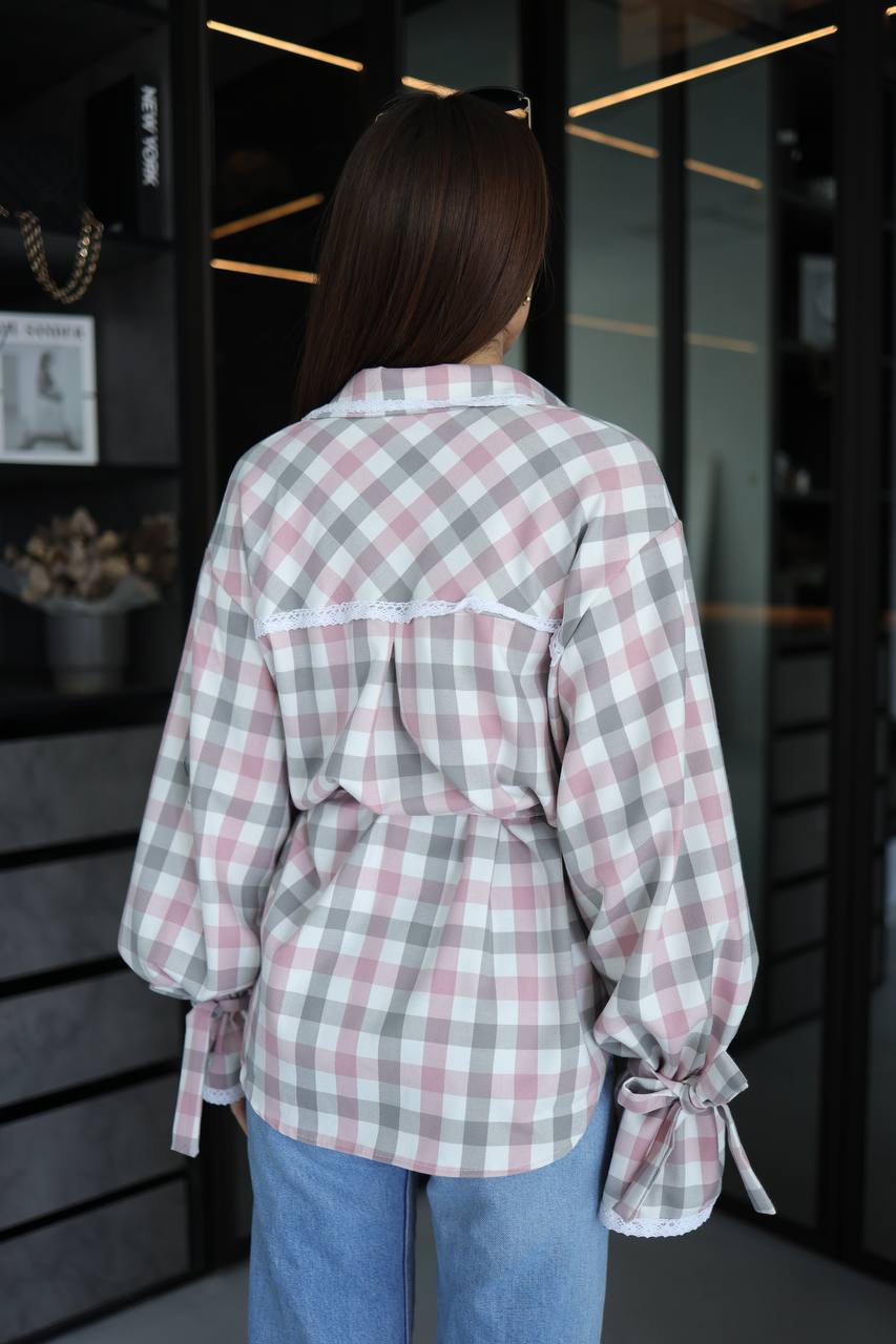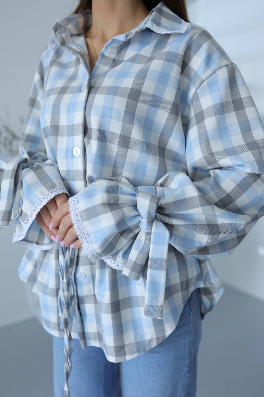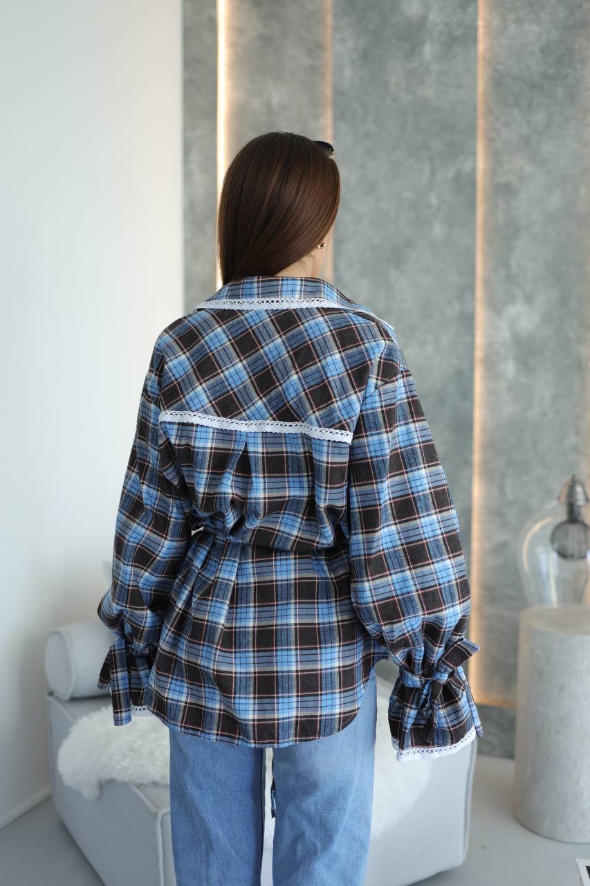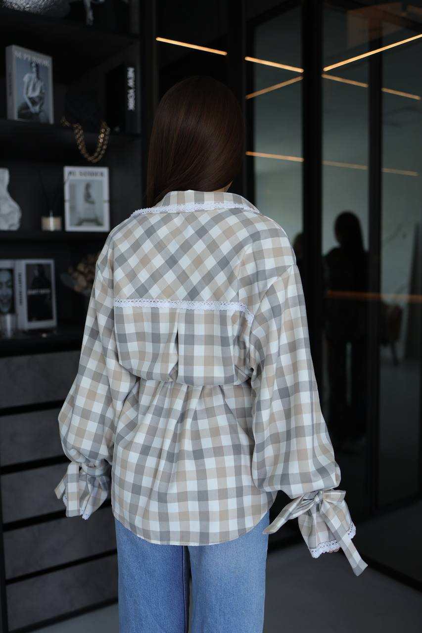 Стильна та зручна сорочка в клітинку у дуеті з мереживом у трендових кольорах,незамінна річ жіночого гардеробу, вона ідеально підійде для прогулянок та повсякденних образів,сорочка відмінної якості та пошиття.