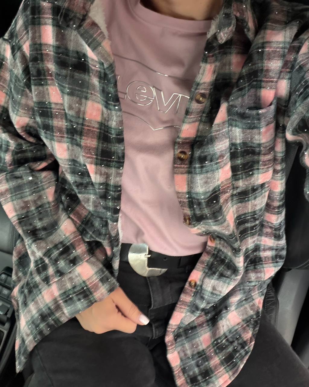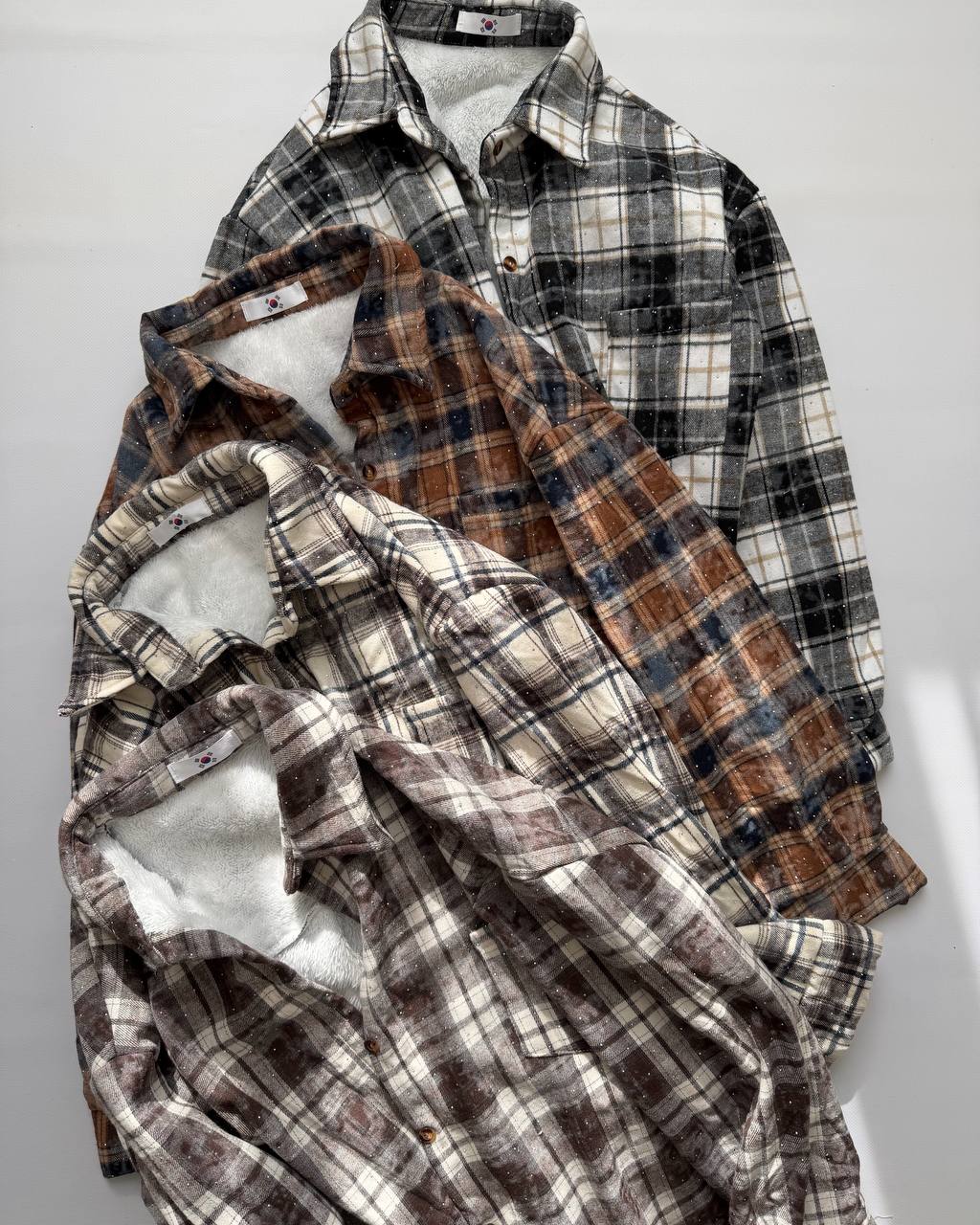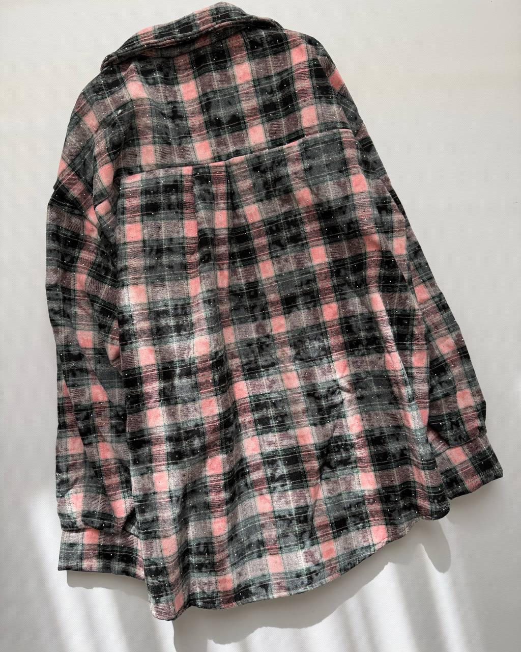 Стильна сорочка, прикрашена стразами — тепла, м’яка та комфортна. Ідеально підходить для холодної пори року, додає образу затишку й елегантності.