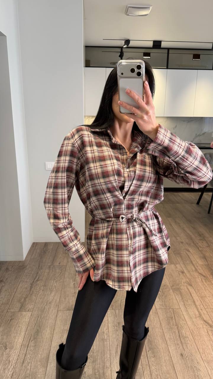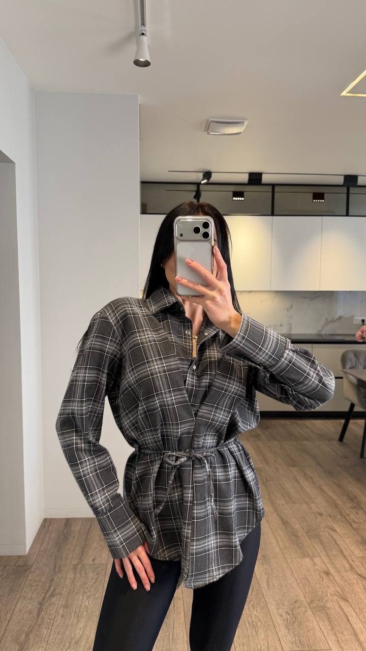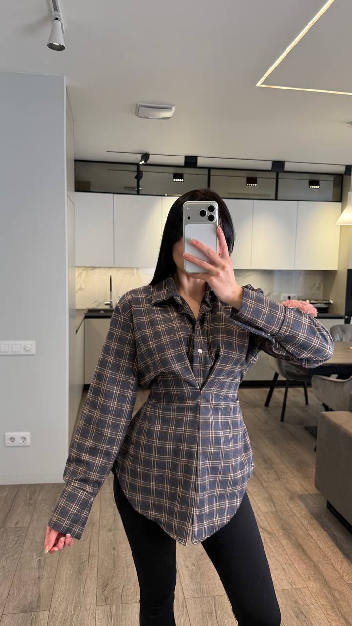 Трендова сорочка в стильну клітинку — річ, яка одразу робить образ довершеним Модель має незвичний крій із імітацією жилета та запахом спереду, що створює красивий акцент на талії. Завʼязка дозволяє регулювати посадку та підкреслити силует✨