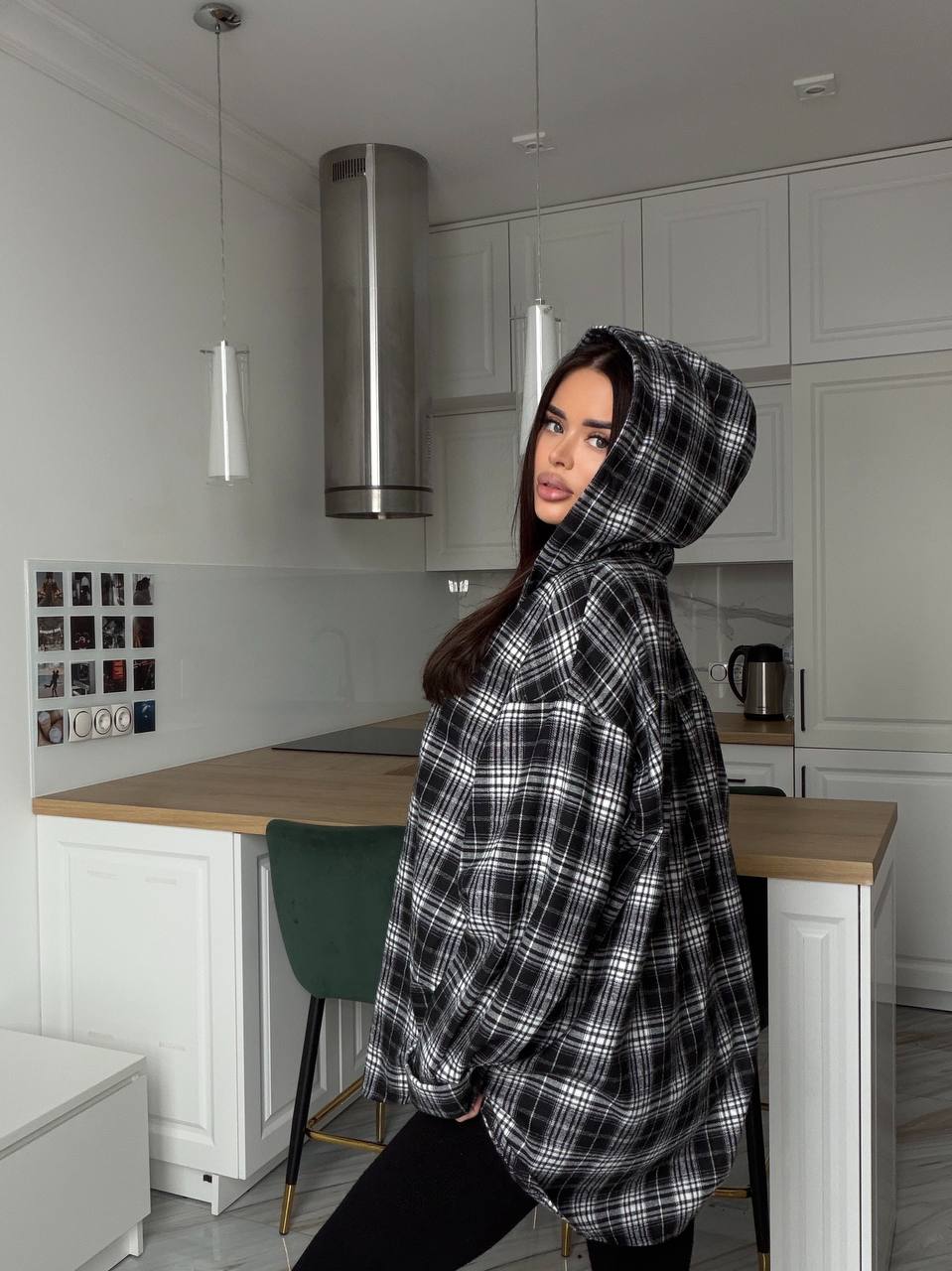 Стильна та зручна сорочка в клітинку, подвійний капюшон . Незамінна річ жіночого гардеробу, сорочка ідеально підійде для прогулянок та повсякденних образів