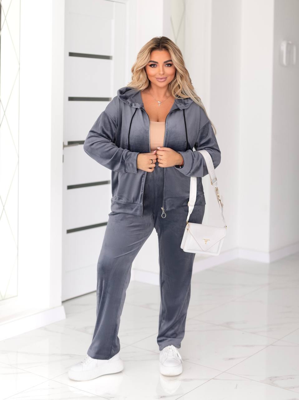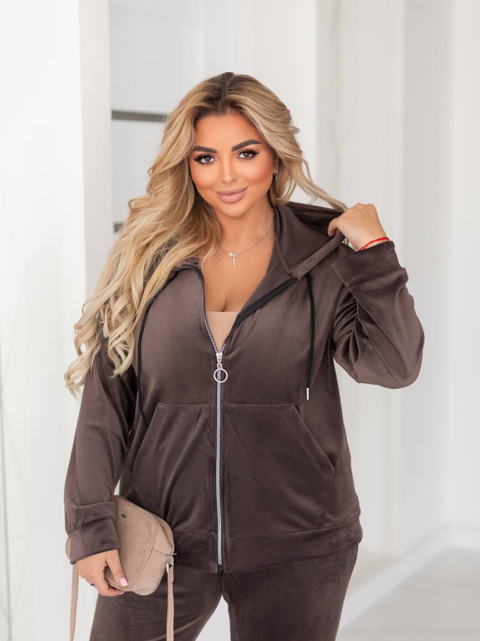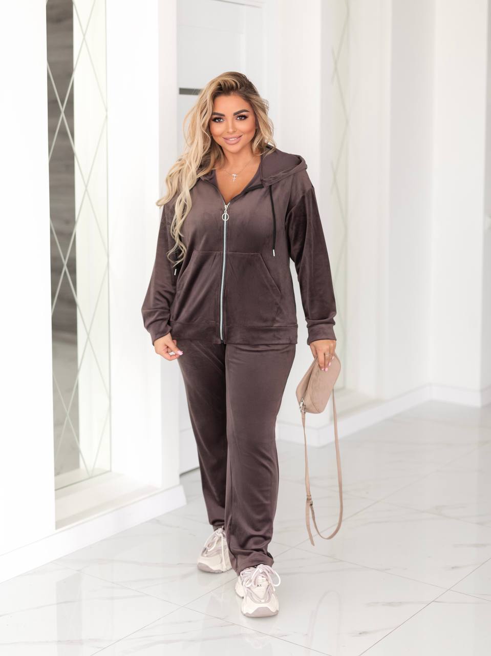 арт 0080 Костюм Тканина: велюр спорт Розміри: 50-52,54-56,58-60,62-64 Кольори: сірий, чорний, шоколад Кофта на молніі, з кишенями Штани на резинці , з кишенями, висока посадка Виміри у спокійному стані: Кофта Ог 120/130/140/150 Довжина кофти 65/65/66/67 Довжина рукава 77/78/79/80 Штани Ос 116/126/138/148 От 88-120/92-130/95-140/100-150 Довжина 102/104/106/108 Шаг 70/72/74/76