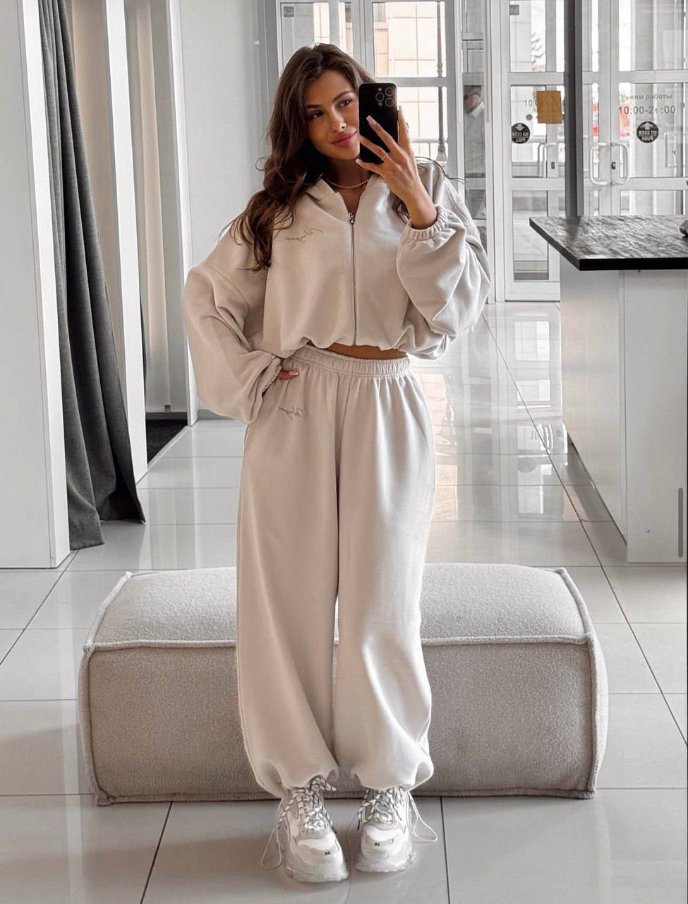 ▪️Тканина: Турецька тринить «Пенье»на мʼякому флісі, вишивка, є утяжки на кофті та на штанах, подвійний капюшон