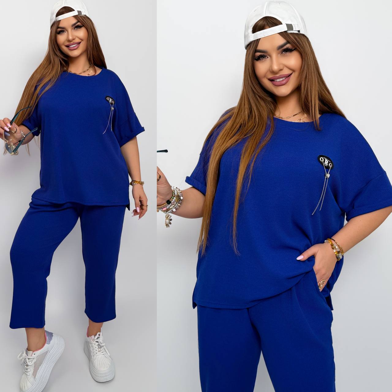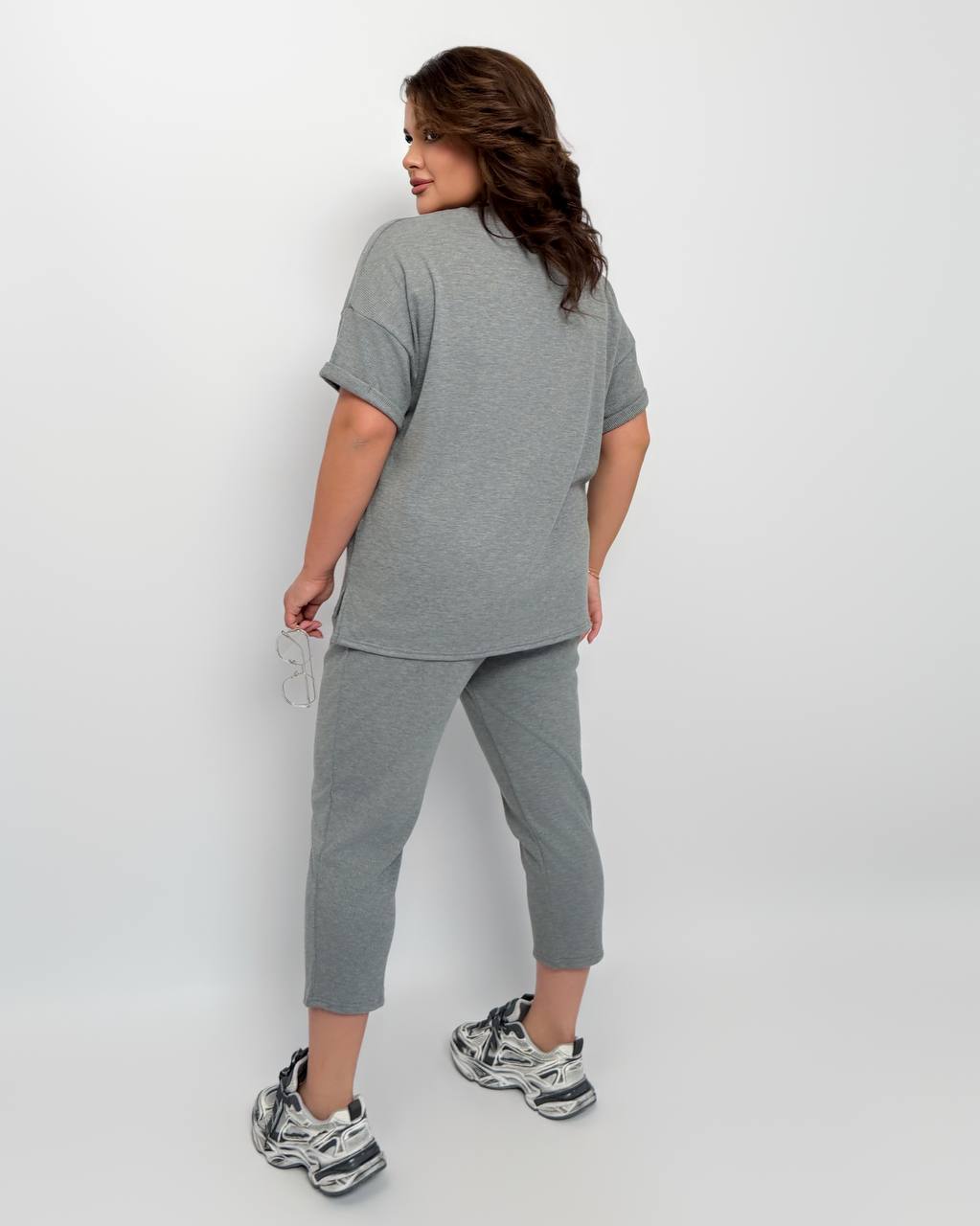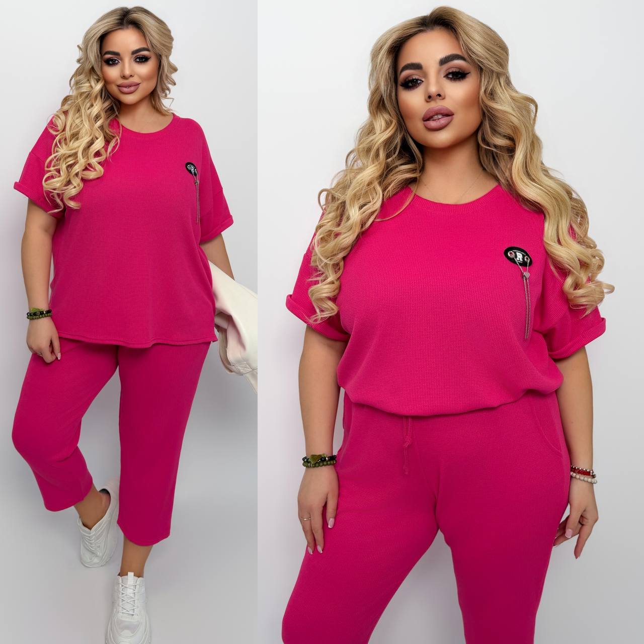 Код.090 (Вільний спортивний костюм з трикотажу «Вафелька»: футболка подовжена з акс + бриджі на гумці з кішенями у бічних швах, з високою