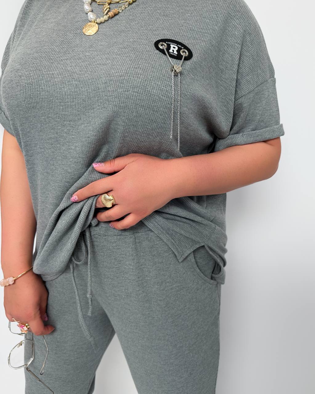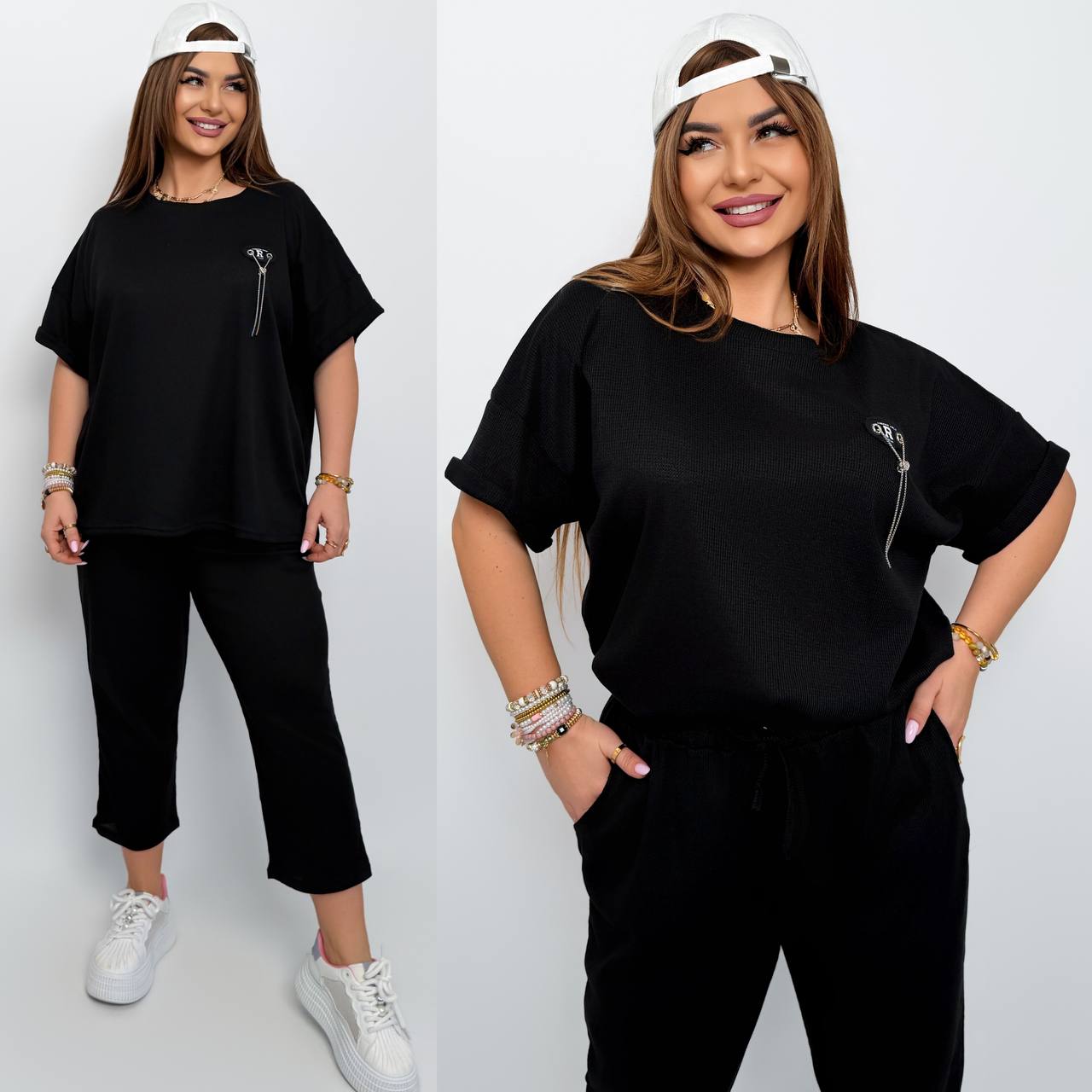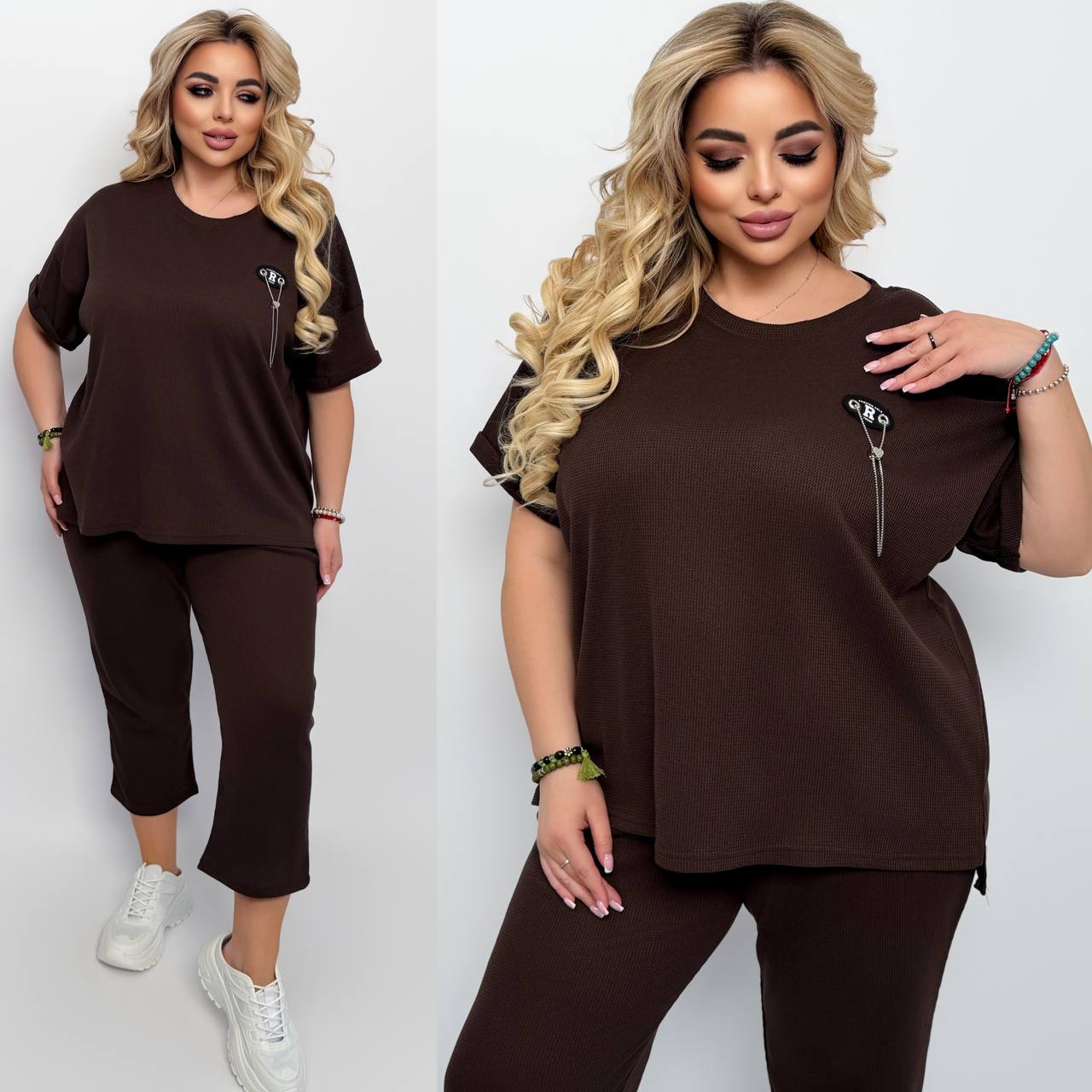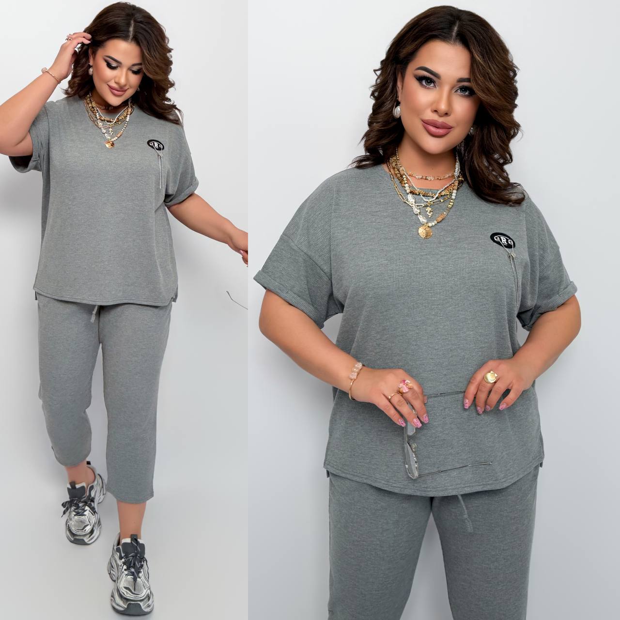 Код.090 (Вільний спортивний костюм з трикотажу «Вафелька»: футболка подовжена з акс + бриджі на гумці з кішенями у бічних швах, з високою