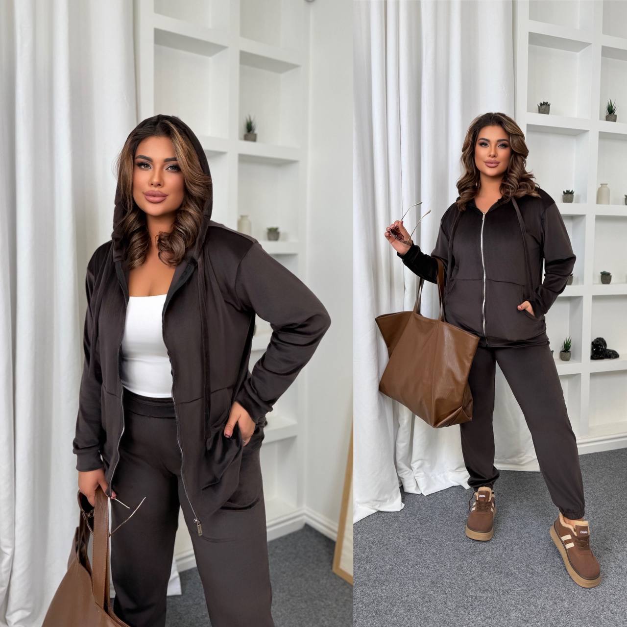 Опис: Бомбер з капюшоном на змійці з карманами, штани висока посадка з карманами, низ манжет на резинці