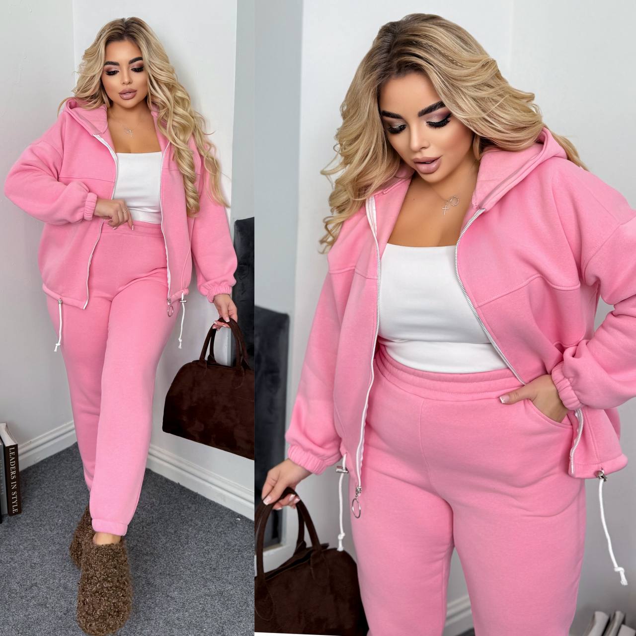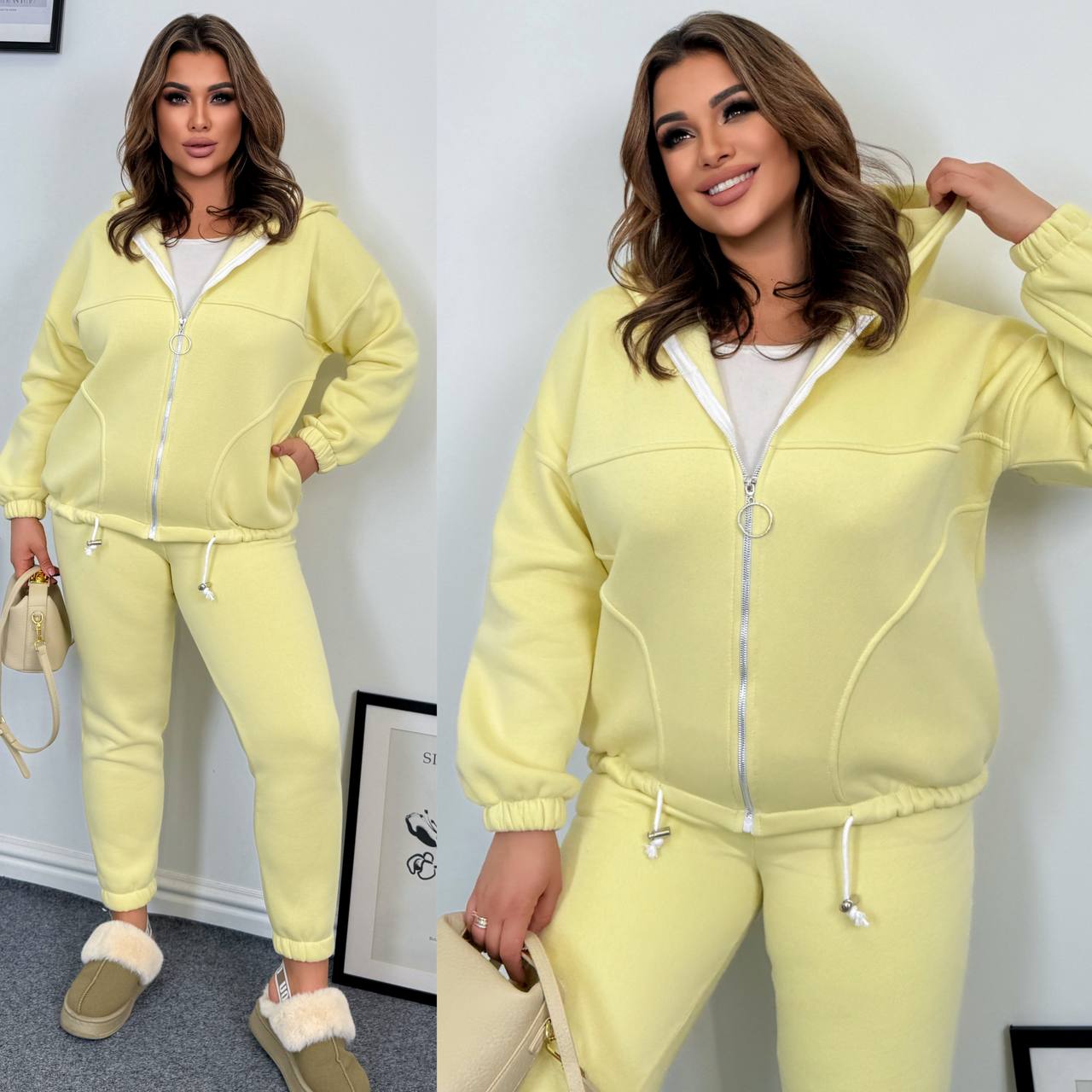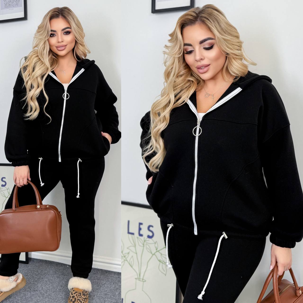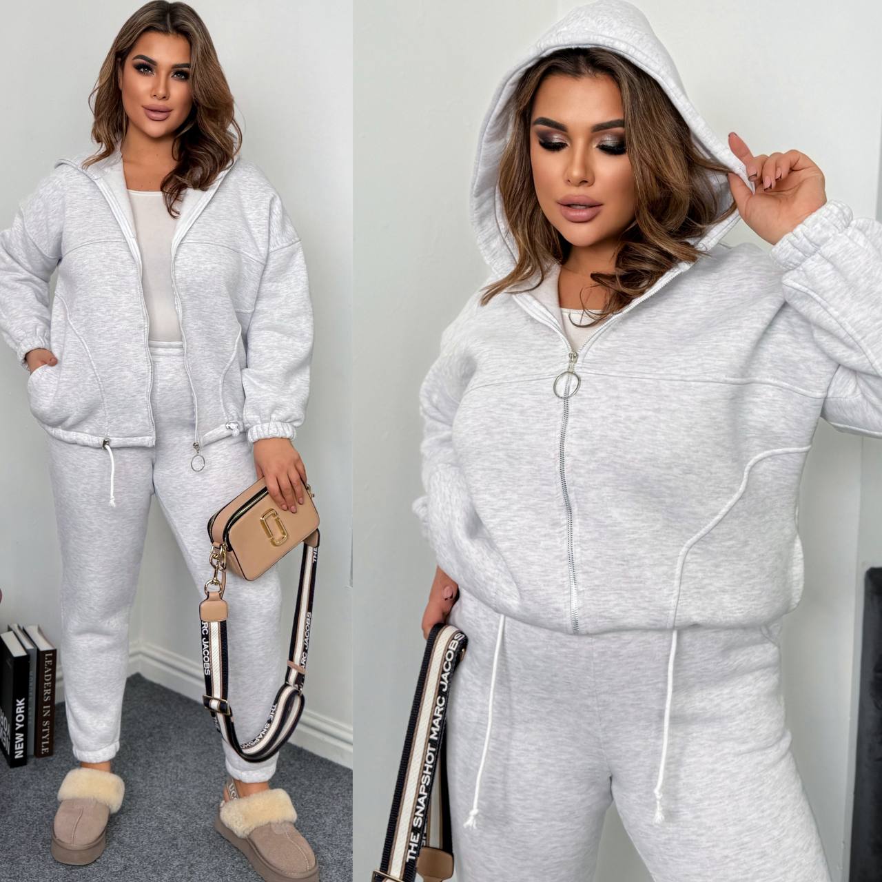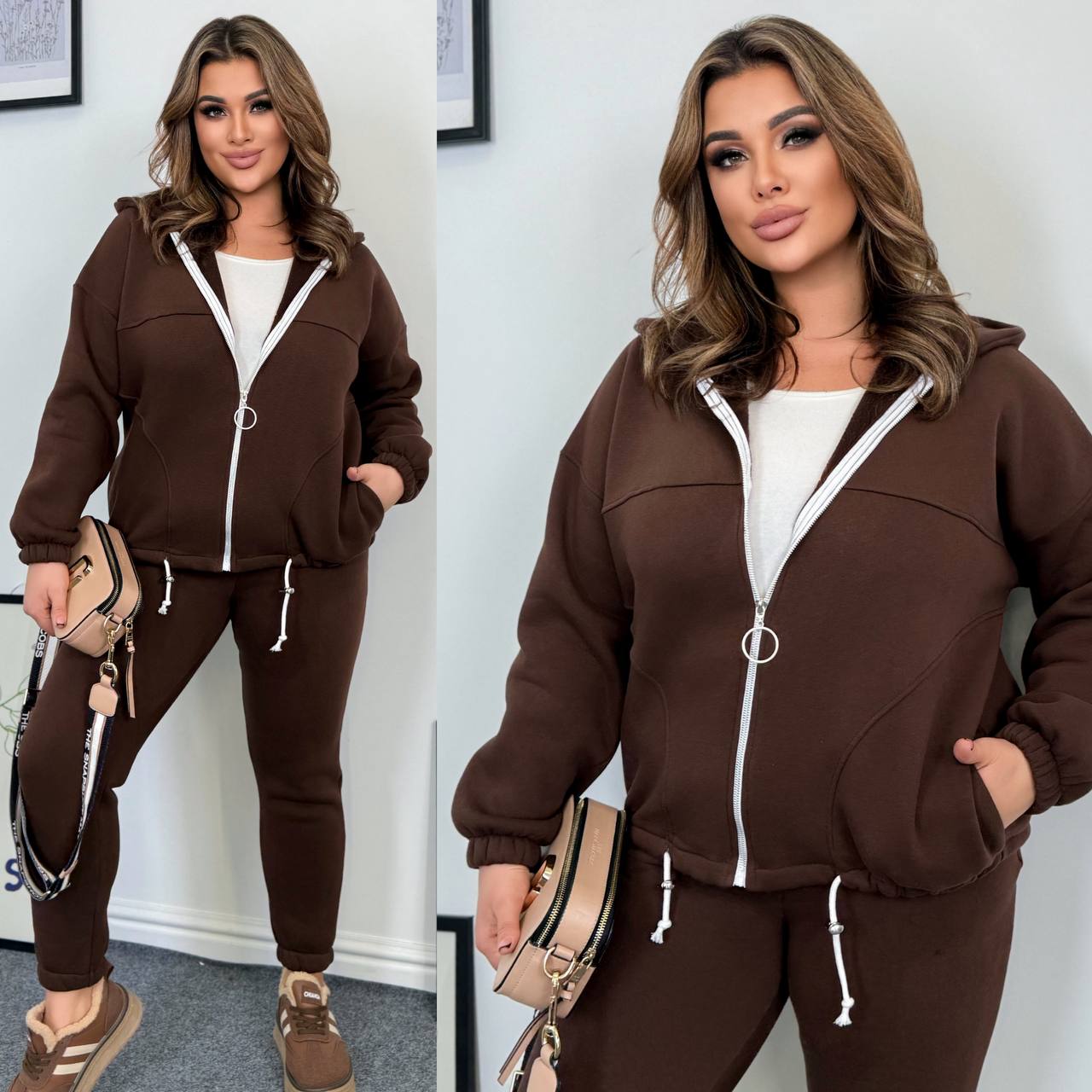 (Теплий спортивний костюм з турецької тринитки: кофта на Змійці з подвійним капюшоном, по низу канатик з фіксатором + джогери із високою посадкою, з карманами у бічних швах, на поясі та по низу м’яка гумка.)