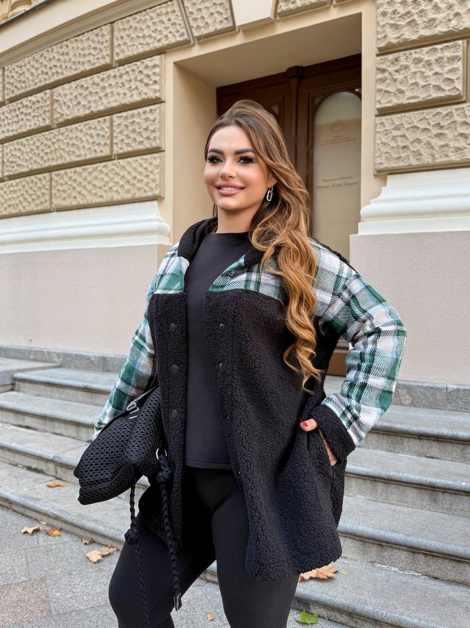 Стильна та комфортна сорочка з комбінації каракулю та кашеміру в клітину – ідеальний вибір для прохолодної пори року. Модель застібається на якісні кнопки, має спущений рукав із манжетом, що додає зручності та сучасного стилю.