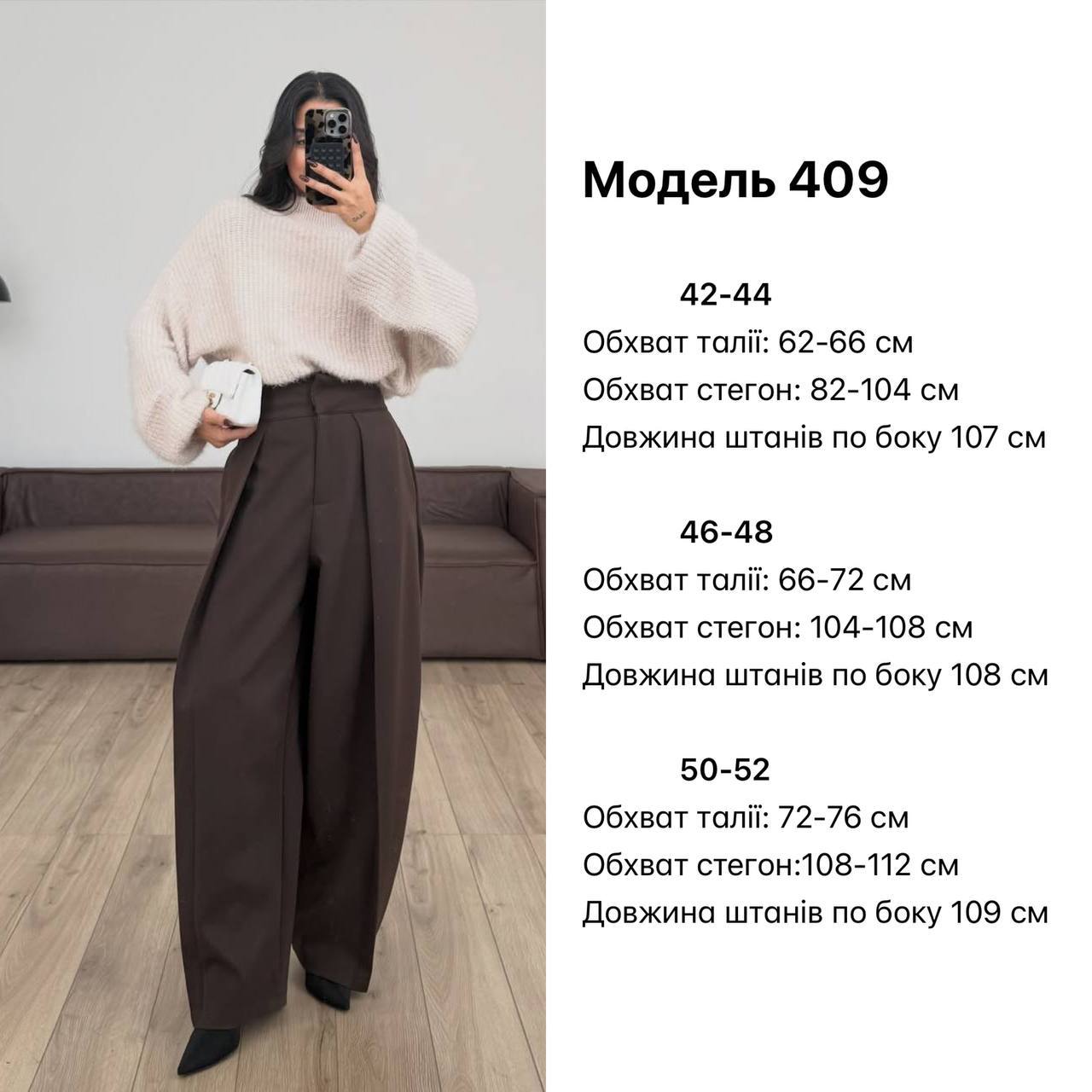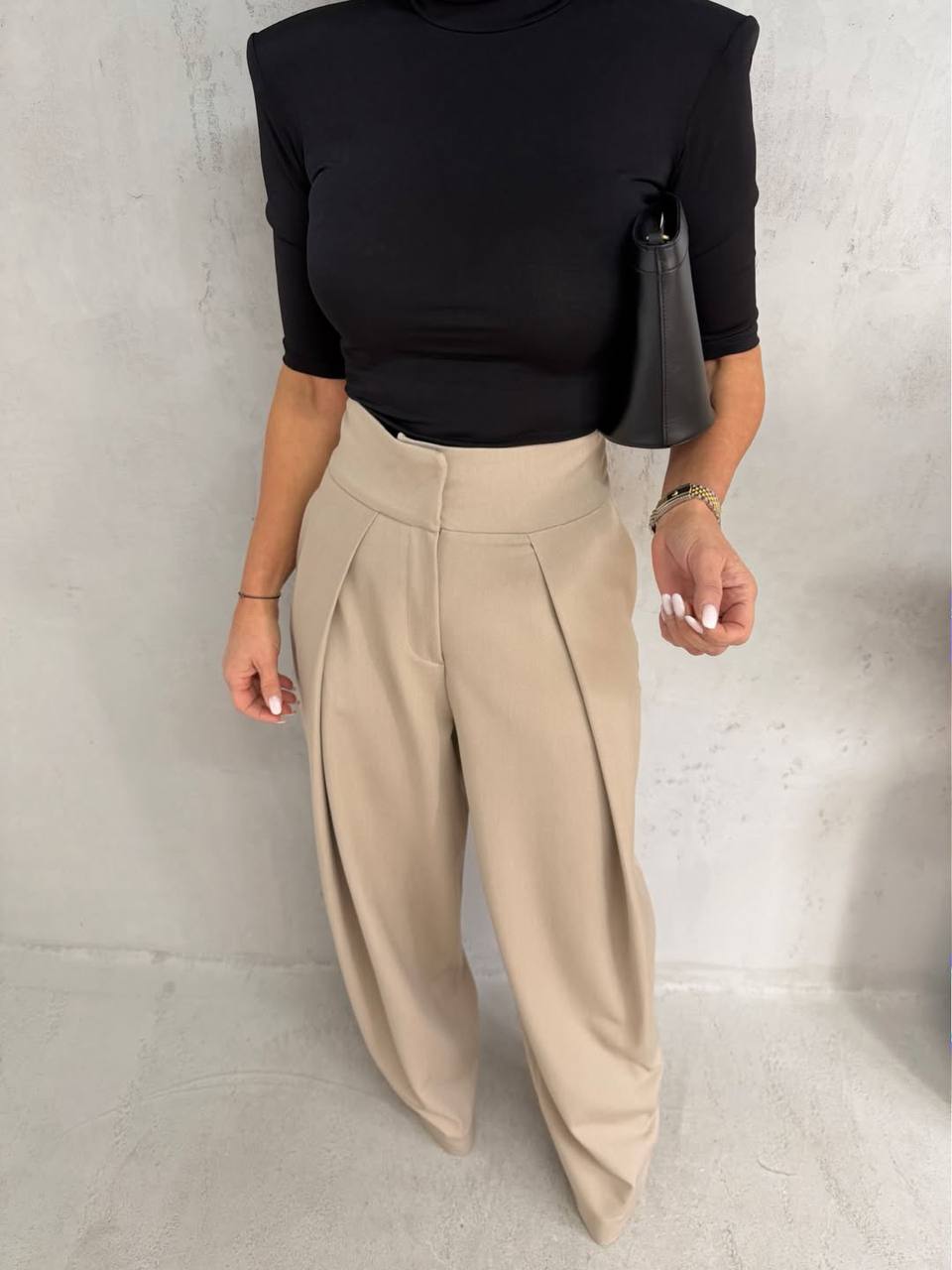 Стильні широкі брюки з високою посадкою та акуратними складками. Чудово тримають форму, підкреслюють талію й роблять силует витонченим. Легко комбінуються з топами, светрами та жакетами — ідеальний варіант для офісу, міста та повсякденних образів❤️