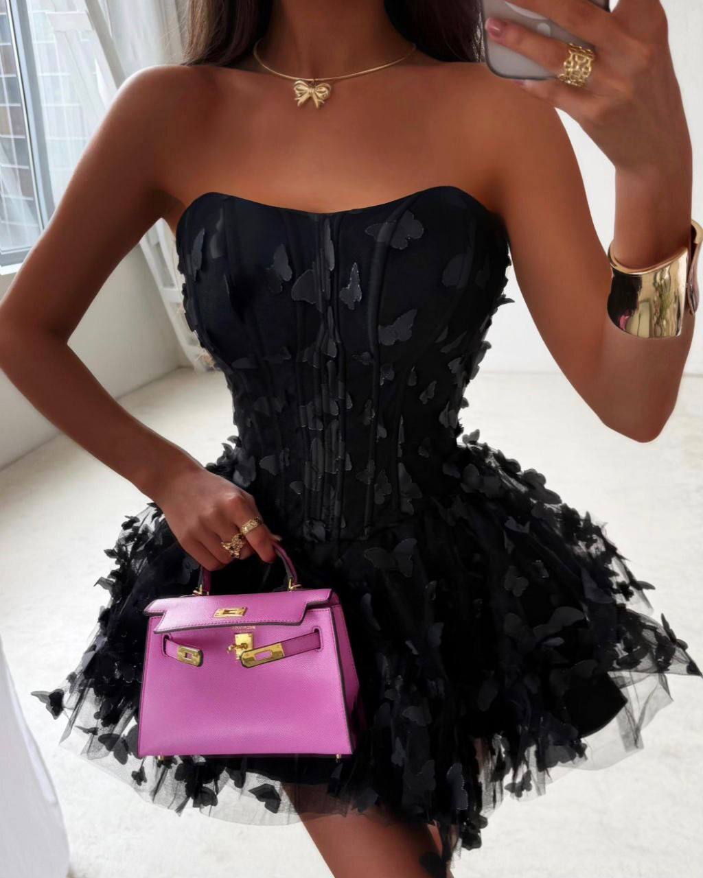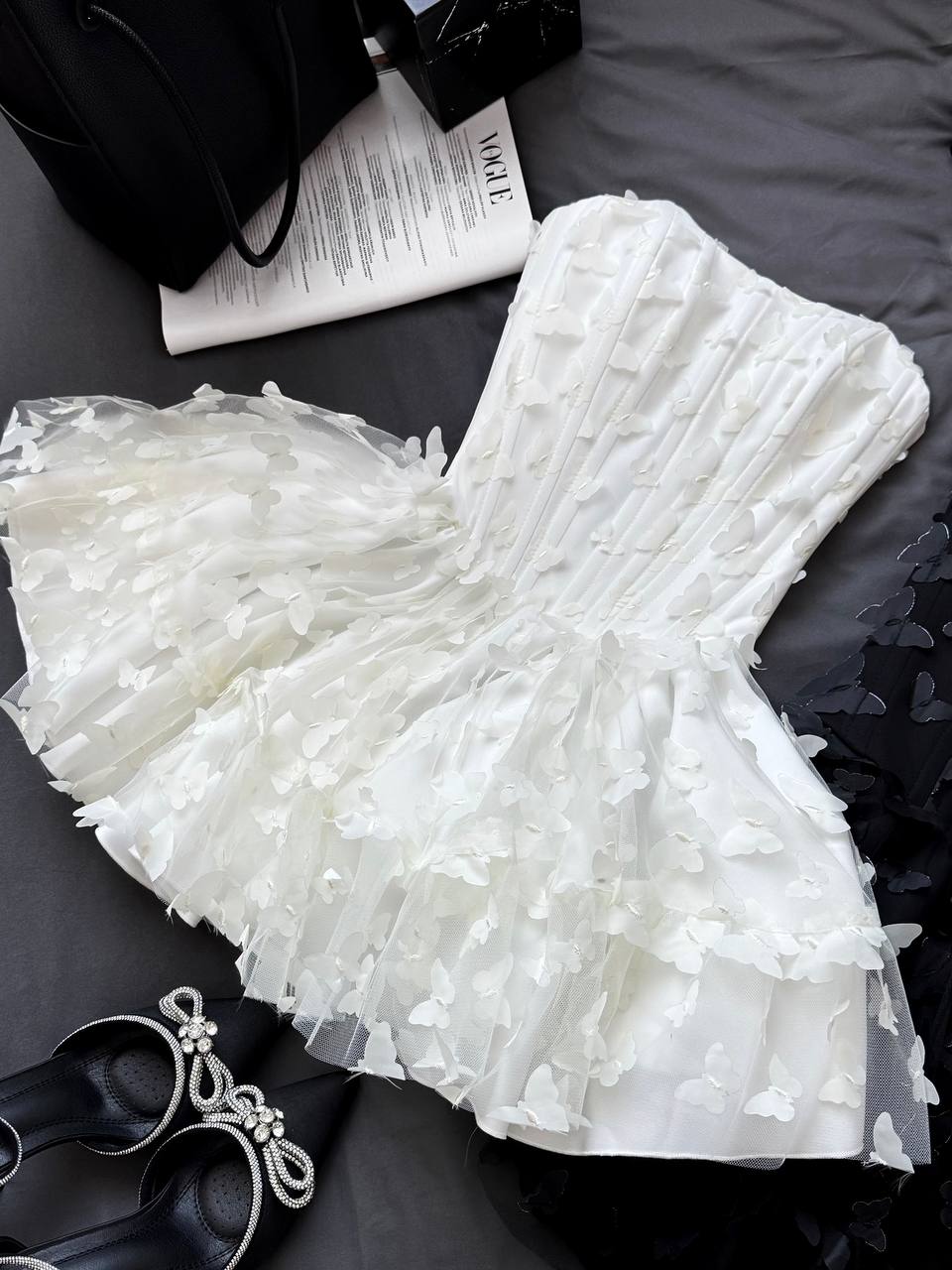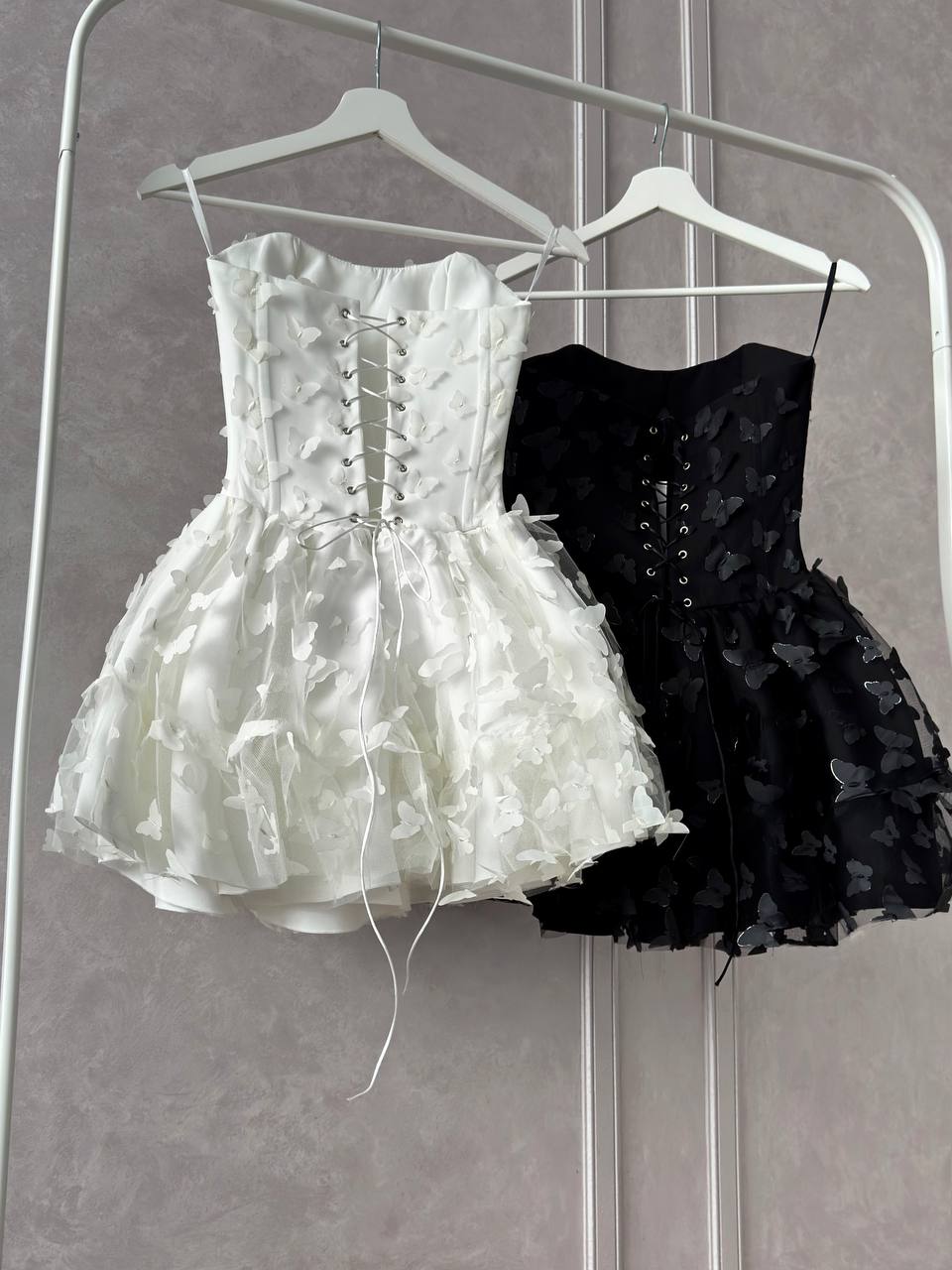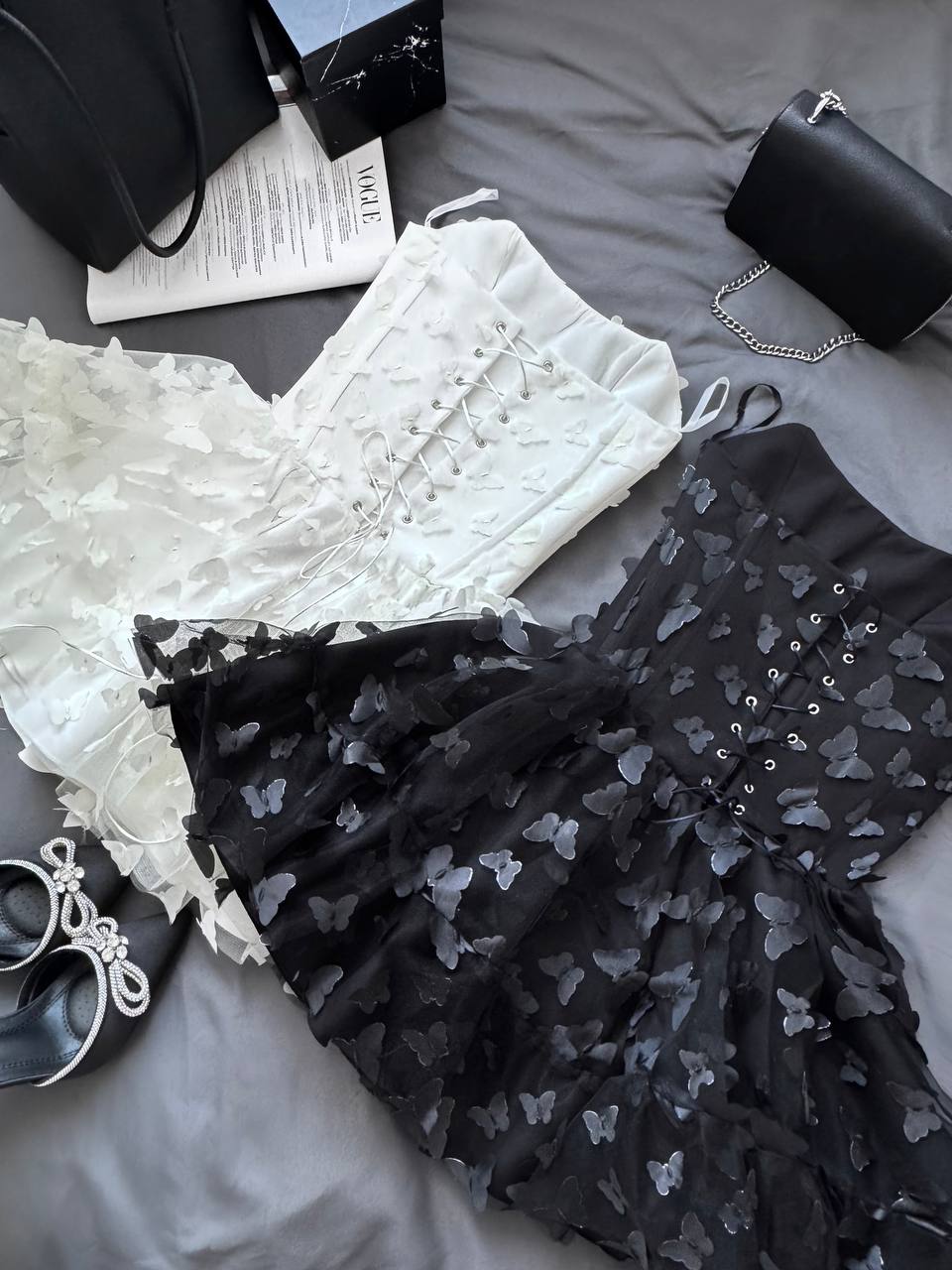 Корсет із кісточками надійно підкреслює талію та формує виразний, витончений силует, а шнурівка ззаду дозволяє ідеально відрегулювати посадку саме під тебе.Пишна фатинова спідниця з 3D-метеликами створює легкий об’єм і магічну динаміку, додаючи образу ніжності та ефектності, позаду потайна молнія. Під фатином прихована спідниця-сонце та комфортні шортики, щоб ти почувалася впевнено, вільно в будь-якій ситуації.