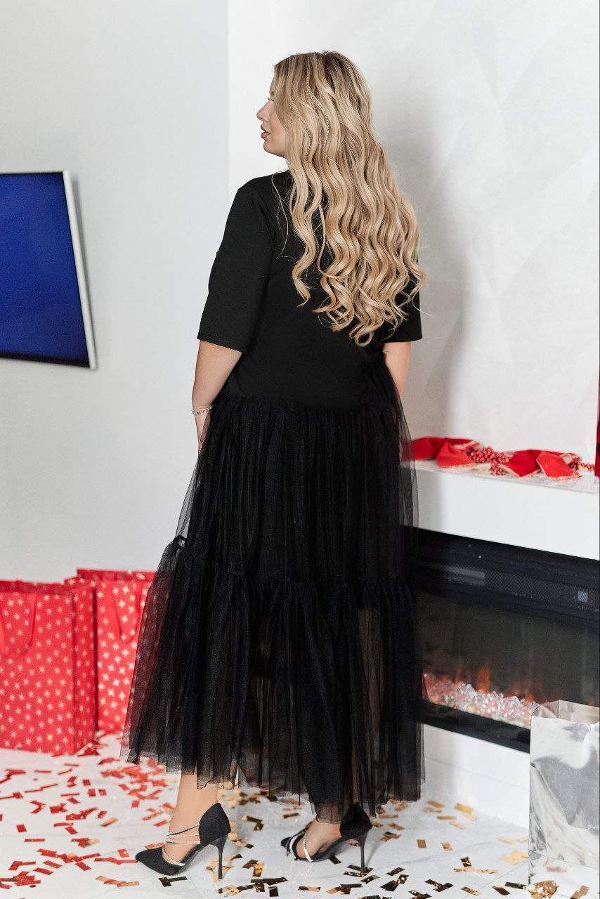 ■ Виконана з італійського трикотажу гарної якості, поверх якого пришитий повітряний фатин — створює трендовий об’єм і м’яке мереживне мерехтіння ✨