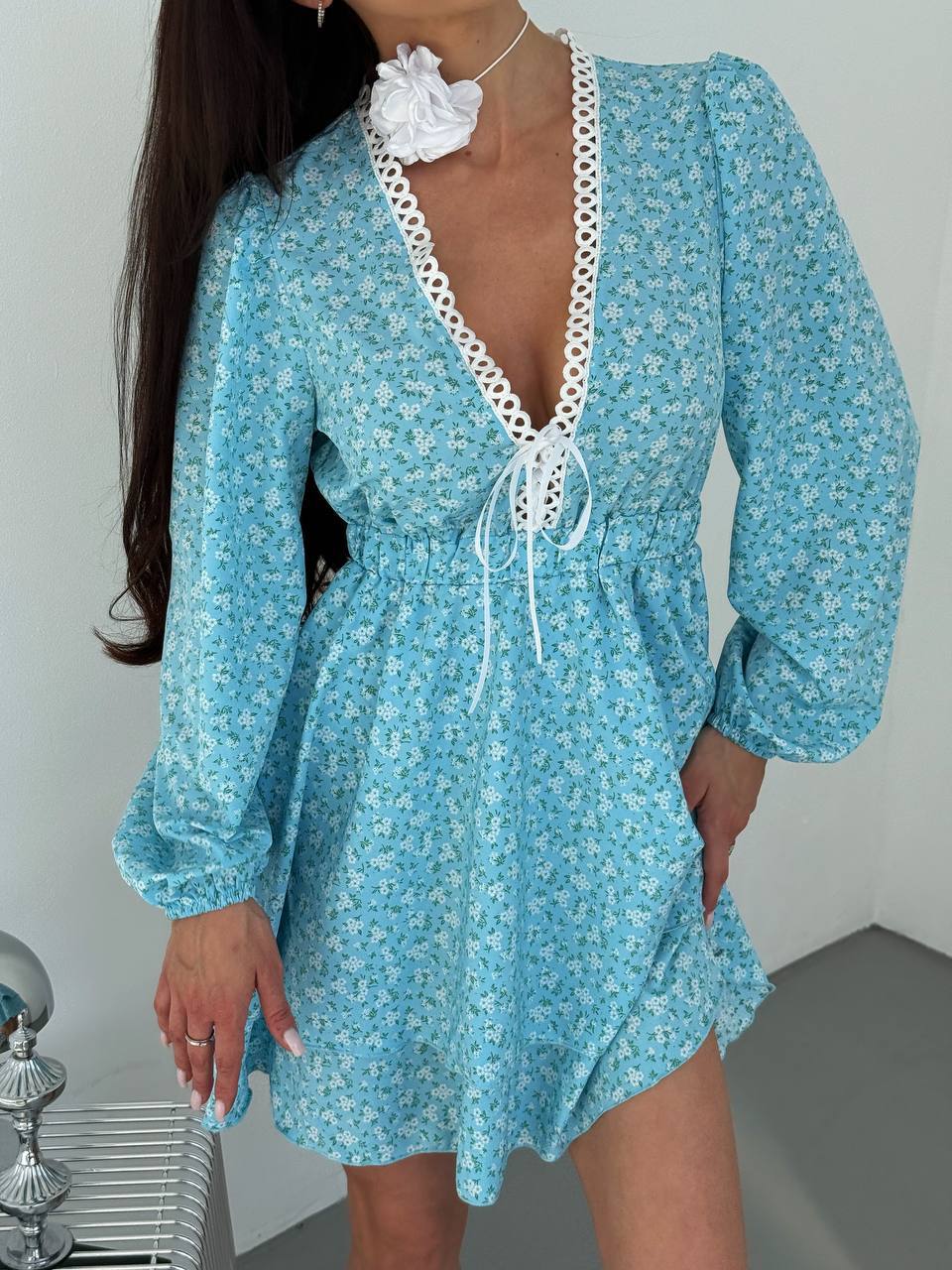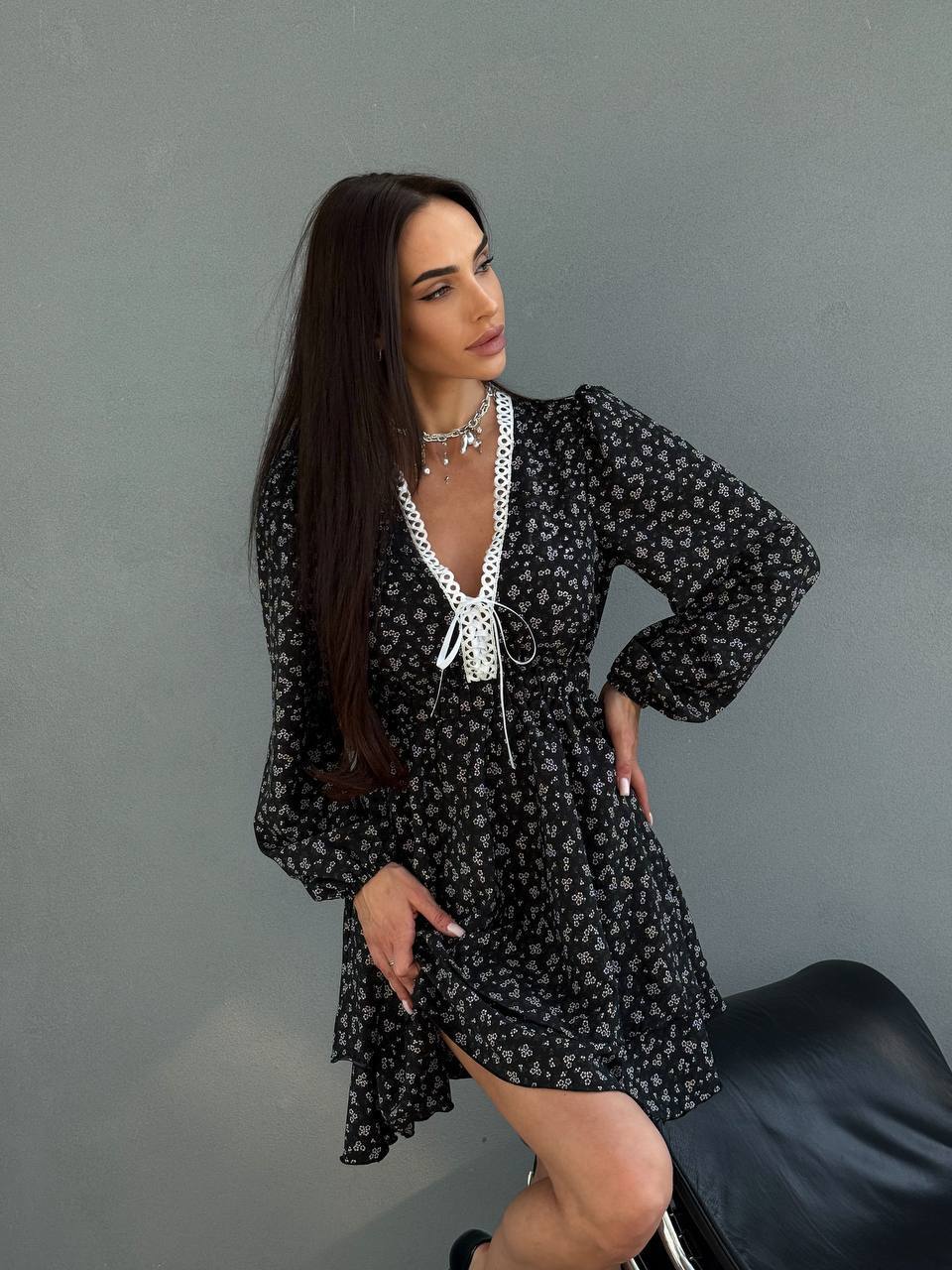 ▫️ Глибокий V-подібний виріз із декоративною шнурівкою
