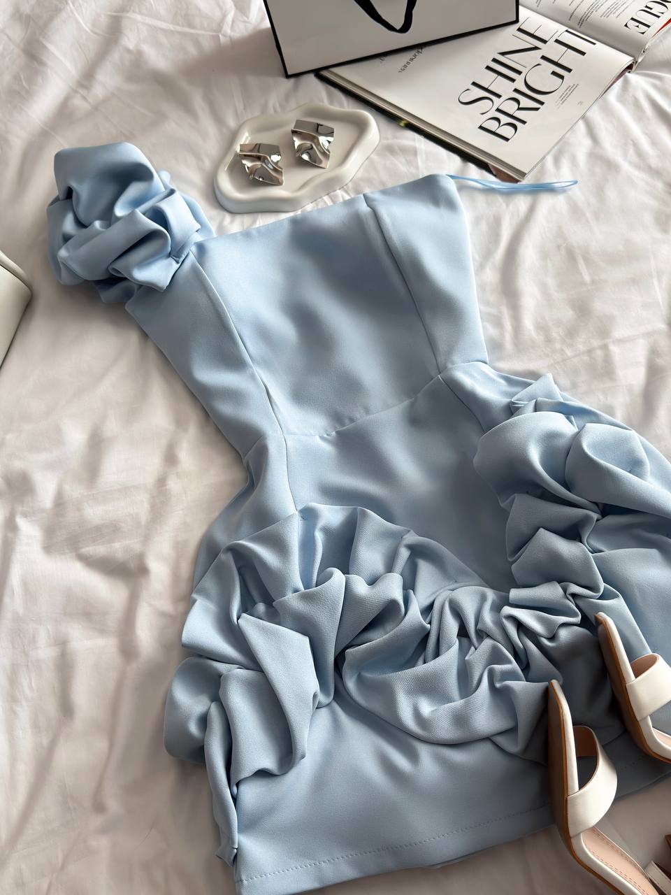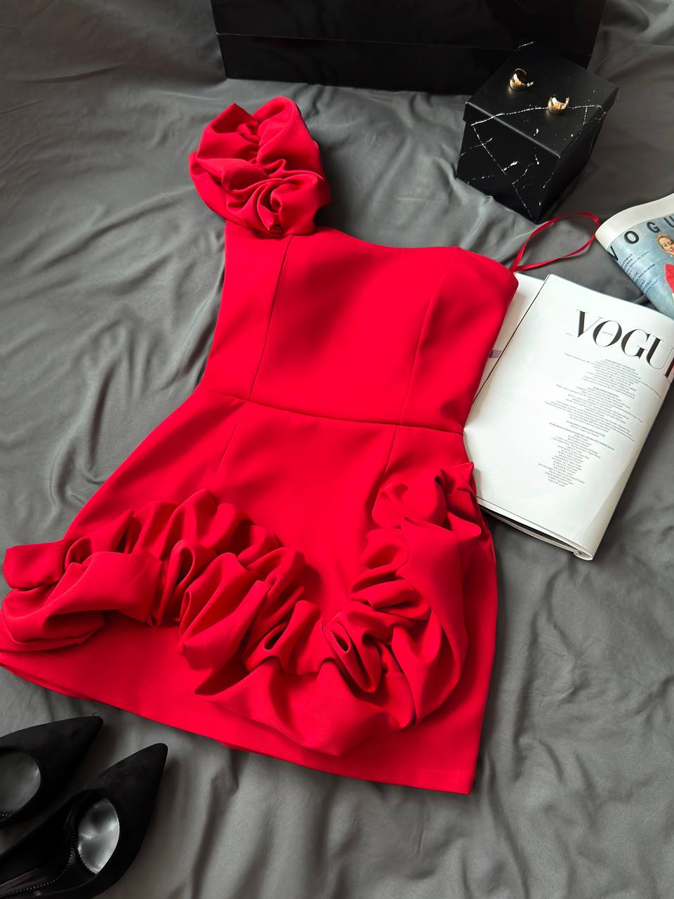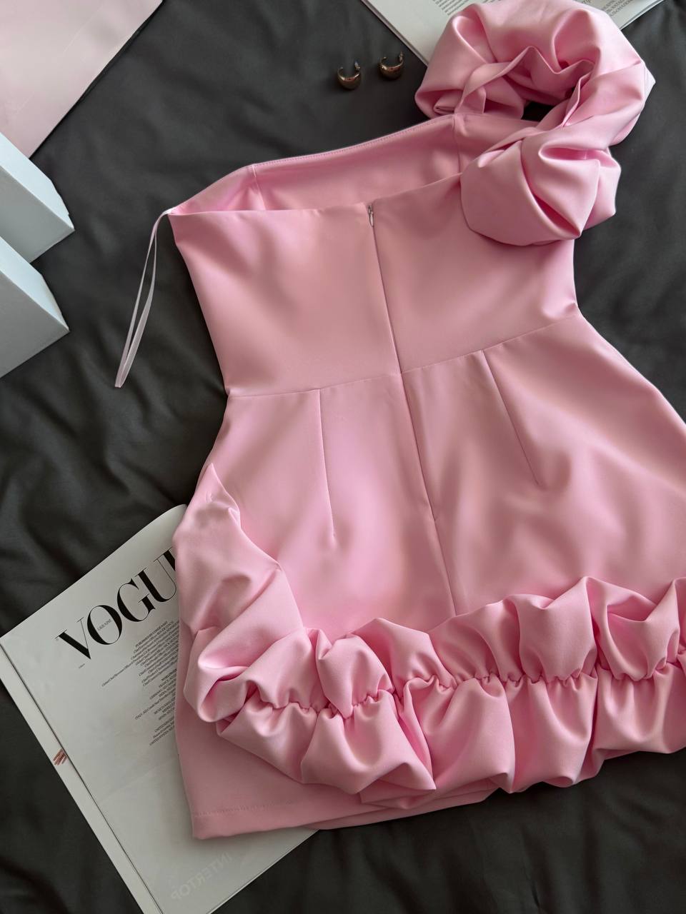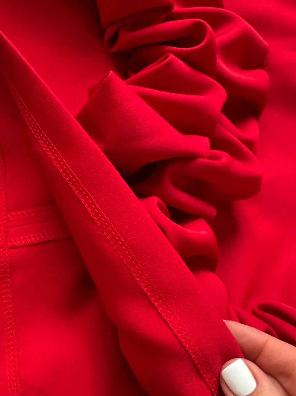 Ця сукня – просто ВАУ. Ліф ідеально сідає по фігурі, підкреслює силует, а волани додають динаміки та ніжності.