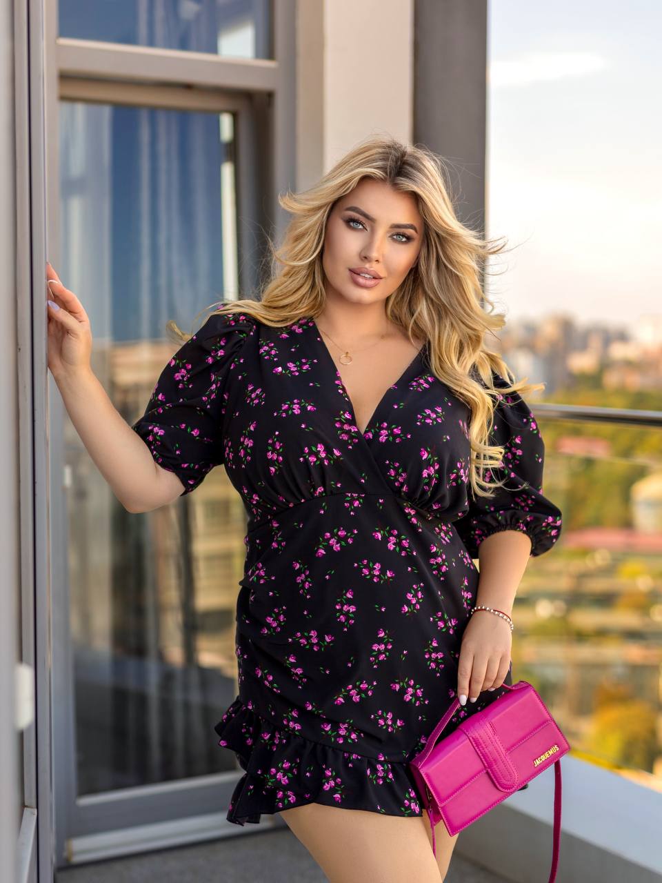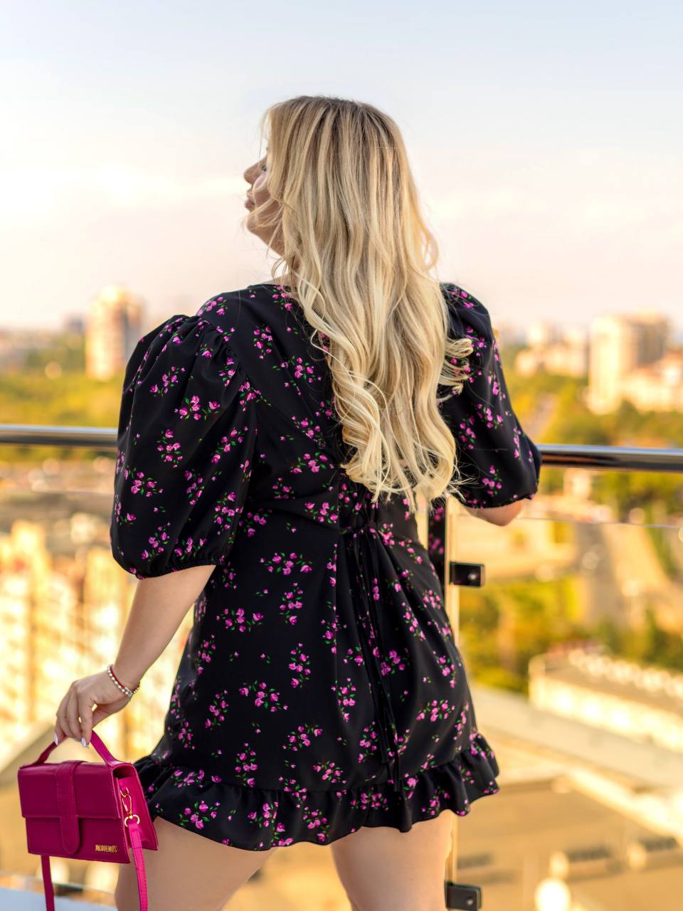Сукня прикрашена рюшами. Обʼємними рукавами з воздушними підплечниками, Позаду шнурується як корсет- цим регулюється приталеність. Виміри: