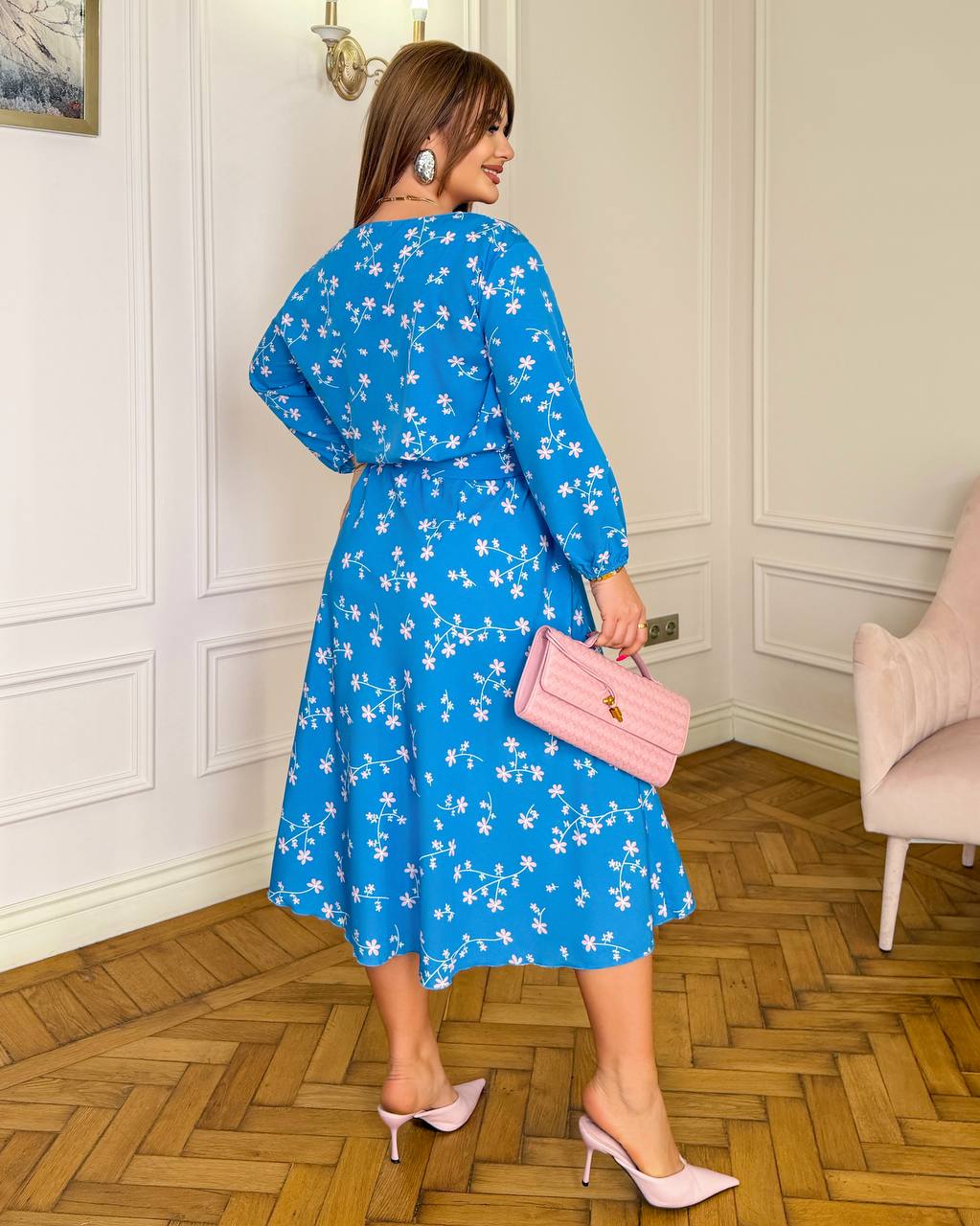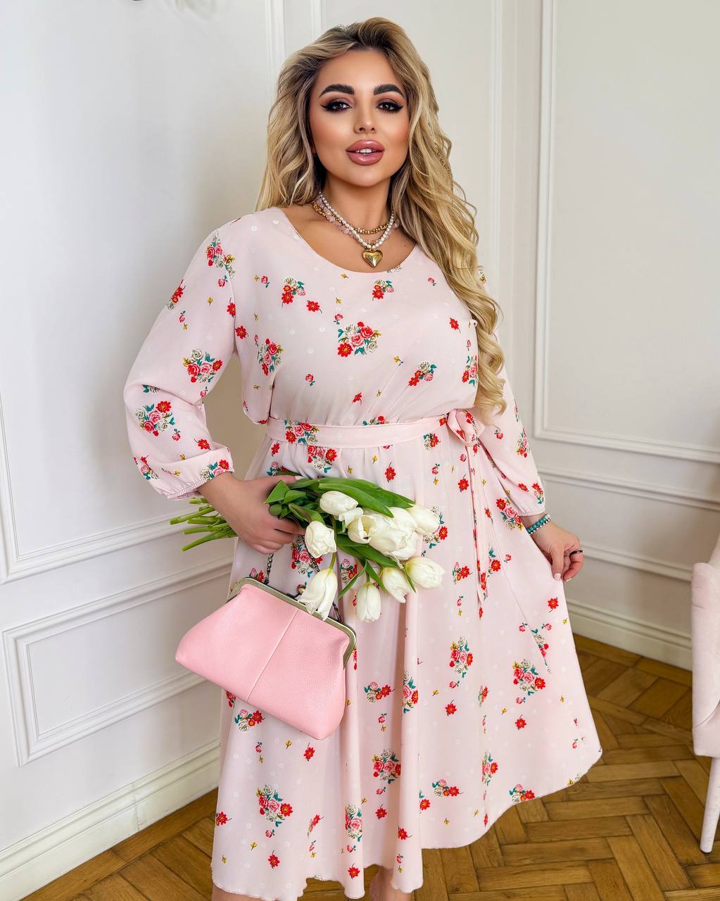 М’яка, приємна до тіла тканина софт легка та дихаюча, красиво лягає по фігурі й не сковує рухів. Сукня має вільний крій із акцентом на талії, що підкреслює силует і додає ніжності образу. Довжина міді робить модель універсальною — як для щоденних прогулянок, так і для святкових подій.