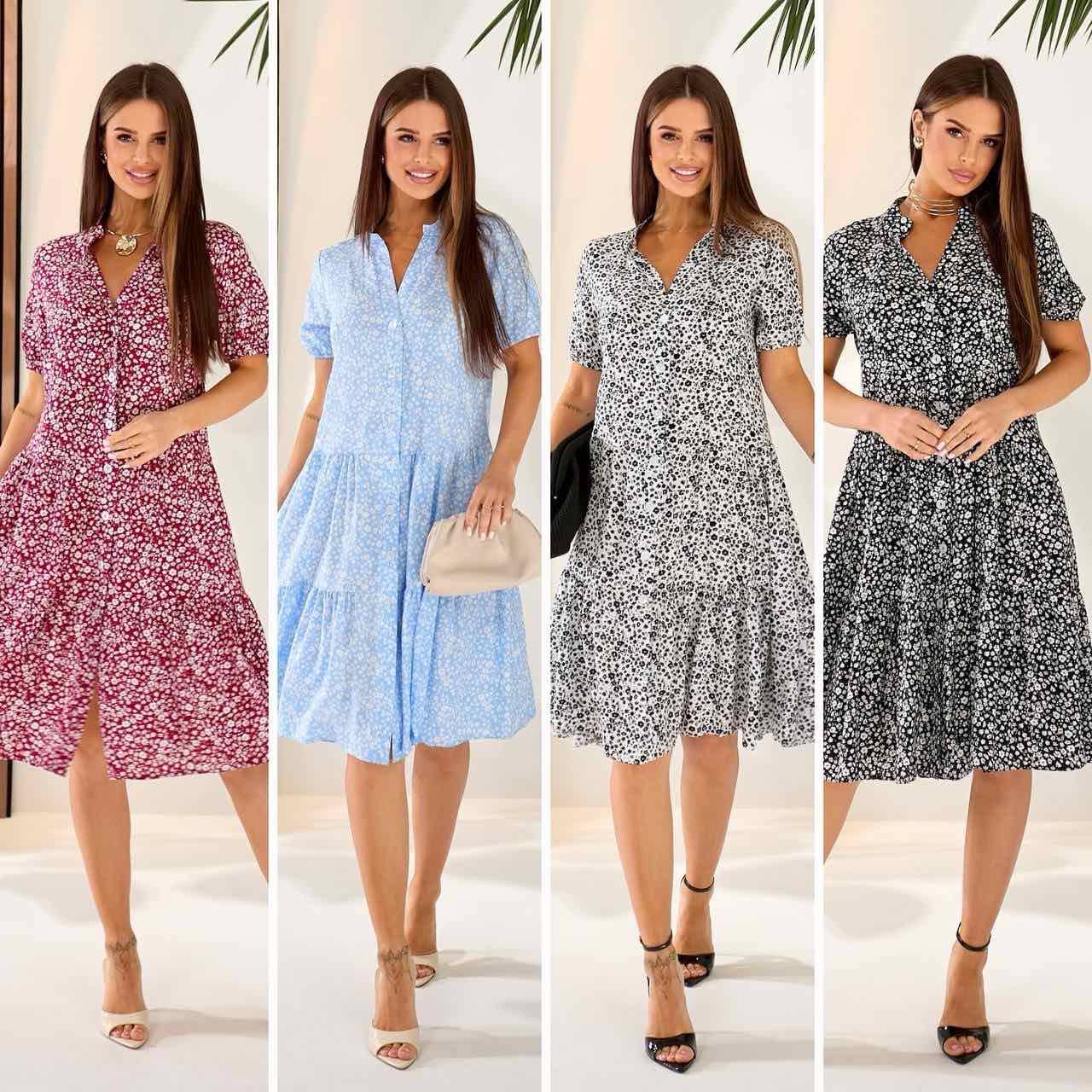 Сукня з натуральної тканини ,середньої довжини, вільного крою , рукав короткий на мʼякій резинці , талію можно підкреслити ременем. Ґудзики всі робочі.