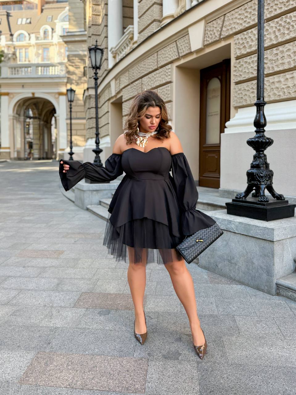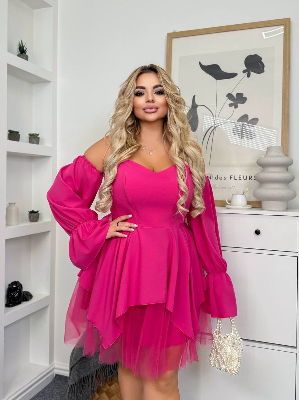 матеріал : софт -шовк. Корсет ущилен тканевым флізелином і прошит кісточками по рельєфу. Спідниця- євро сітка з підкладкою із софту. Сукня складається з двох деталей: спідниця і корсета, який можна носити окремо (під лосини, шорти , то що). Є знімни рукави . Позаду корсета – мʼякий гумки, за допомогою яких вироб гарно сідає на фігурі і не сковує рухи.