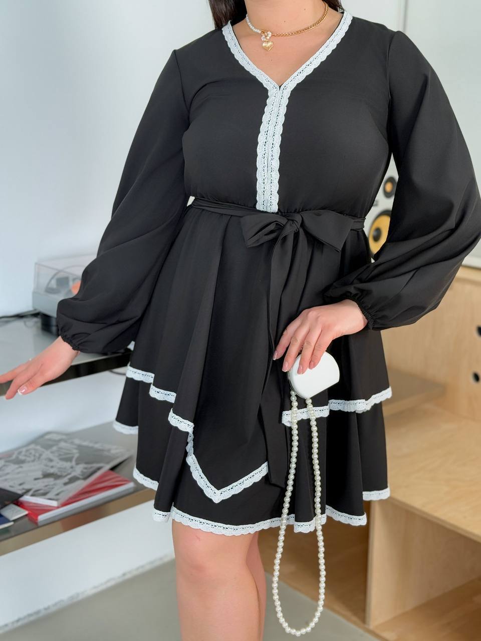 ▪️Тканина: євро костюмка оздоблення біле лляне мереживо