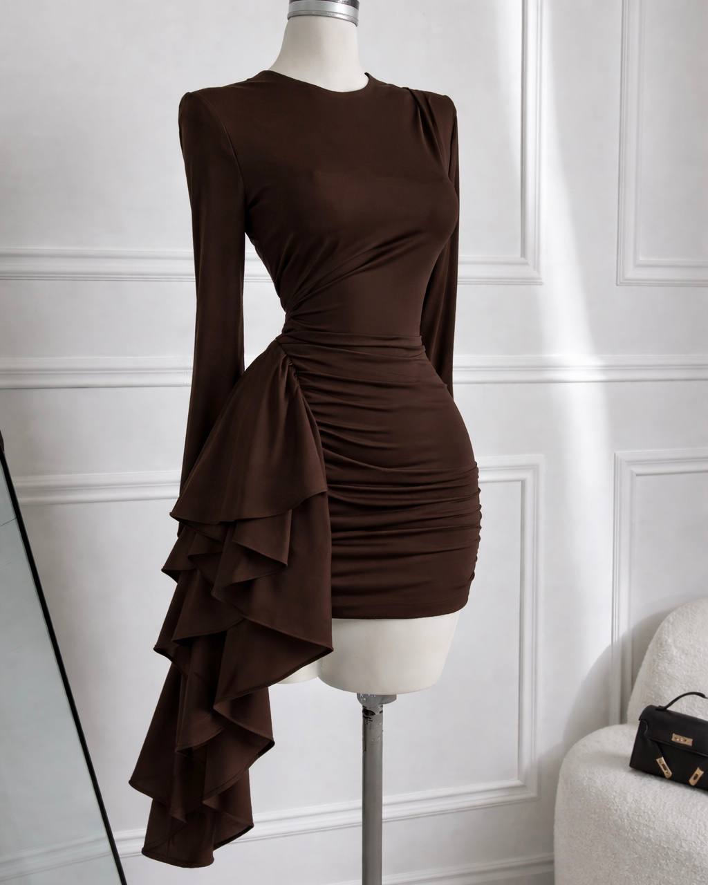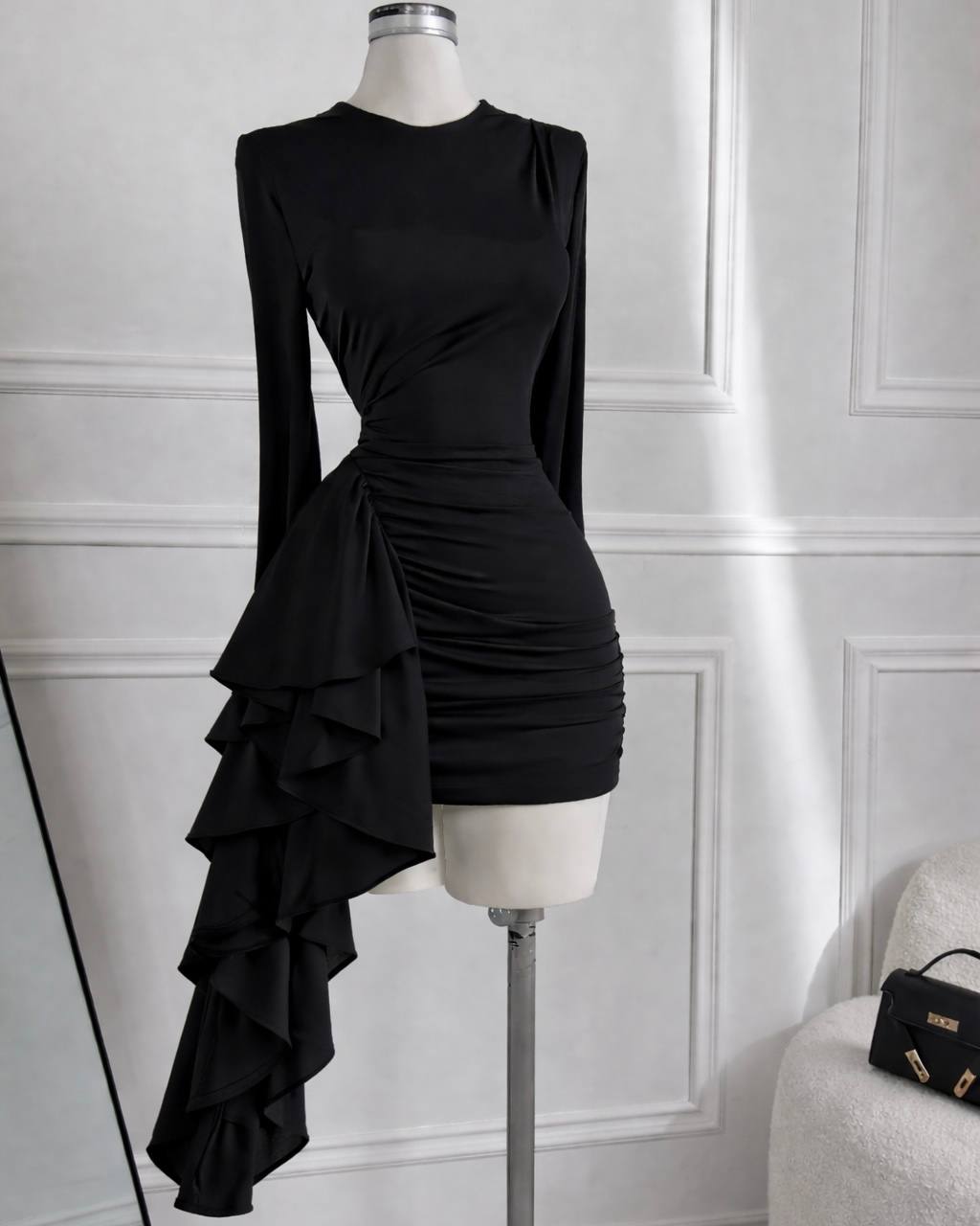 Коротенька ідеальна сукня зі шлейфом збоку. Тканина тягнеться та сідає по фігурі, приємна до тіла.