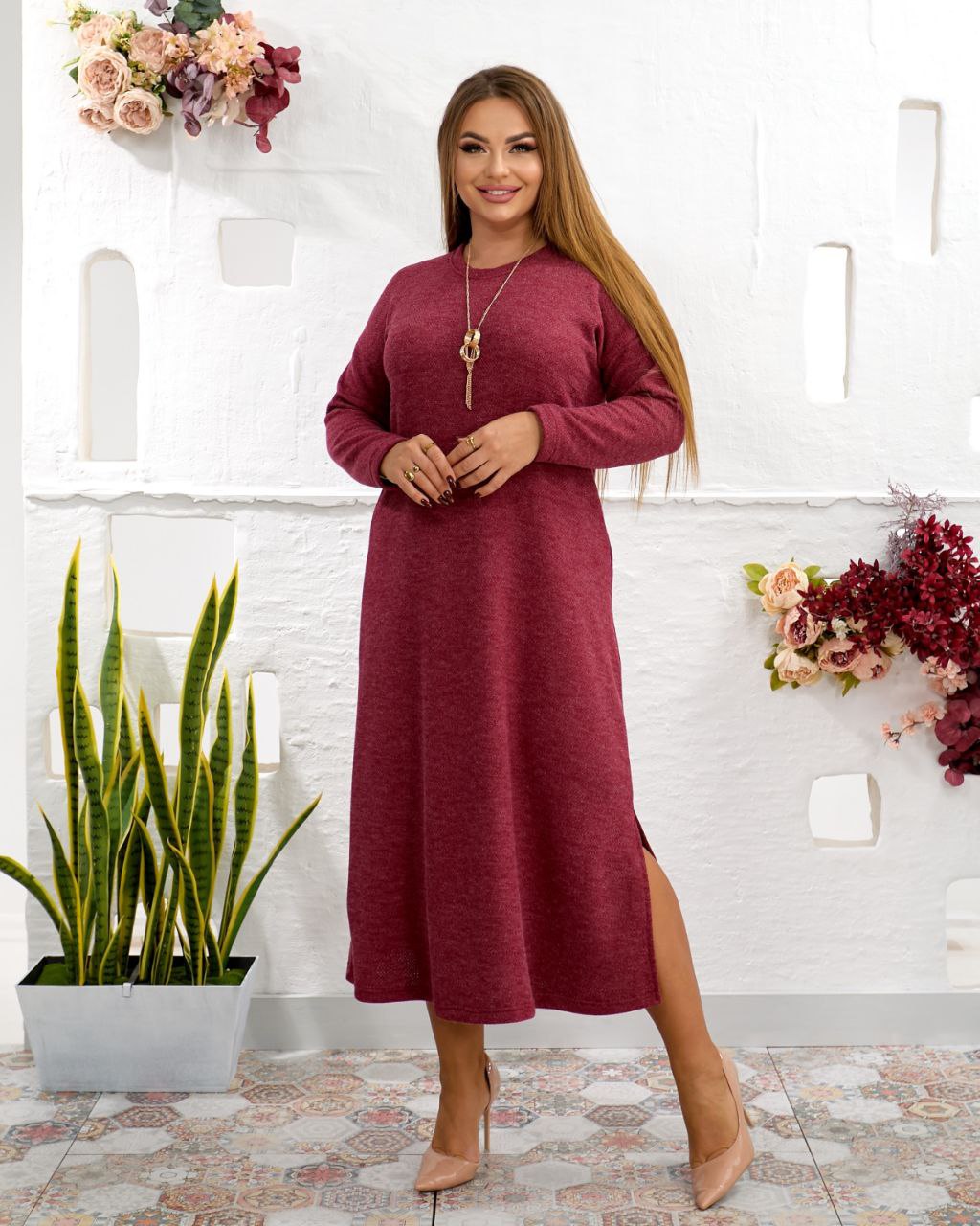 Осінньо-зимова сукня з м’якої та ніжної тканини, чудово зігріє та подарує відчуття комфорту, а розріз на нозі створює особливо пікантний образ. Сукня вільна і невимушена, ідеально підійде будь-якій модній жінці!