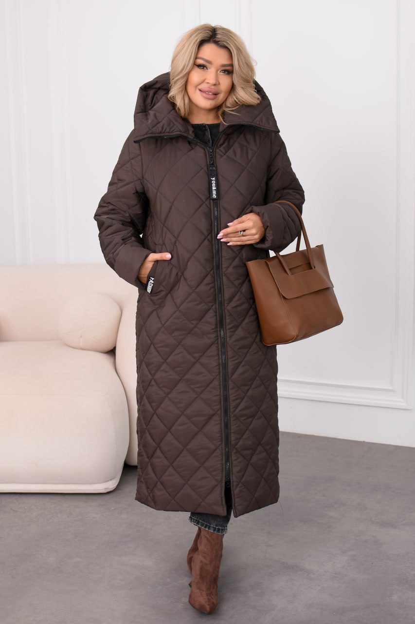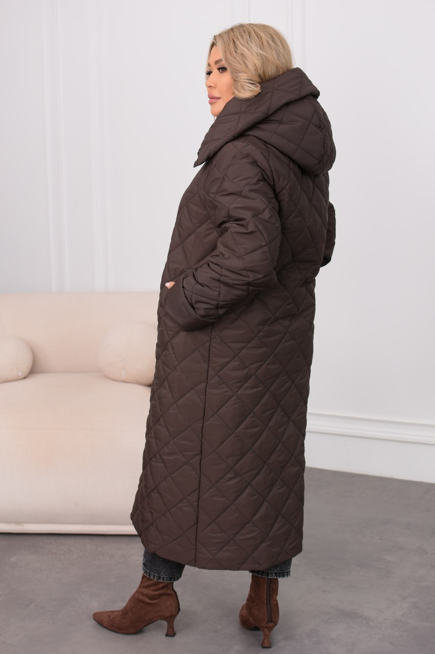Тепле зимове пальто з капюшоном та двома прорізними кишенями. Регульовані манжети на рукавах забезпечують комфорт. Виконана з водонепроникної плащової тканини Канада, утеплювач синтепон (200 г/м²) у поєднанні з паянкою (80 г/м²) гарантує тепло при температурі до -15°C.