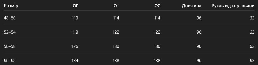 Розмір: 48-50, 52-54, 56-58, 60-62