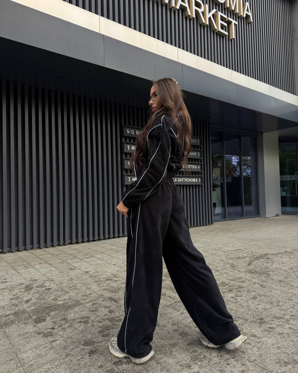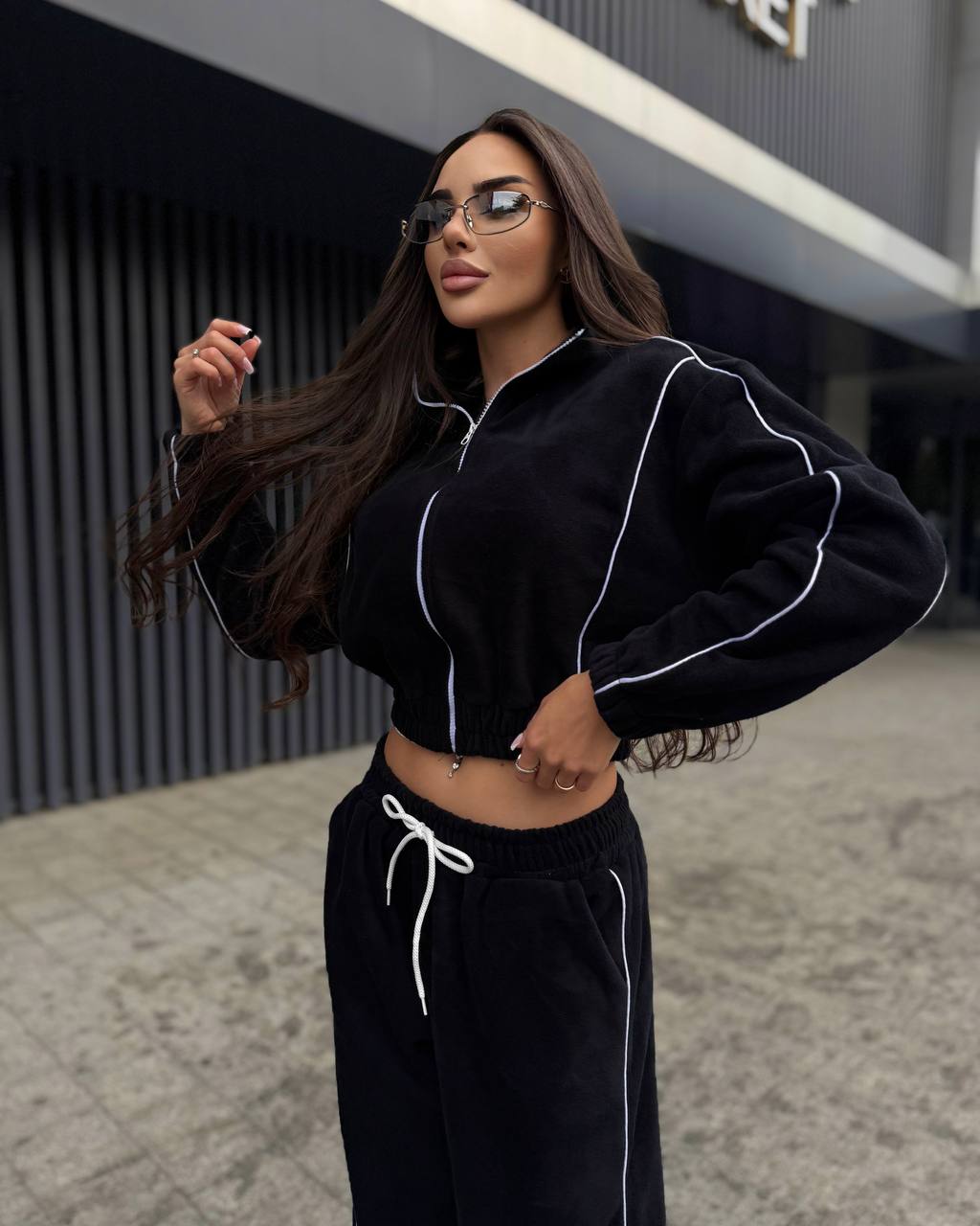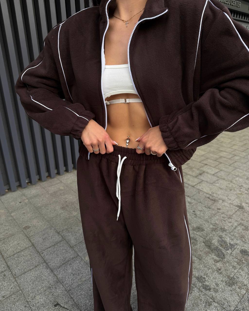 Тепленький прогулянковий костюм по сезону з кофти на змійці та обʼємних штанів. Мʼяка приємна щільна тканина. Штани на резинці, мають кишені, знизу йдуть на фіксаторах.