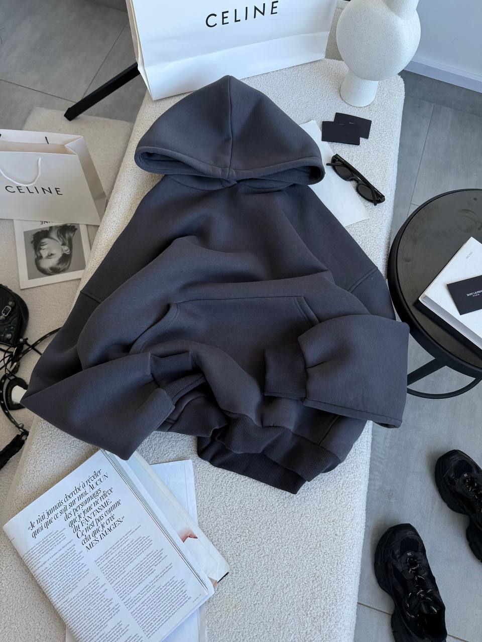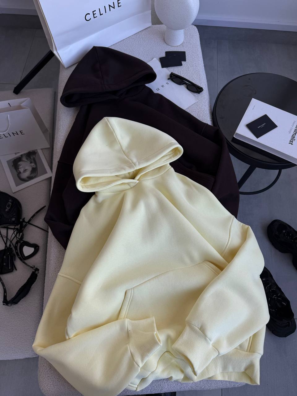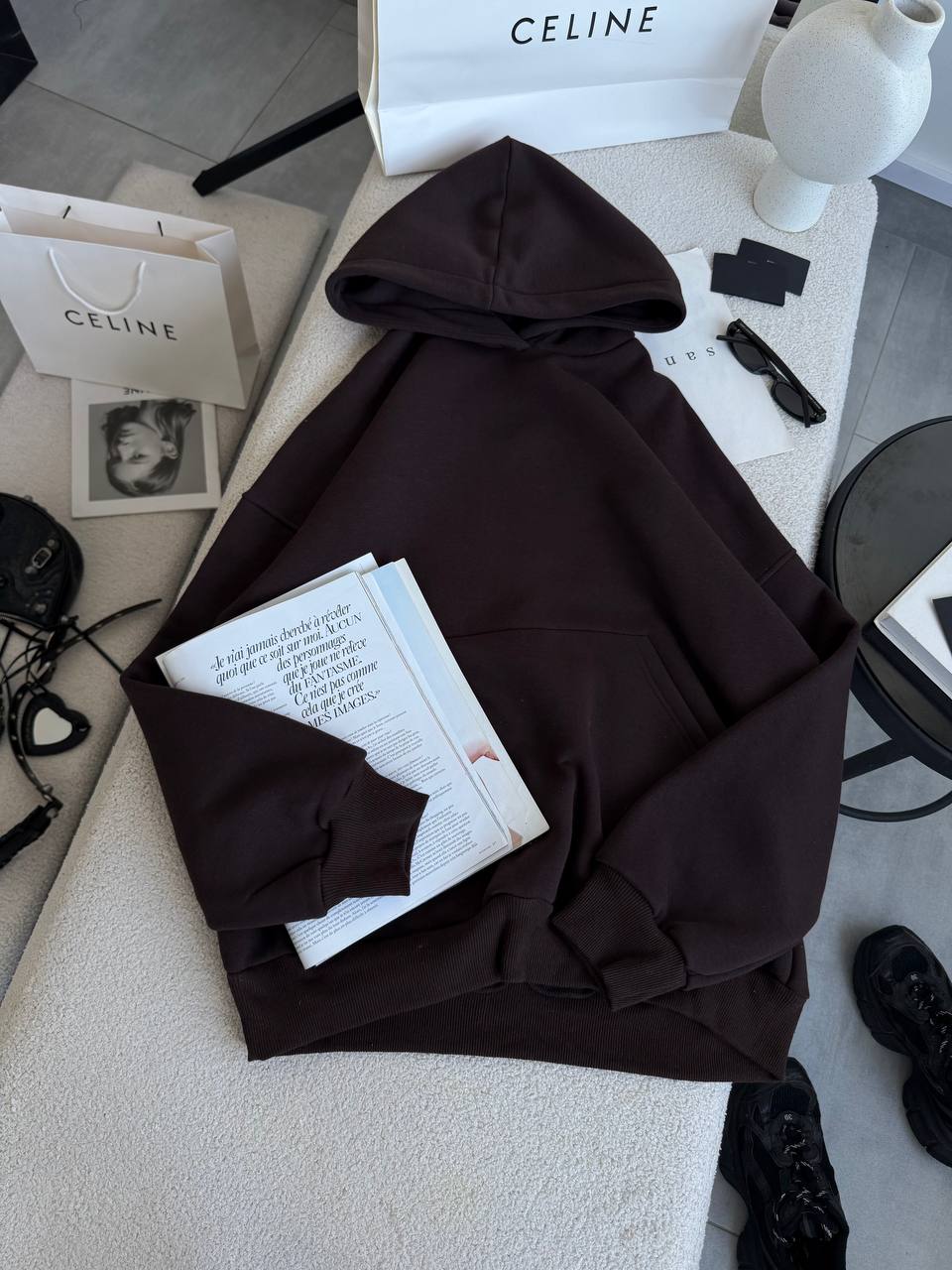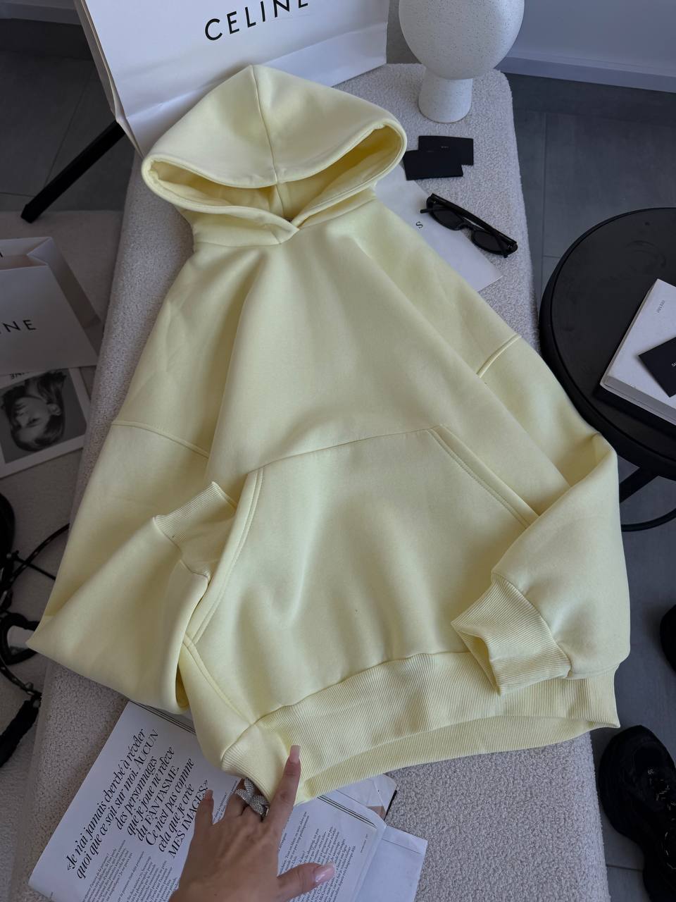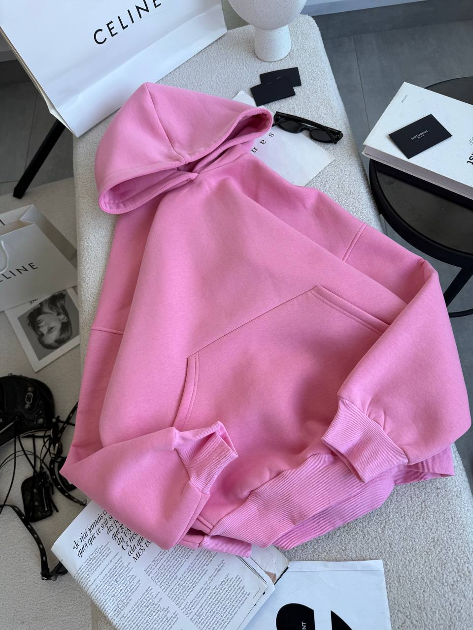 Бажане худі оверсайз з капюшоном виконане у мінімалістичному стилі.