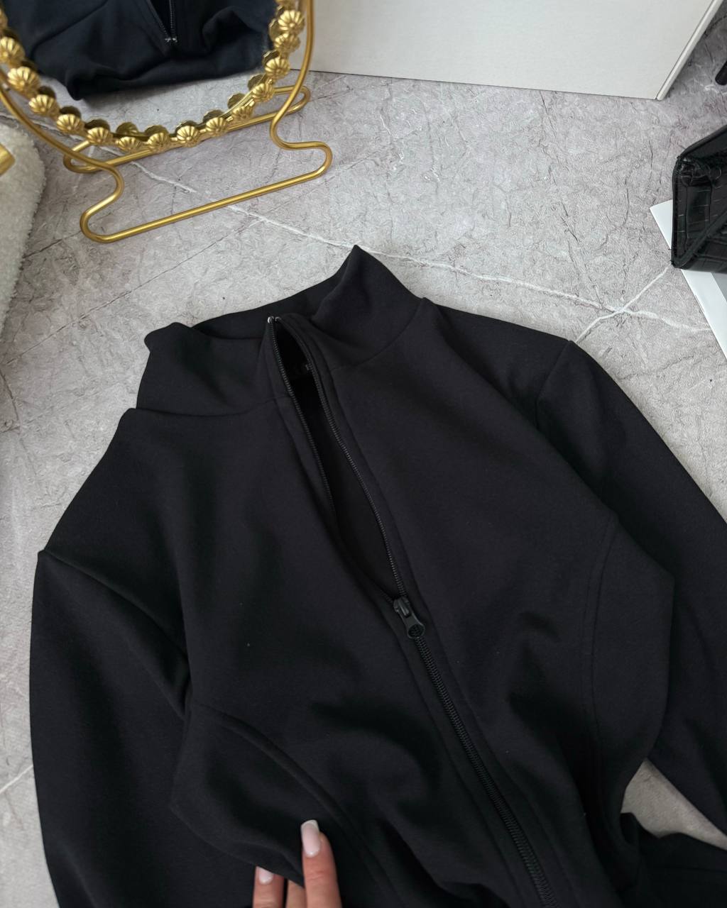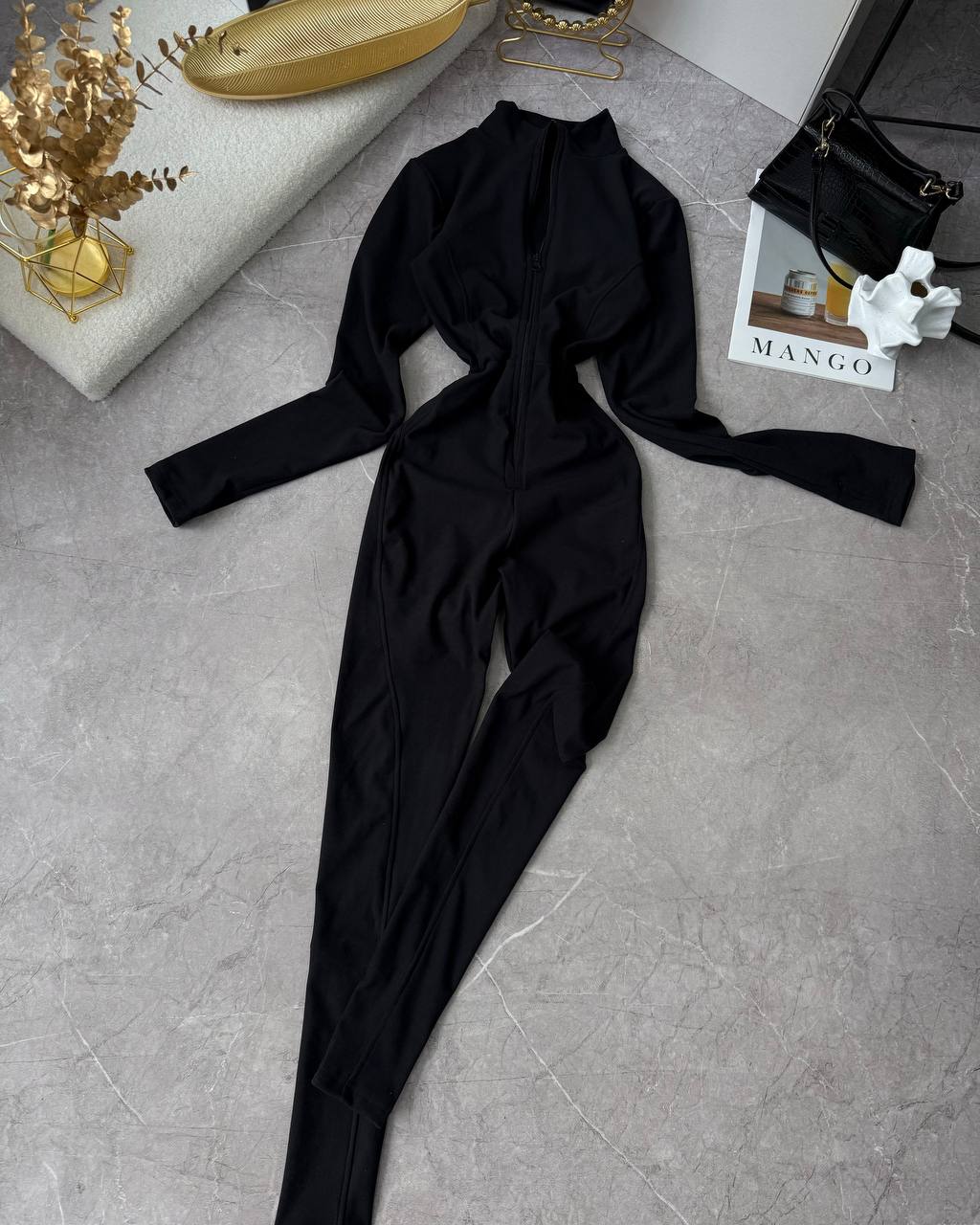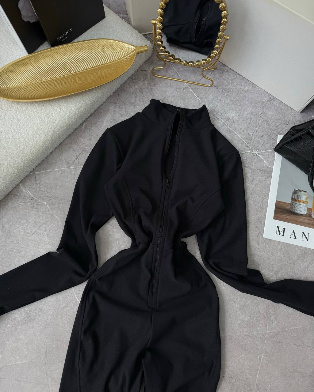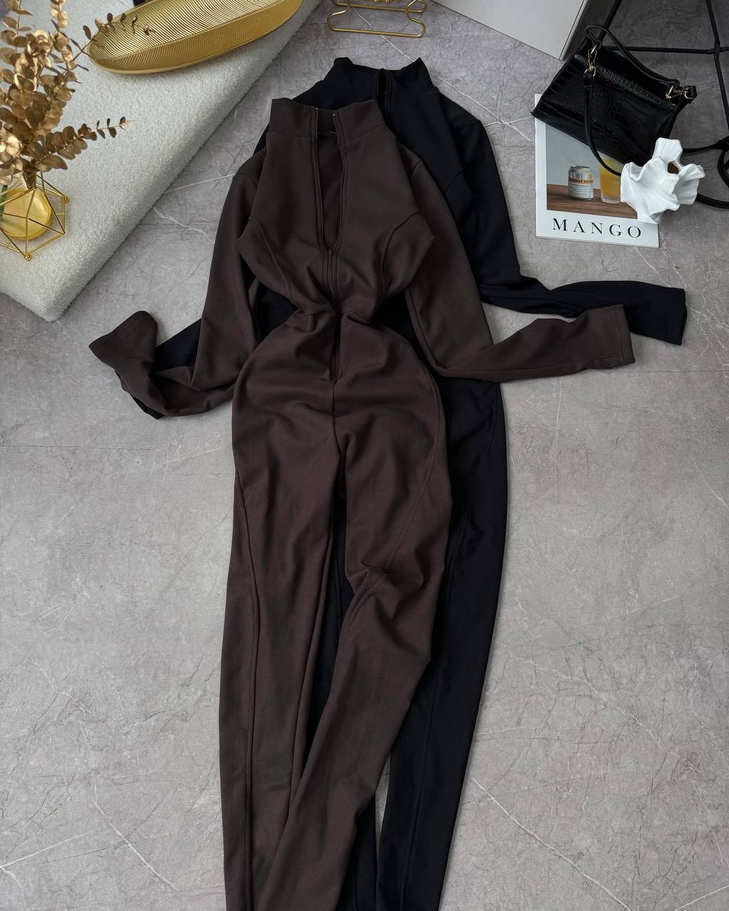 Нереально практичний комбез на змійці, з перестрочками, які підкреслюють фігуру. Мʼяка приємна тепла тканина. Тягнеться по фігурі.