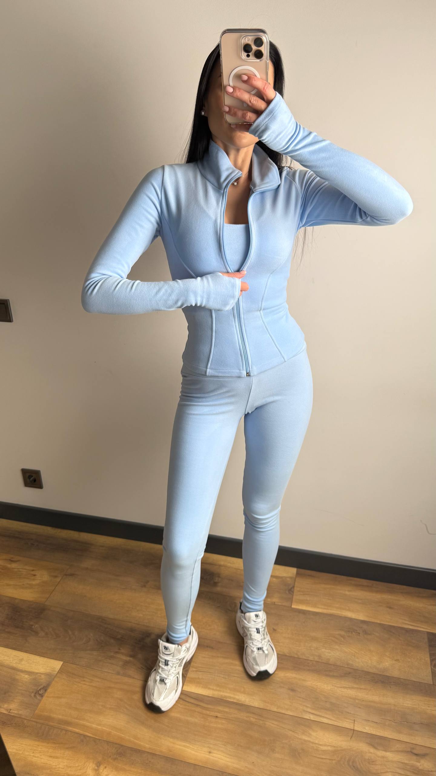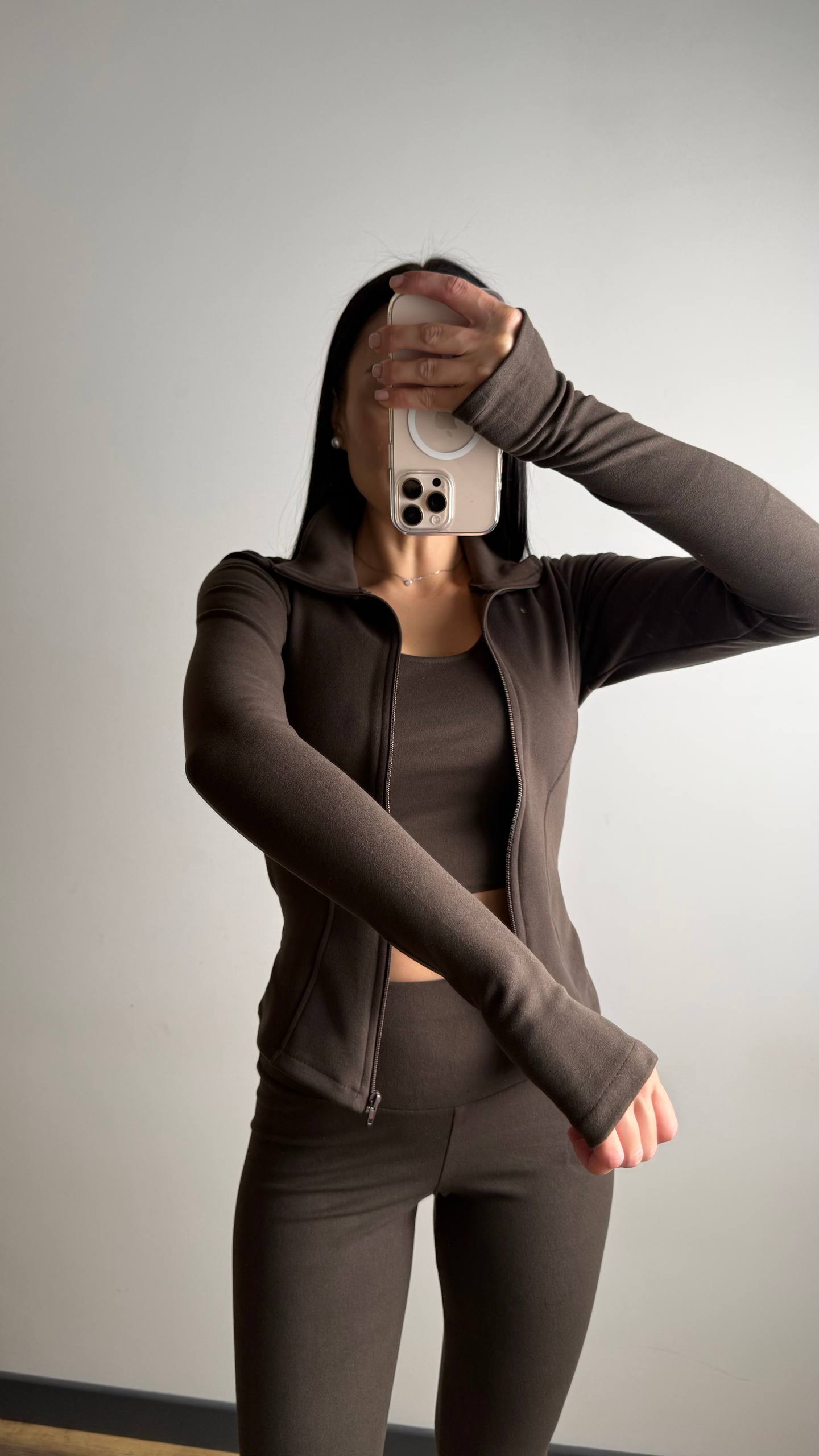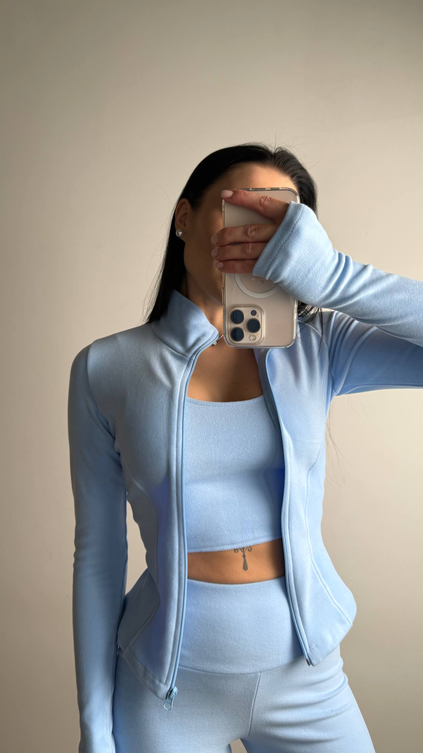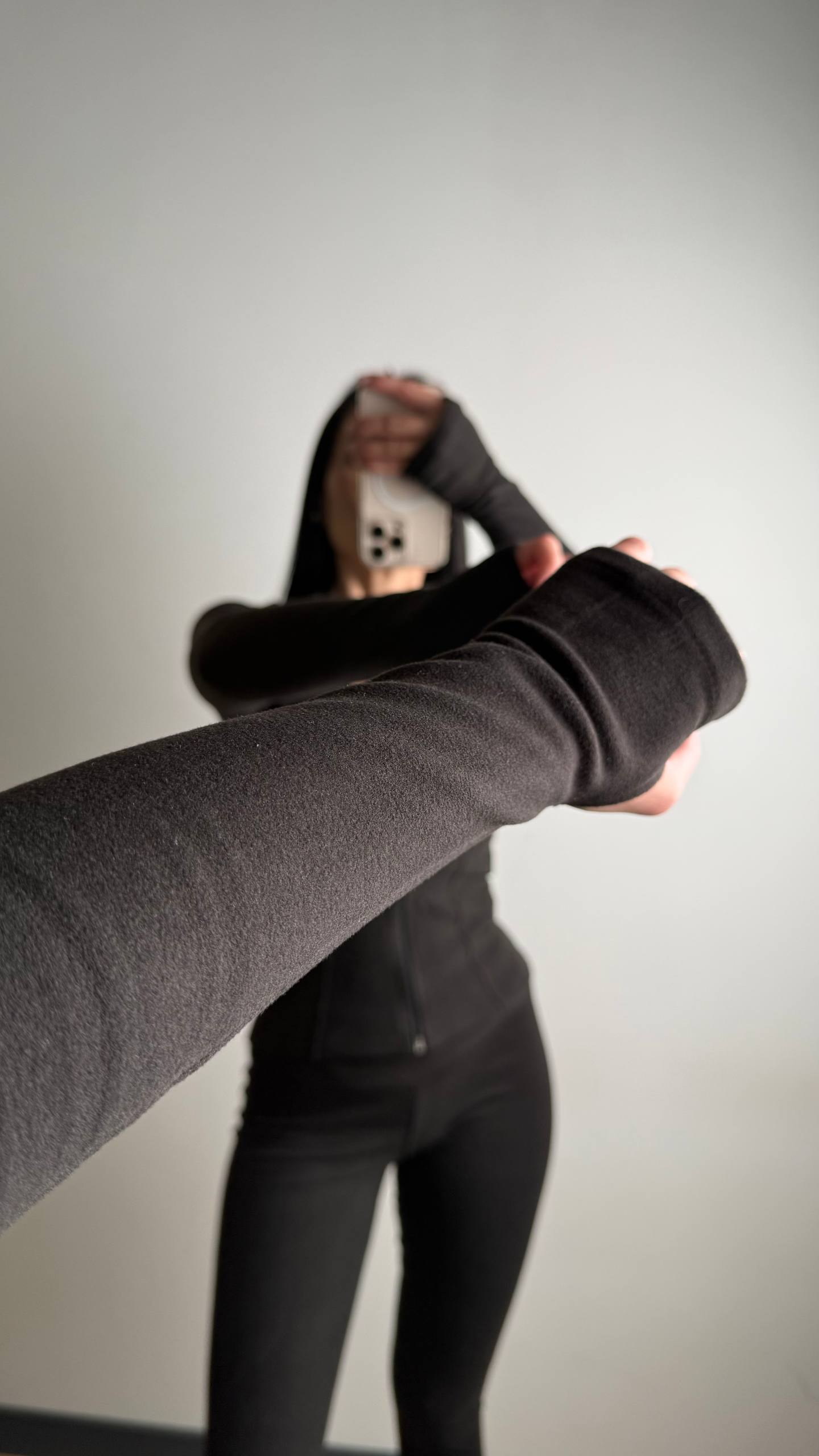 У комплект входить топ, лонгслів на блискавці та легінси — ідеально сідають по фігурі, підкреслюючи лінії тіла.