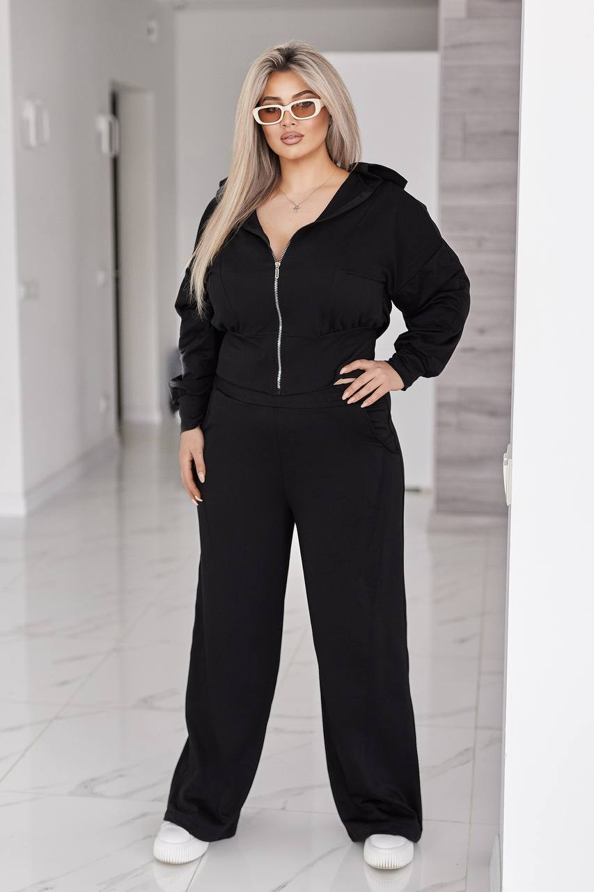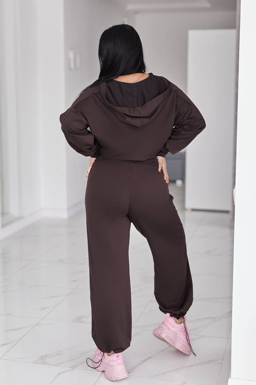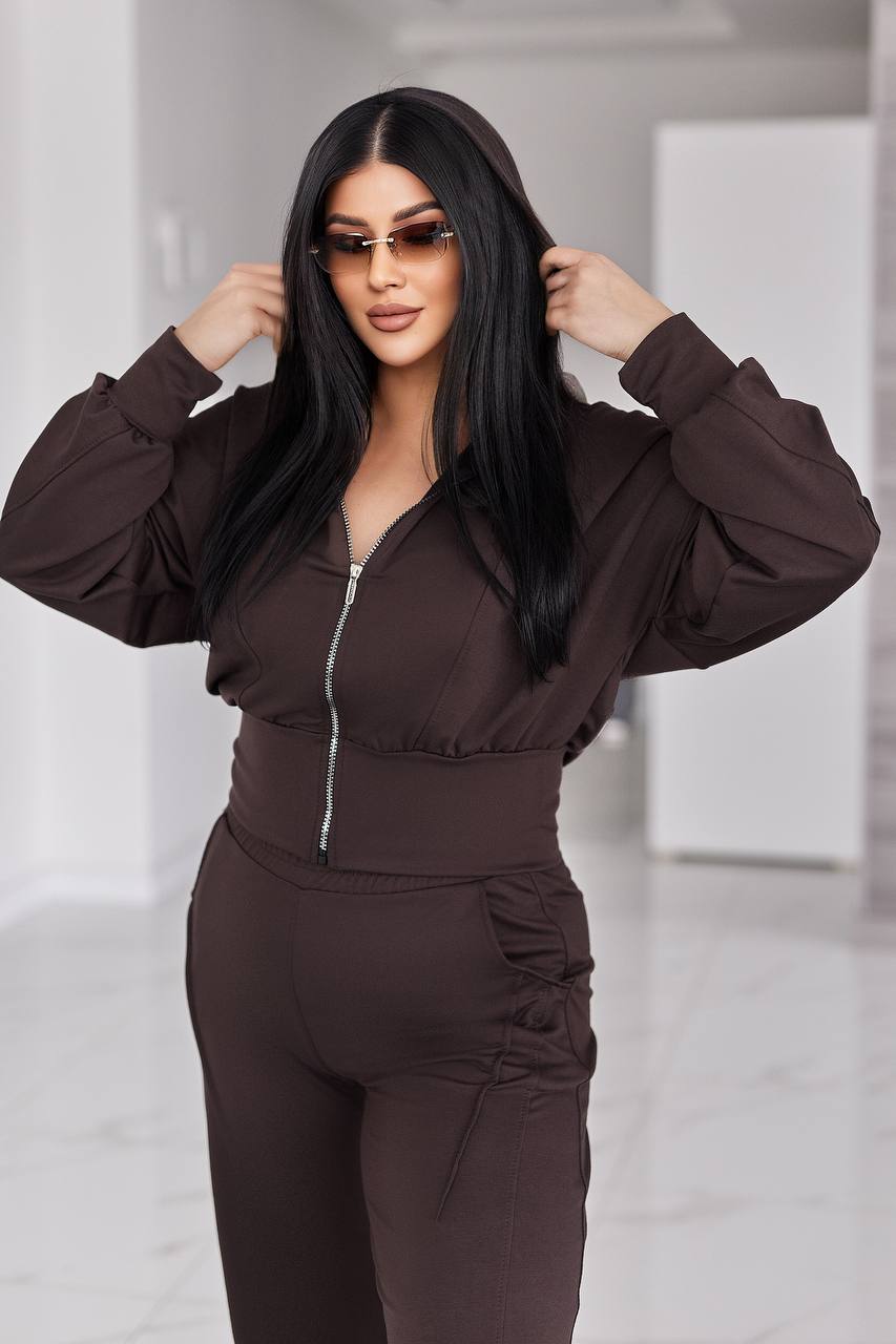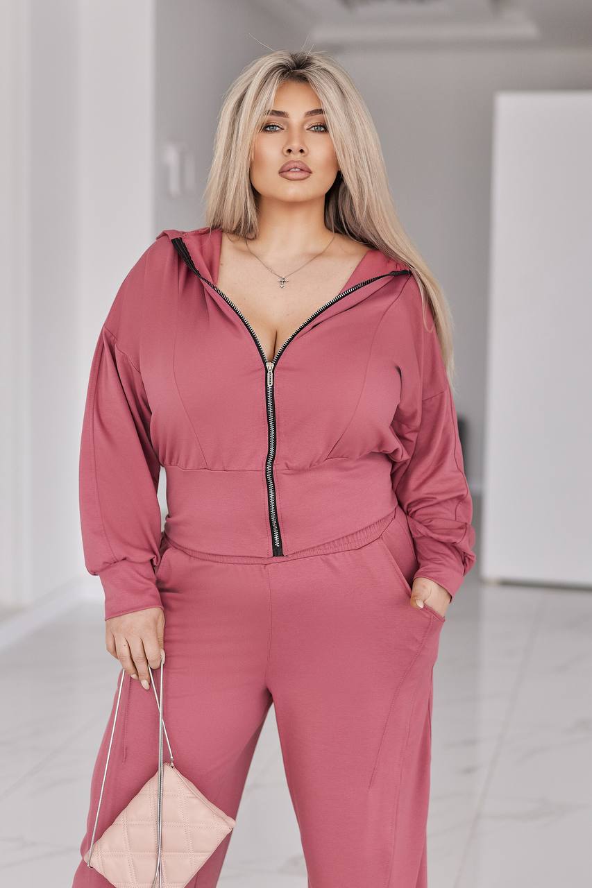 Жіночий костюм у стилі casual і athleisure, складається з кофти та штанів.
