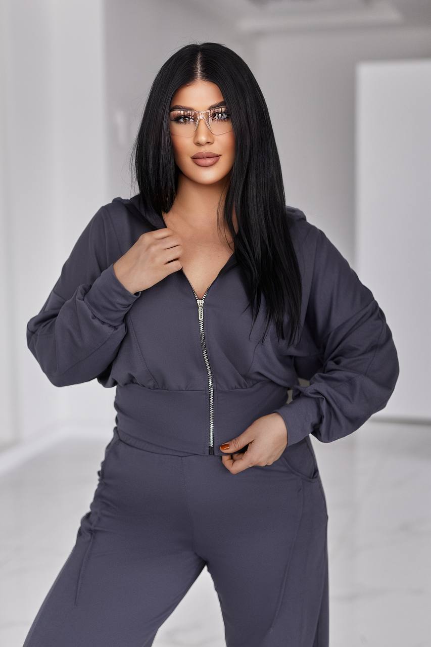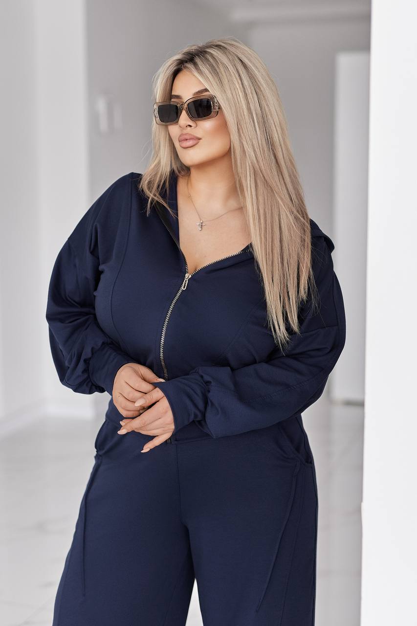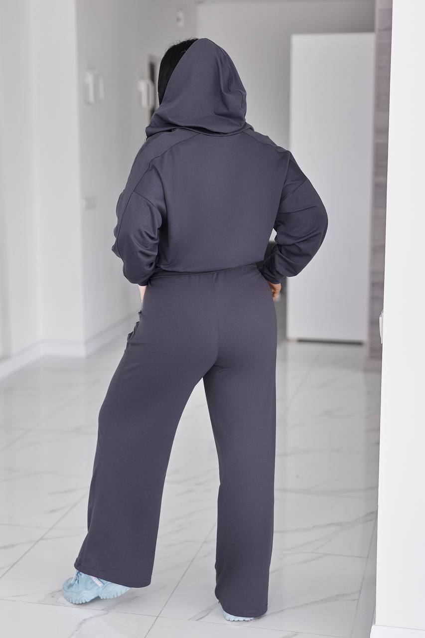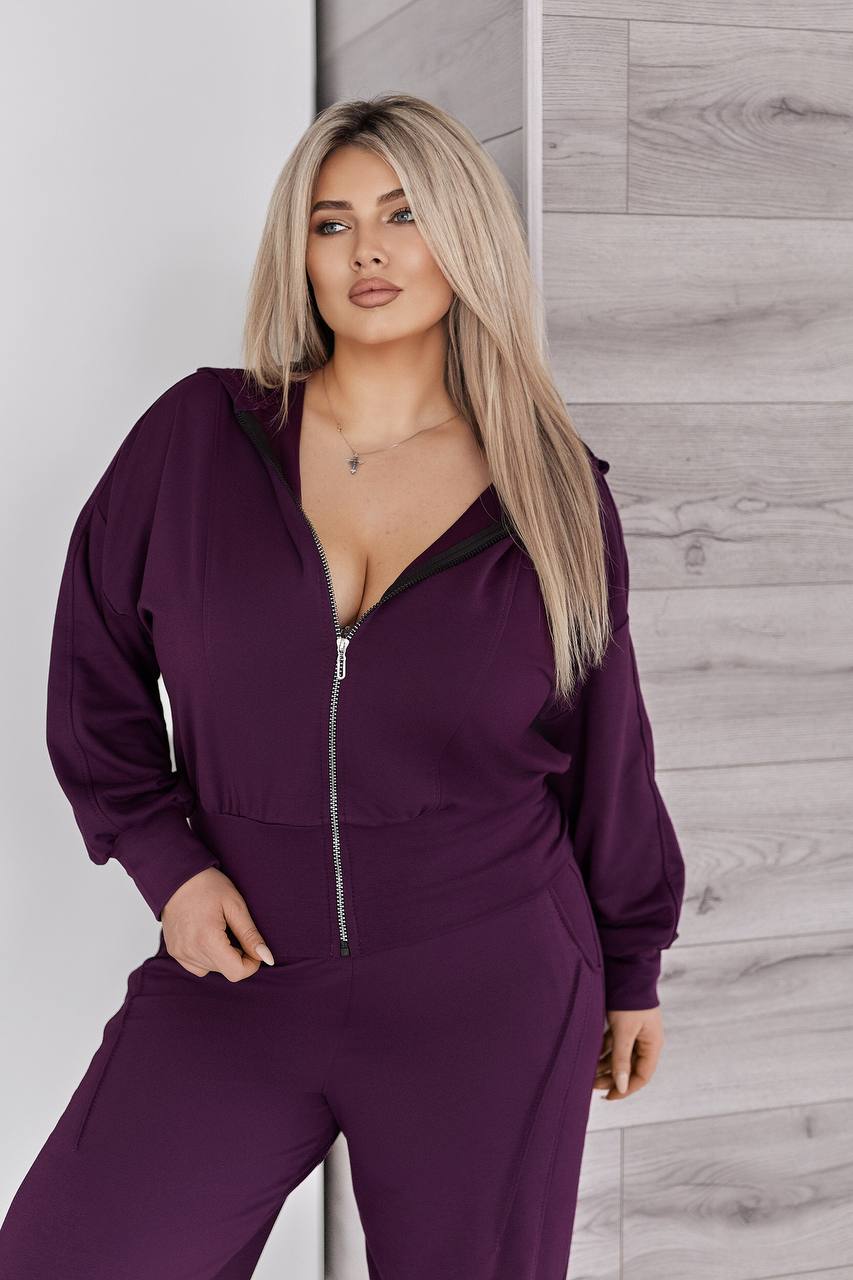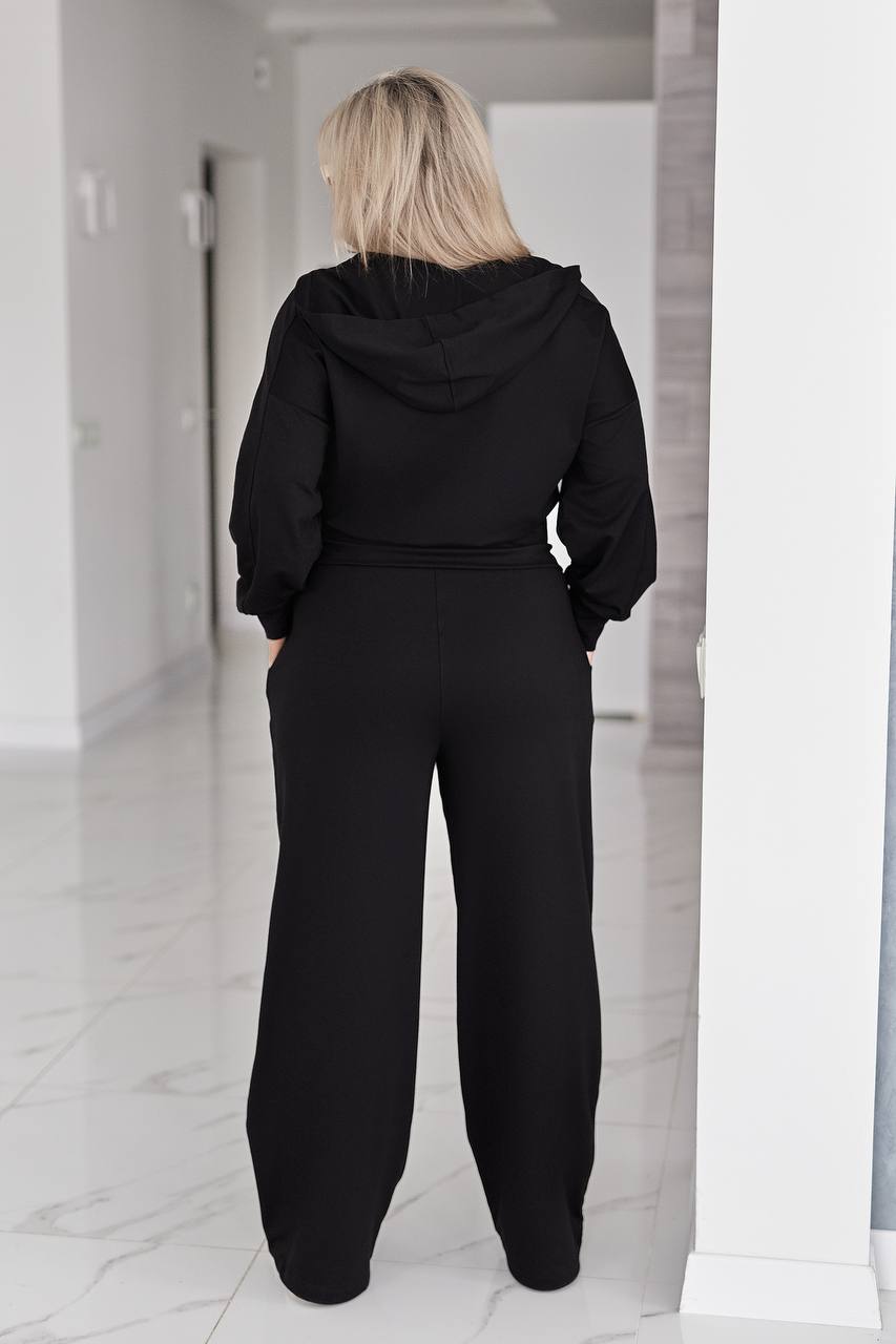 Жіночий костюм у стилі casual і athleisure, складається з кофти та штанів.