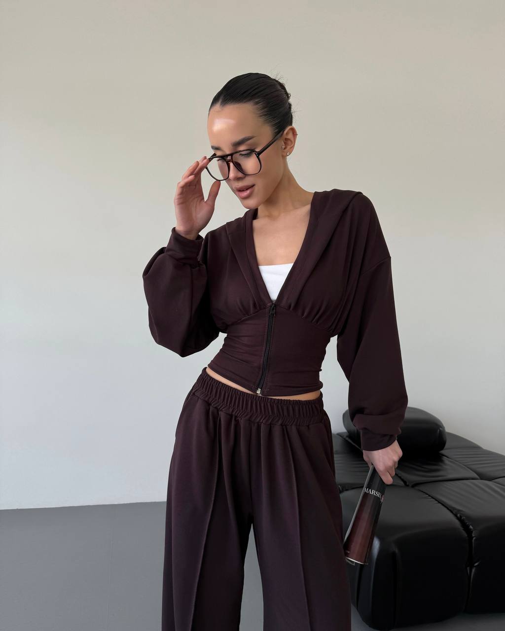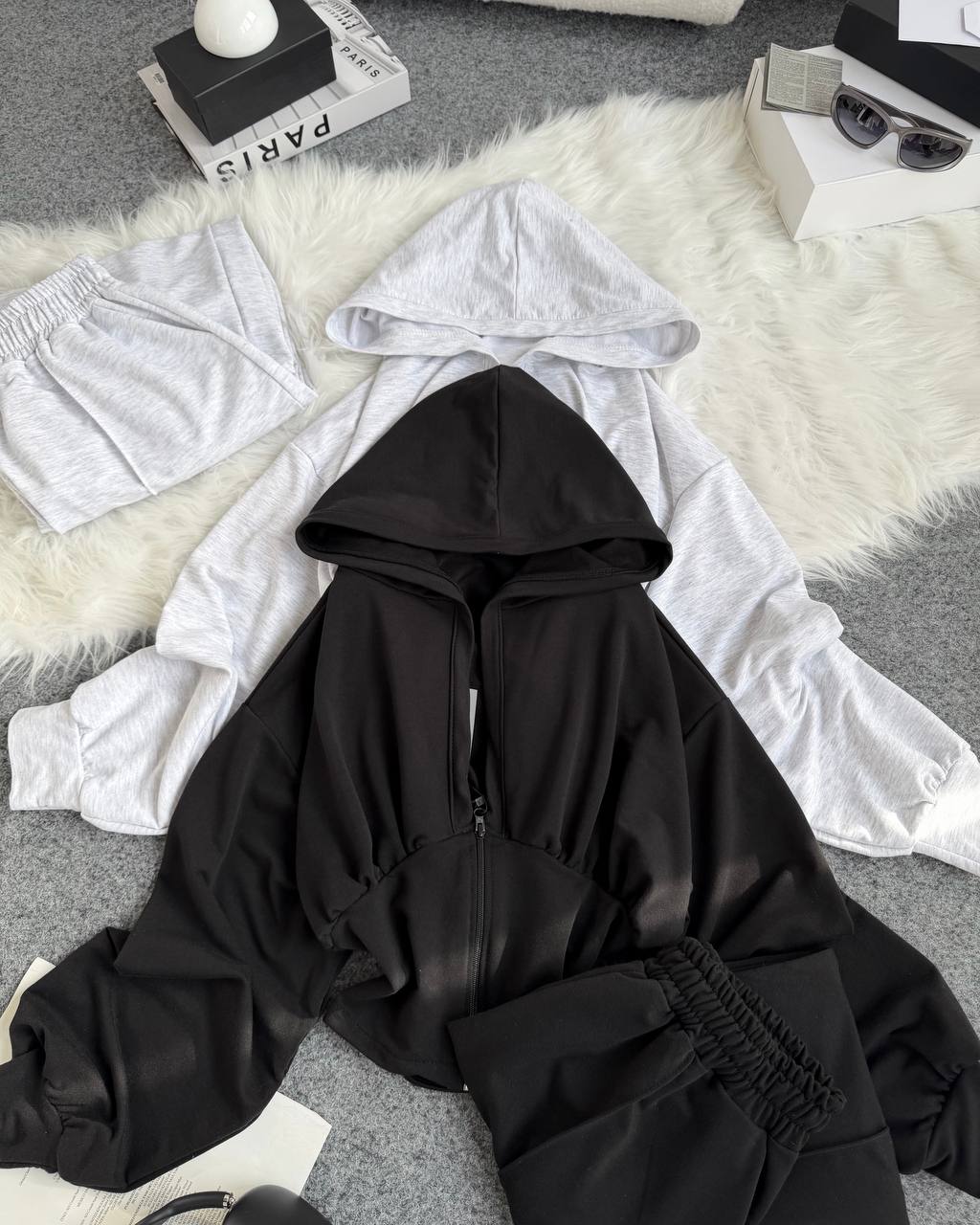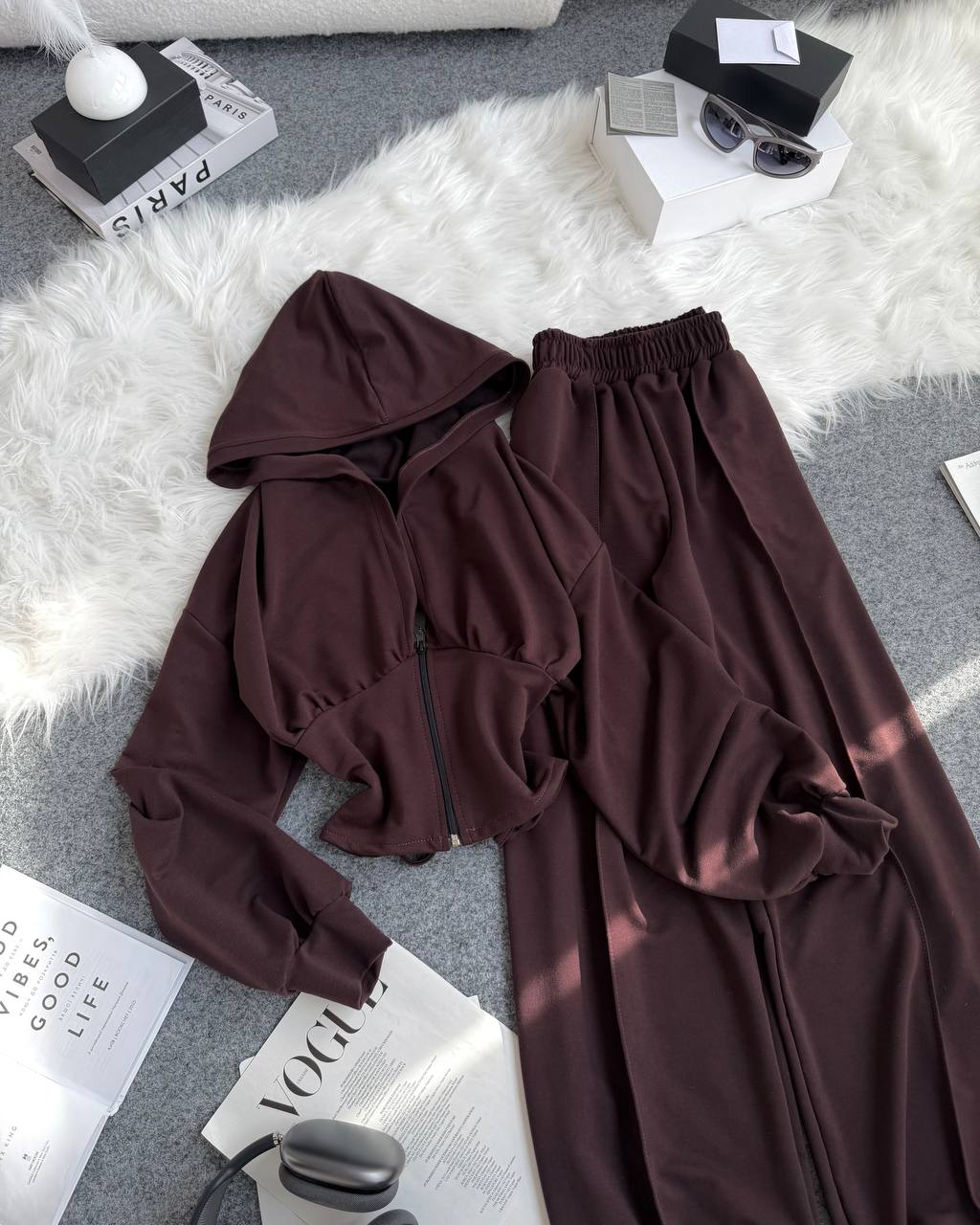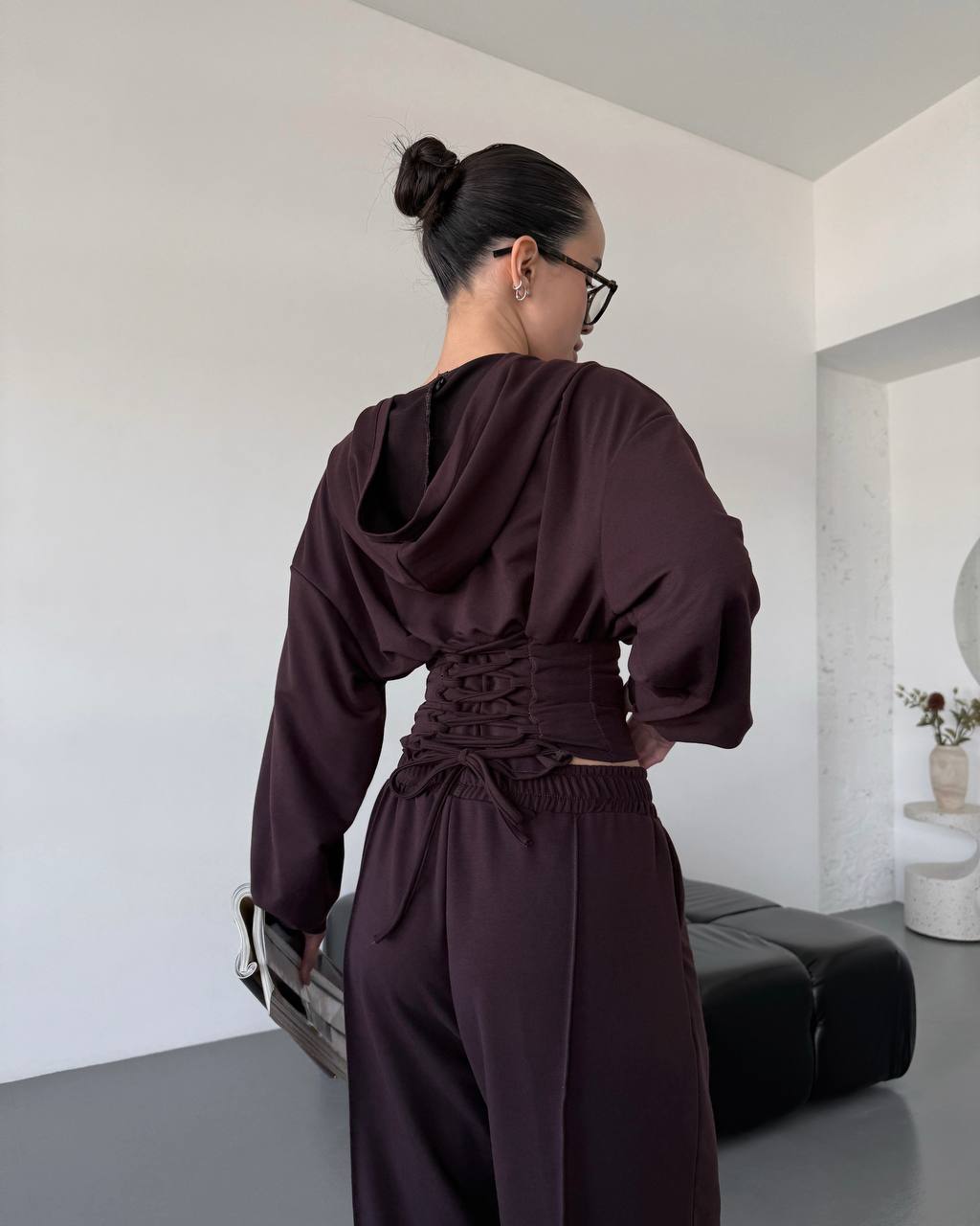 Ідеальний прогулянковий костюм до весни в стилі оверсайз. Йде зі шнурівкою на спинці, яка регулює талію. Легка приємна тканина. Штани мають фіксатори знизу для зручності.