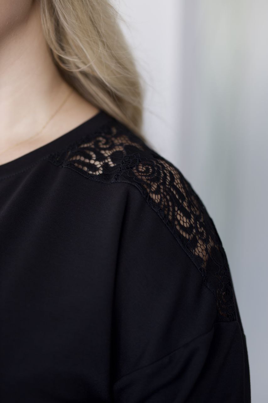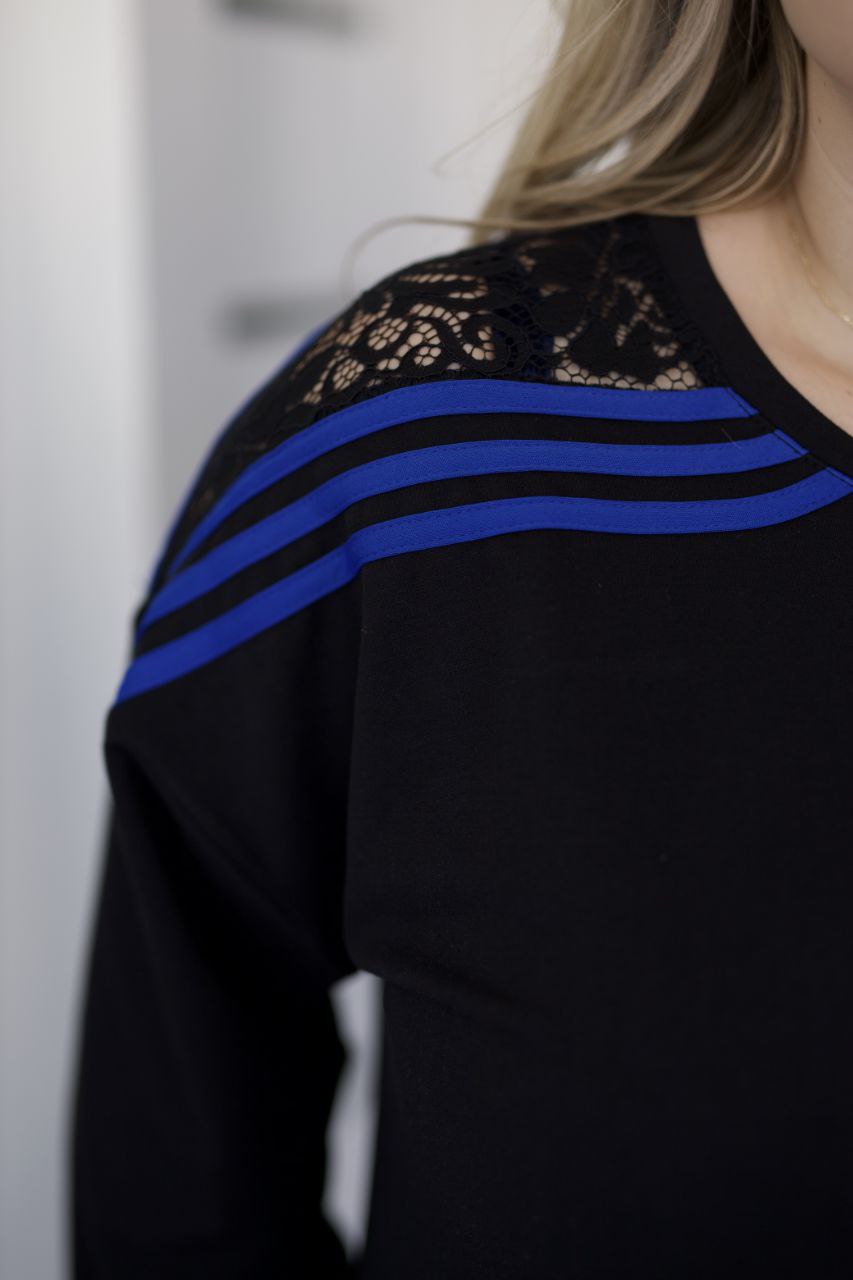 На плечах — вставки з гіпюру та лампаси, що додають жіночності та оригінальності.