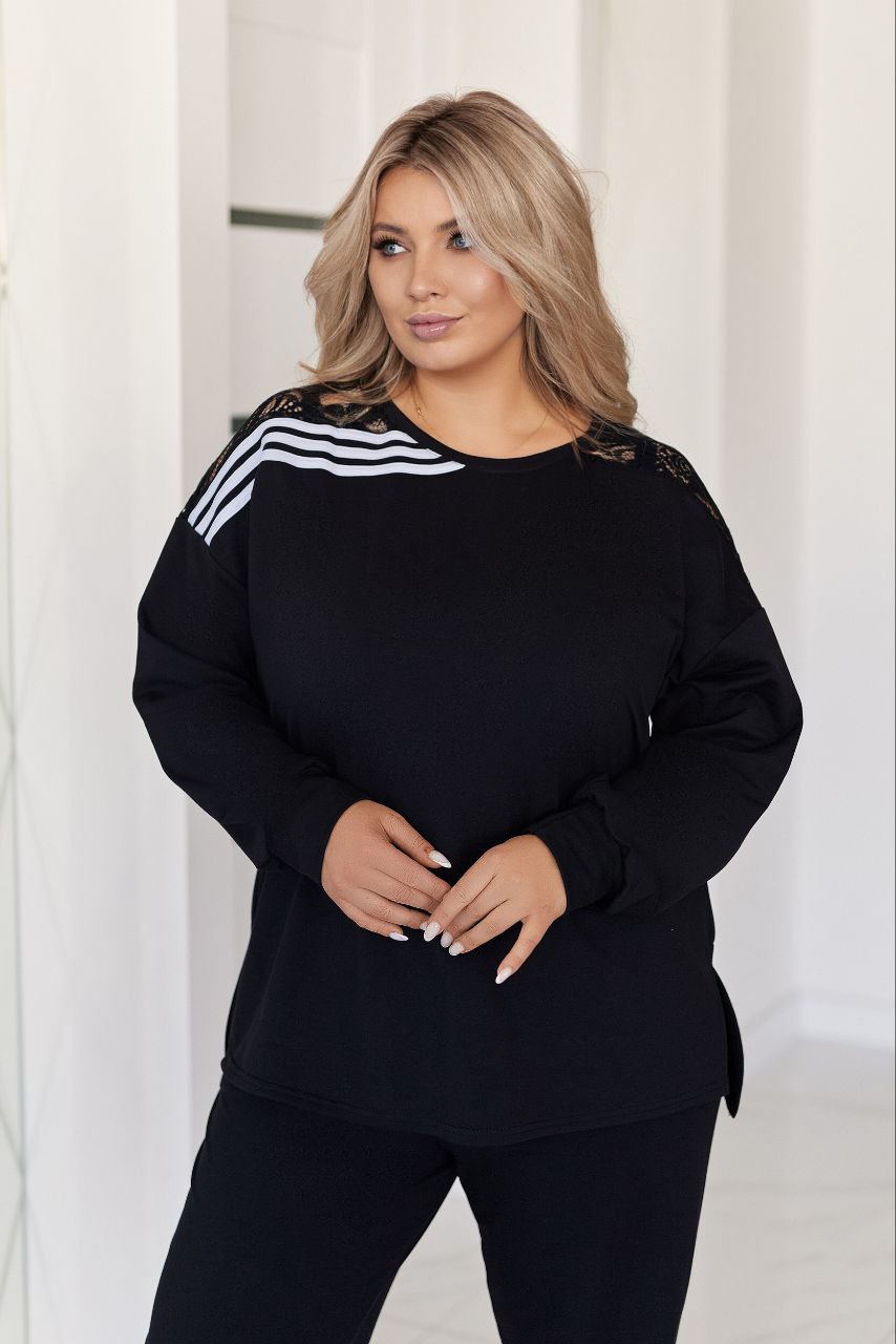 ●Світшот вільного крою з округлою горловиною та довгим рукавом на манжеті, по боках розрізи.