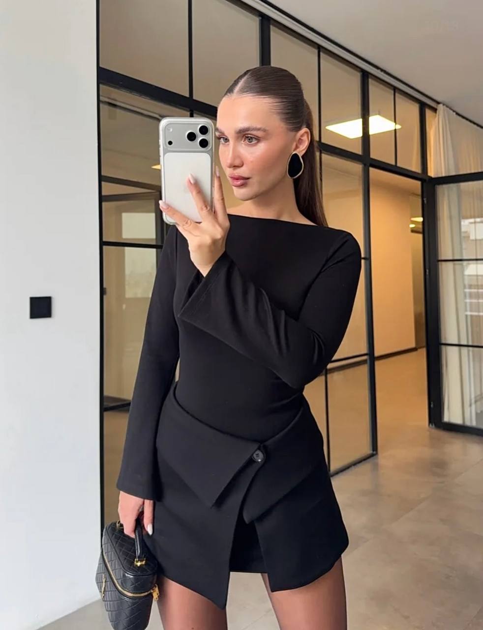 Вишукана сукня, створена для жінок, які цінують лаконічність, елегантність і бездоганну посадку. Модель виконана у форматі міні, м’яко підкреслює силует та візуально струнить фігуру. Спідниця відокремлюється і може служити окремою частиною гардеробу.