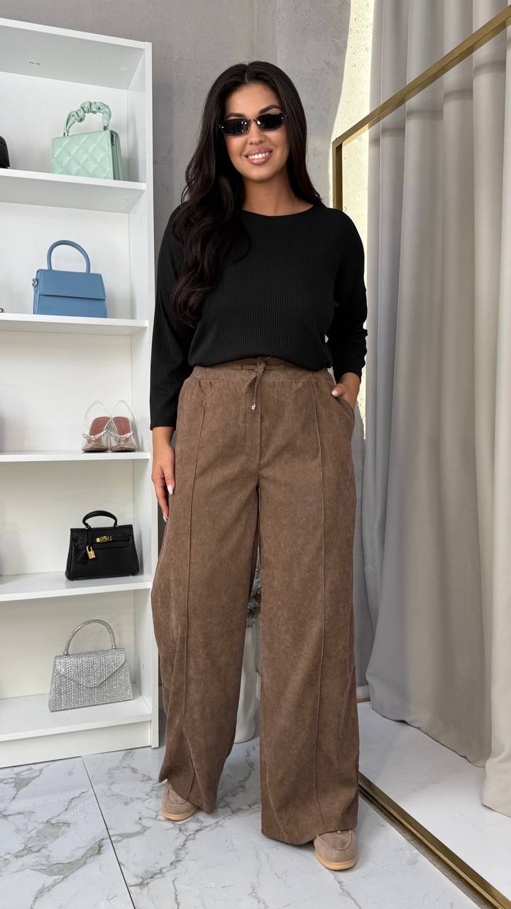 264 МОДЕЛЬ ‼️ВЕЛЬВЕТОВІ БРЮКИ ПРЯМОГО КРОЮ зі строчкою по переду.