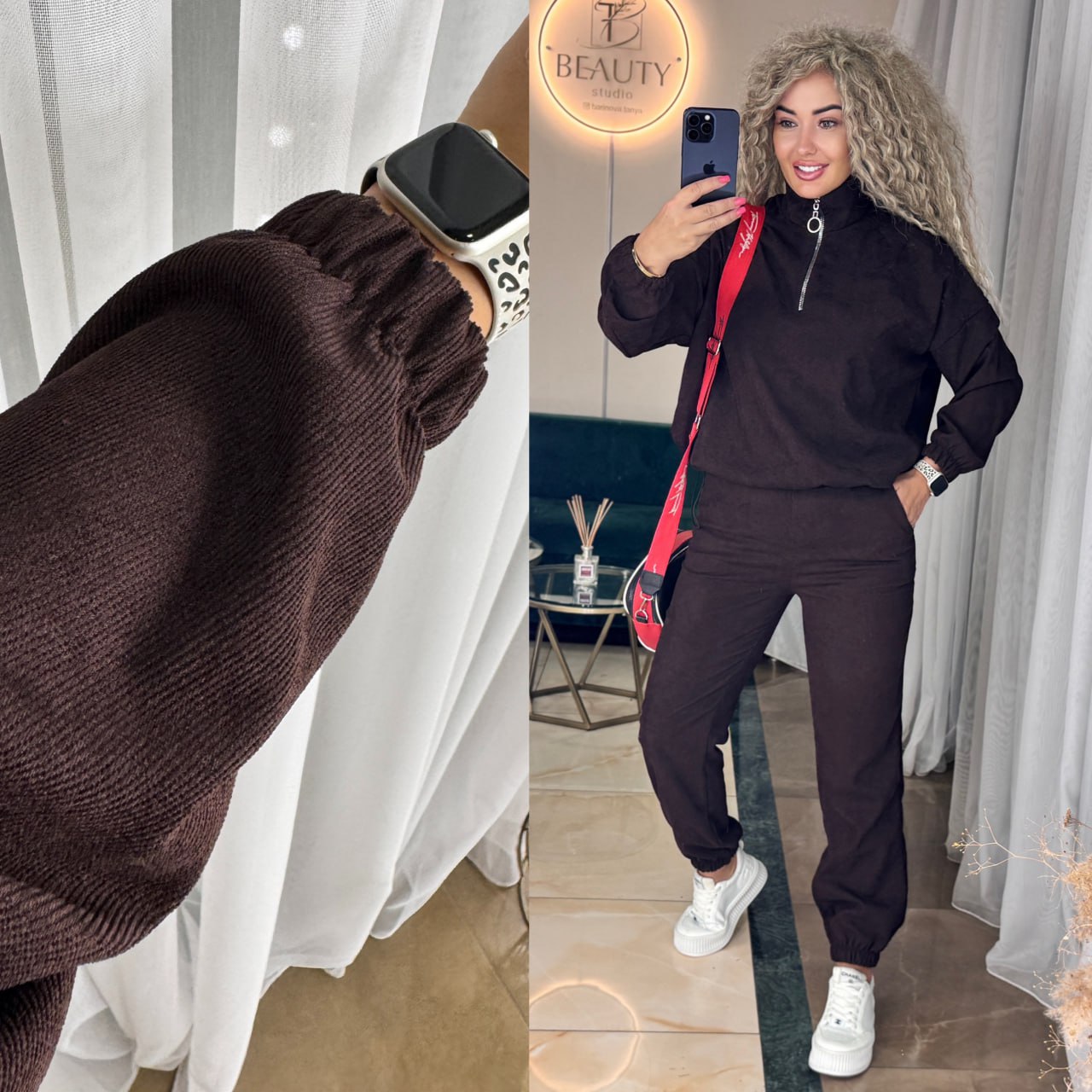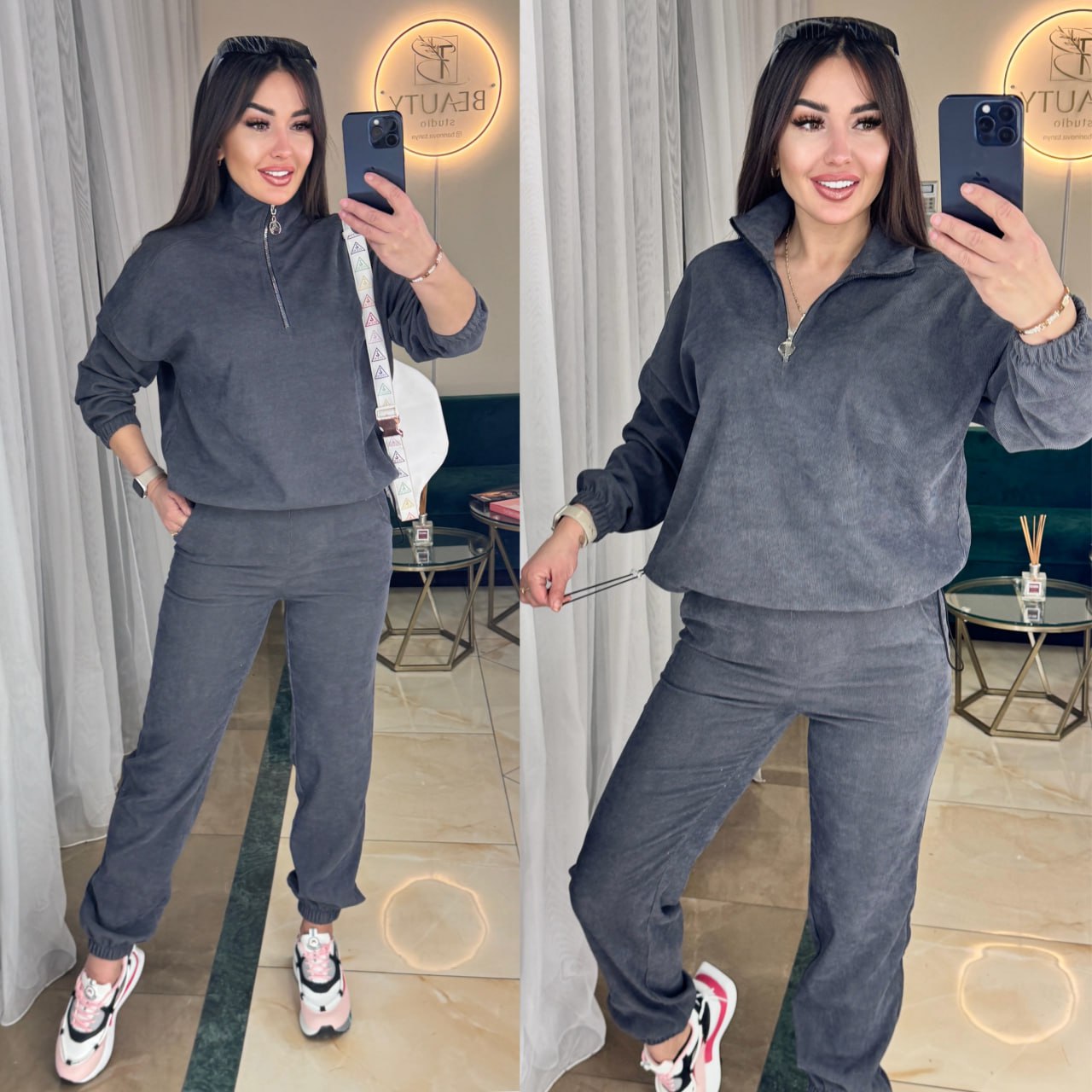 Опис: пляшка, чорний, сірий , штани з високою посадкою, манжети штанів на резинці, кофта затягується по низу резинкою можно зробити як і ширше так і звузити , манжети на кофті резинка