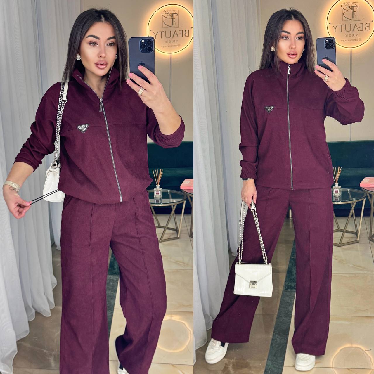 Штани палаццо з карманами, кофта на блискавці, рукав на резинці, низ кофти на фіксаторі.