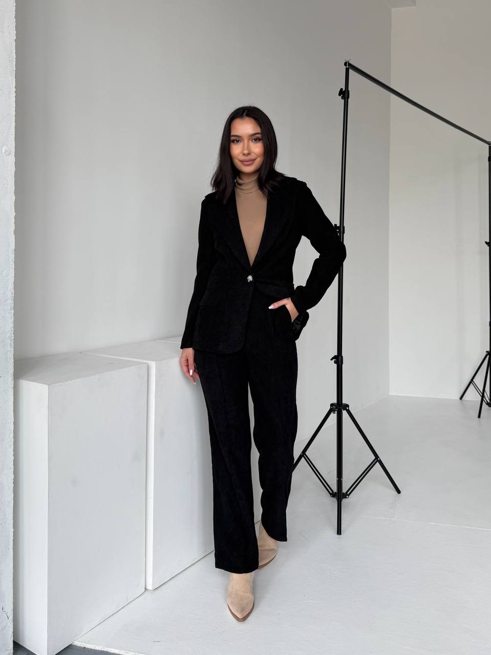 Костюм виглядає актуально та впевнено — ідеальний вибір для дівчини , яка цінує якість, естетику та універсальність. Легко адаптується як до ділового гардеробу, так і до сучасних casual-образів, залишаючись базою гардеробу на багато сезонів.