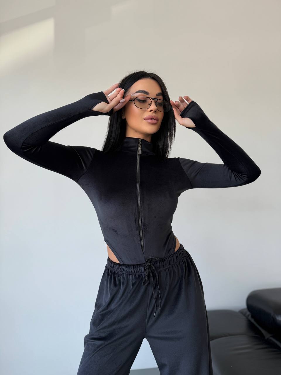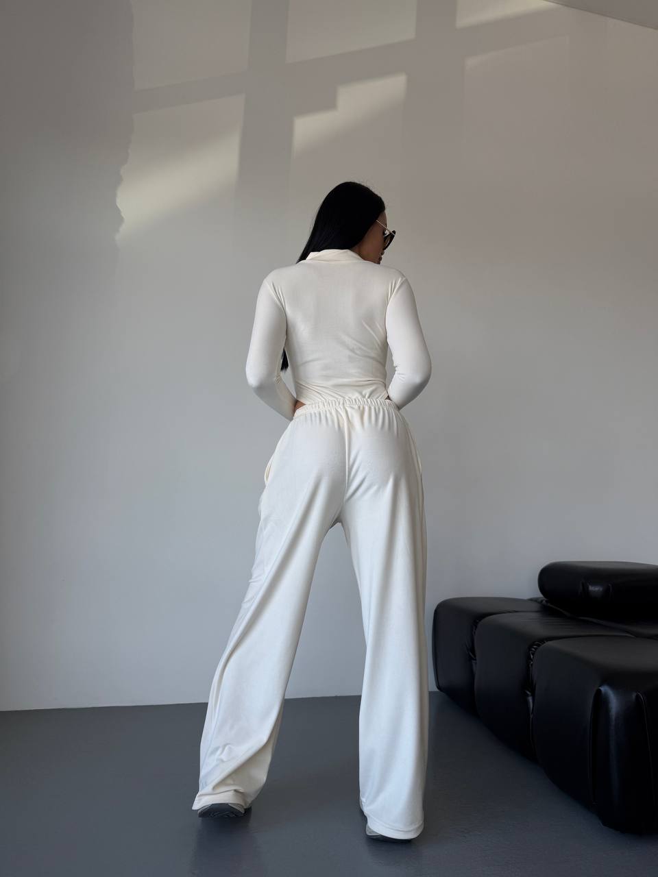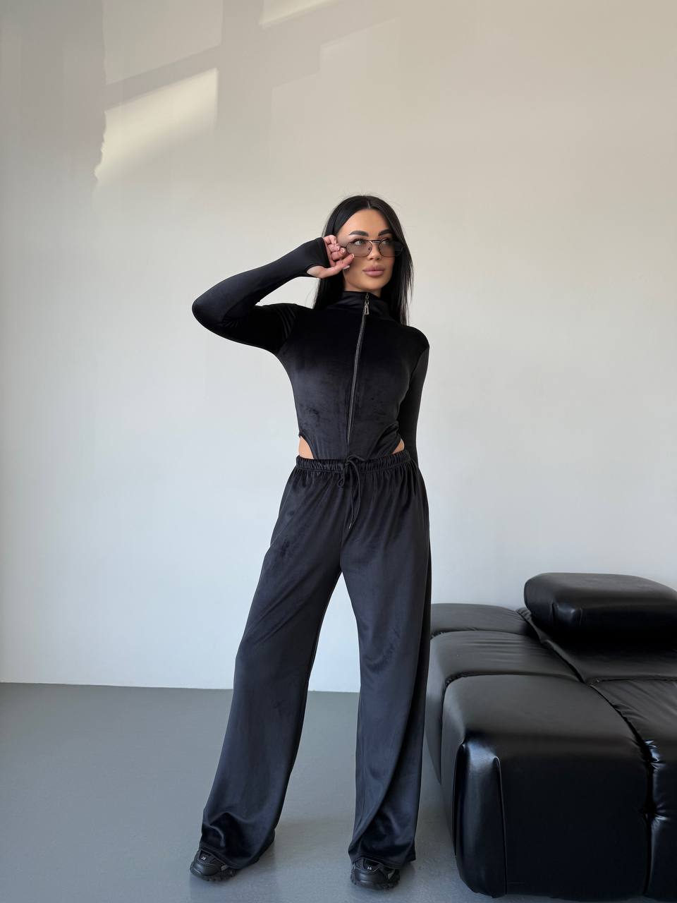 Боді на блискавці + вільні штани — стиль і комфорт в одному образі.
