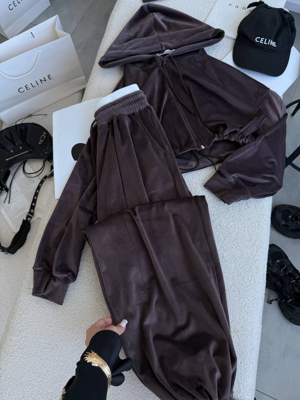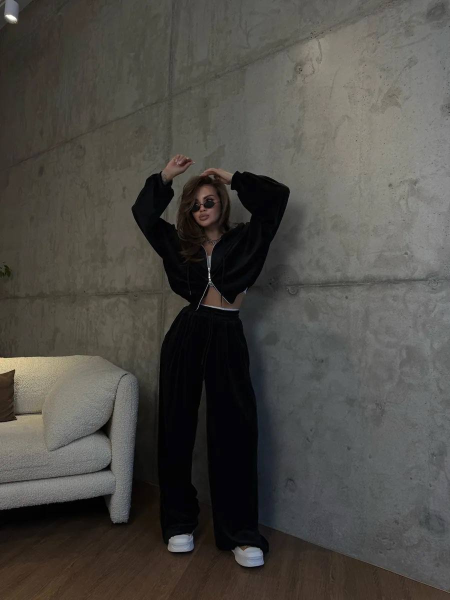 М’який і приємний до тіла костюм з велюру точно стане вашим улюбленцем, завдяки своїй універсальності.