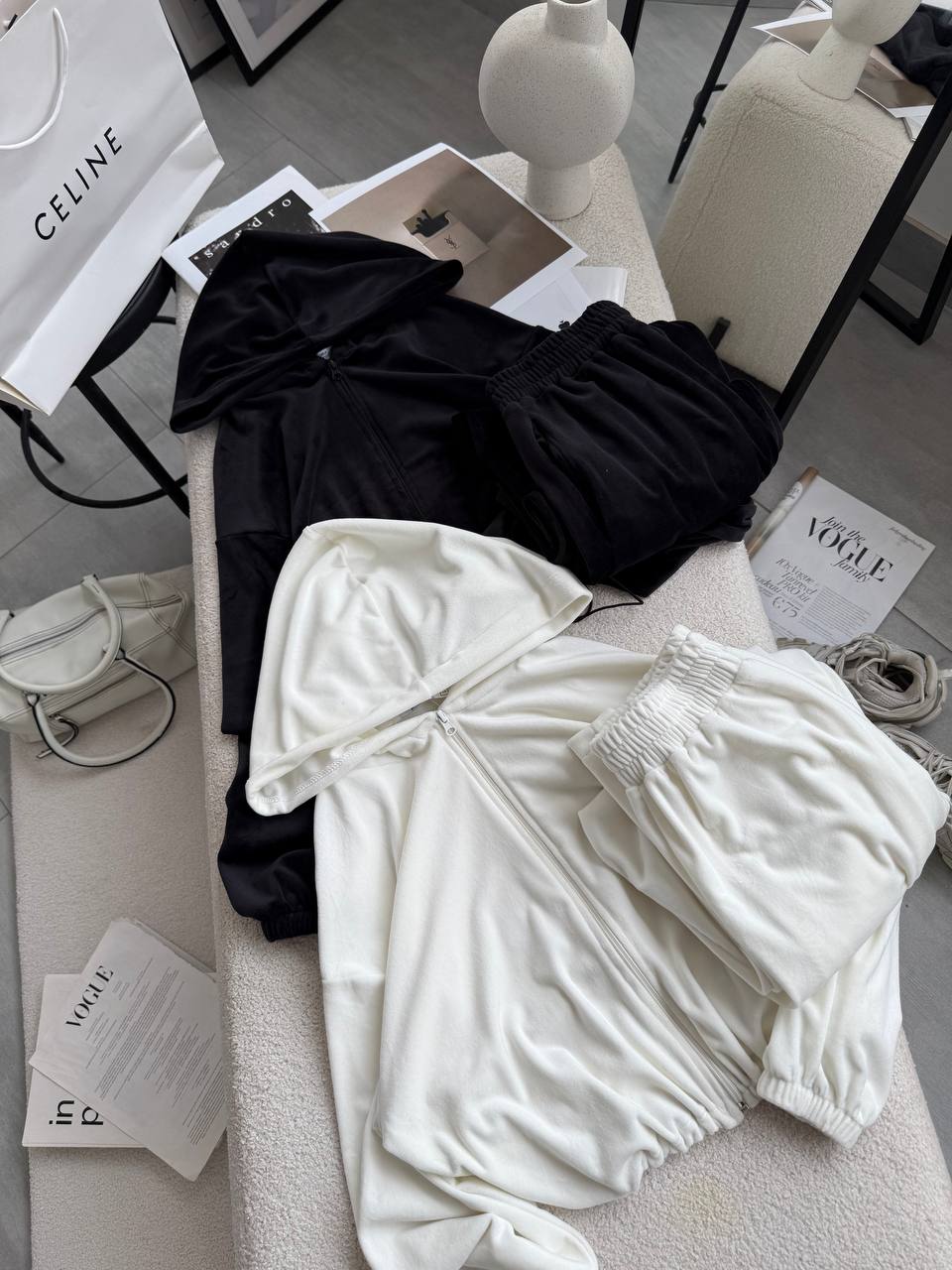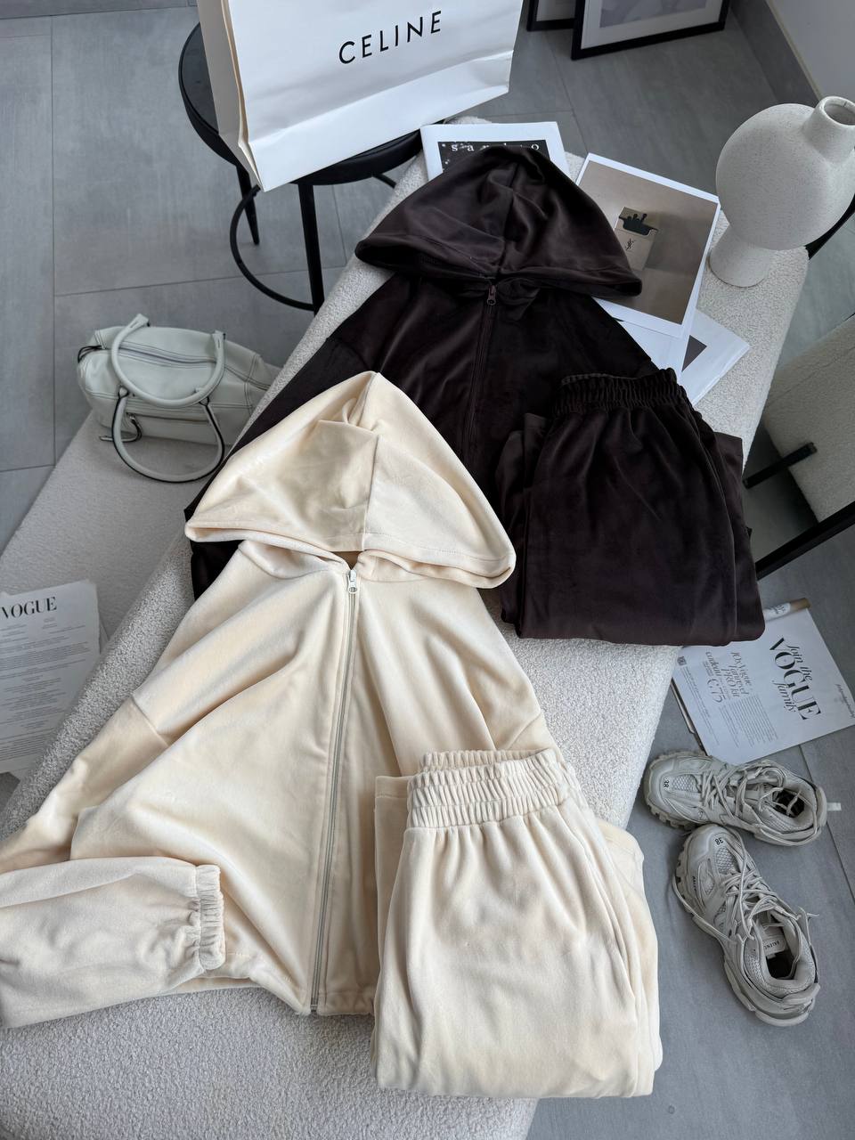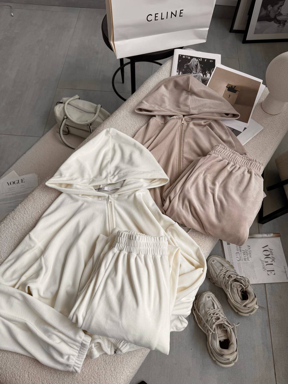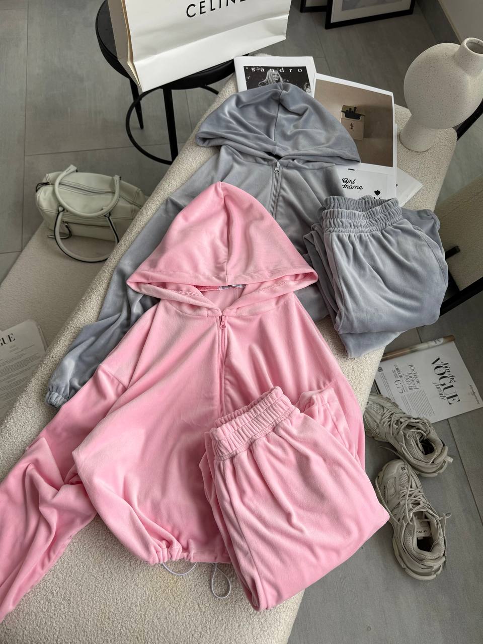 Ніжний та легкий як хмаринка велюровий костюм в актуальних відтінках. Складається з палаццо, які підійдуть для дівчат будь-якого зросту та вкороченого зіп-худі з регуляторами на талії, що дозволяють адаптувати виріб на свій смак.