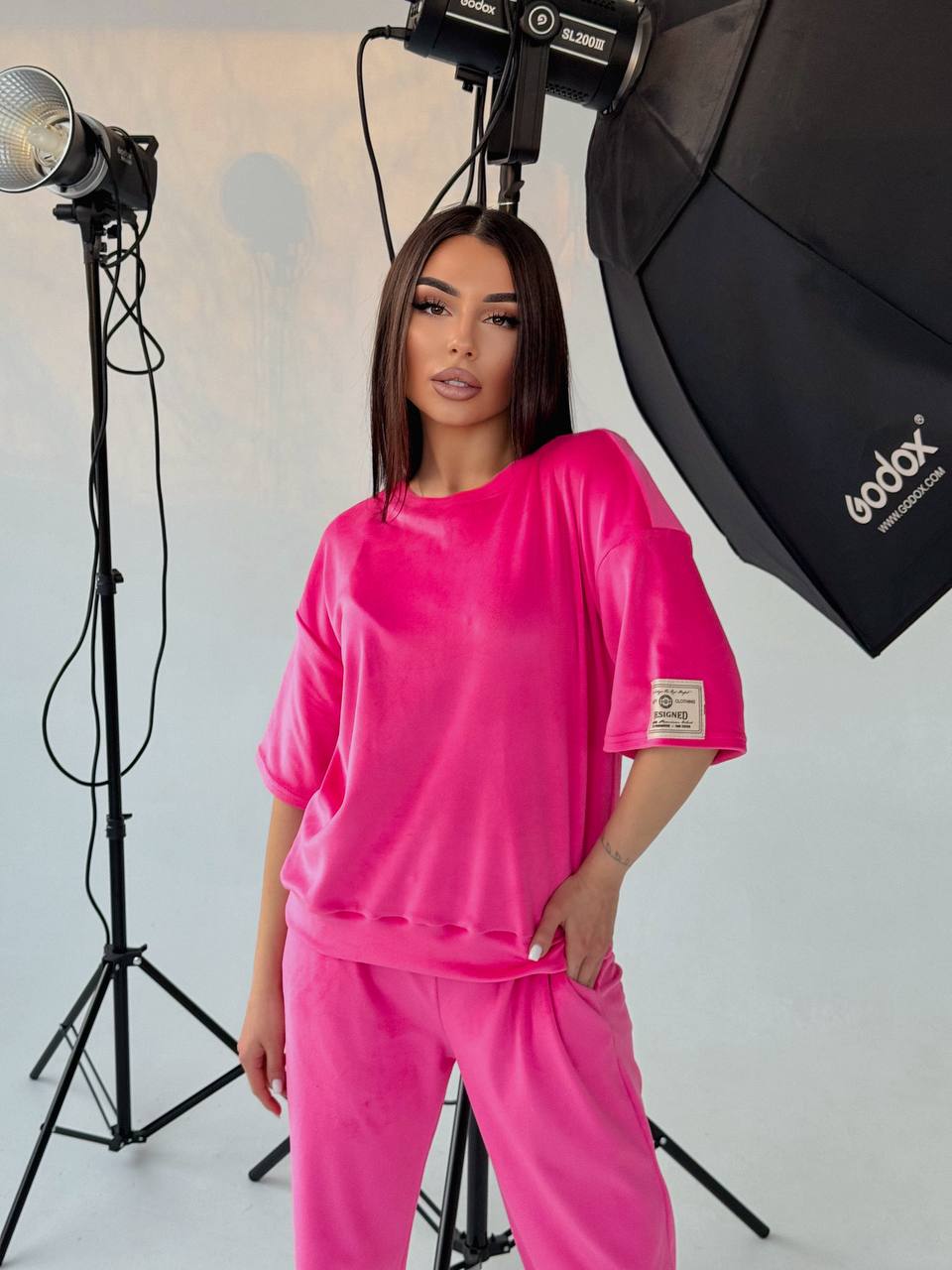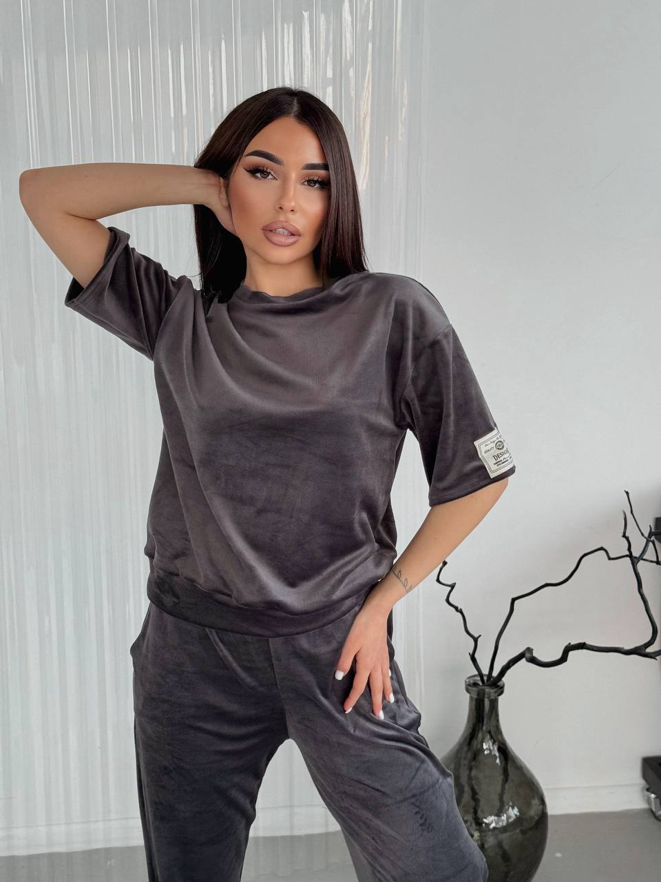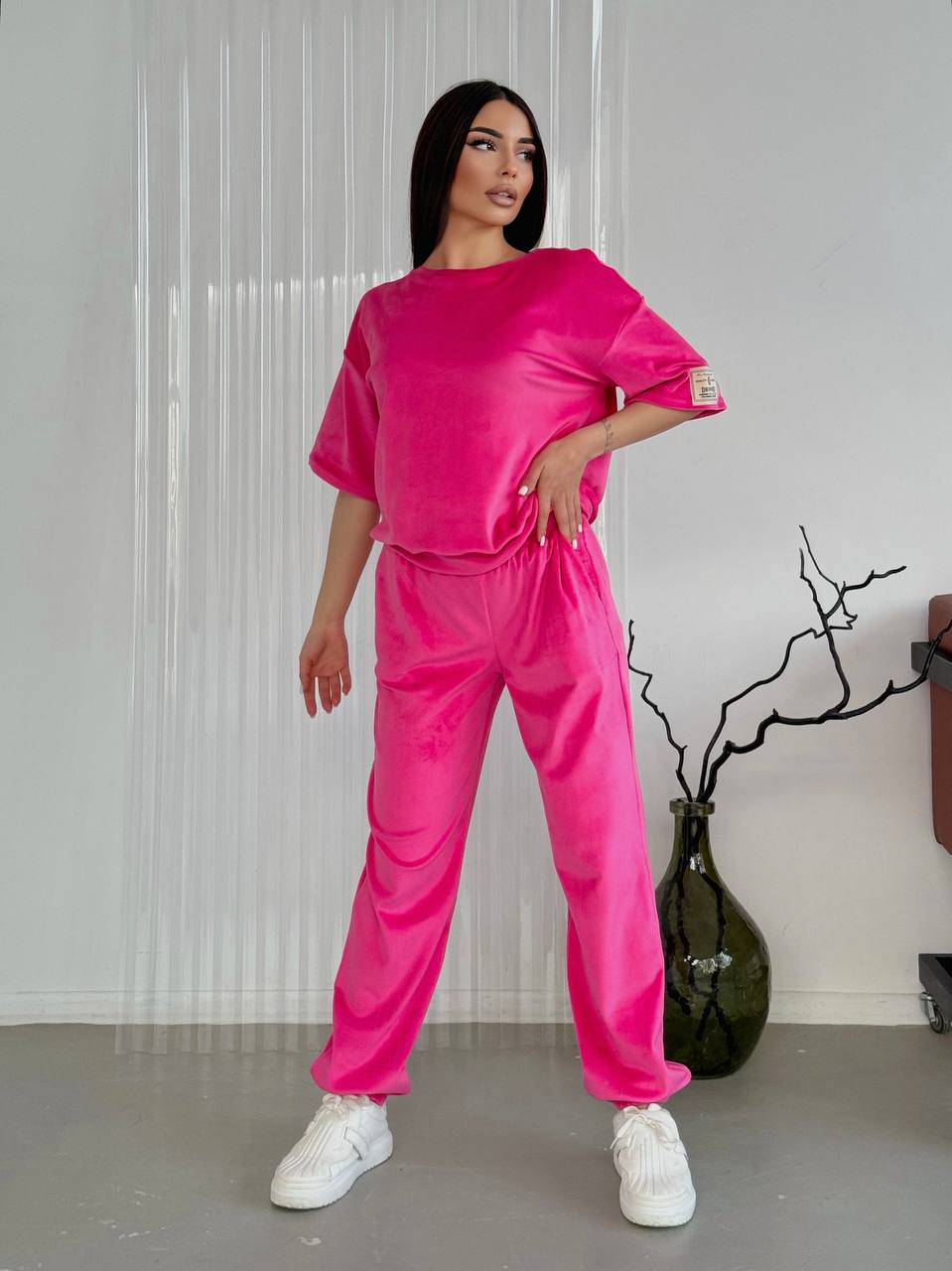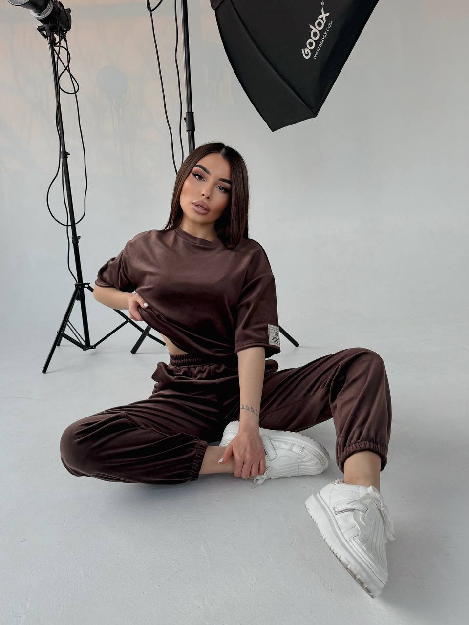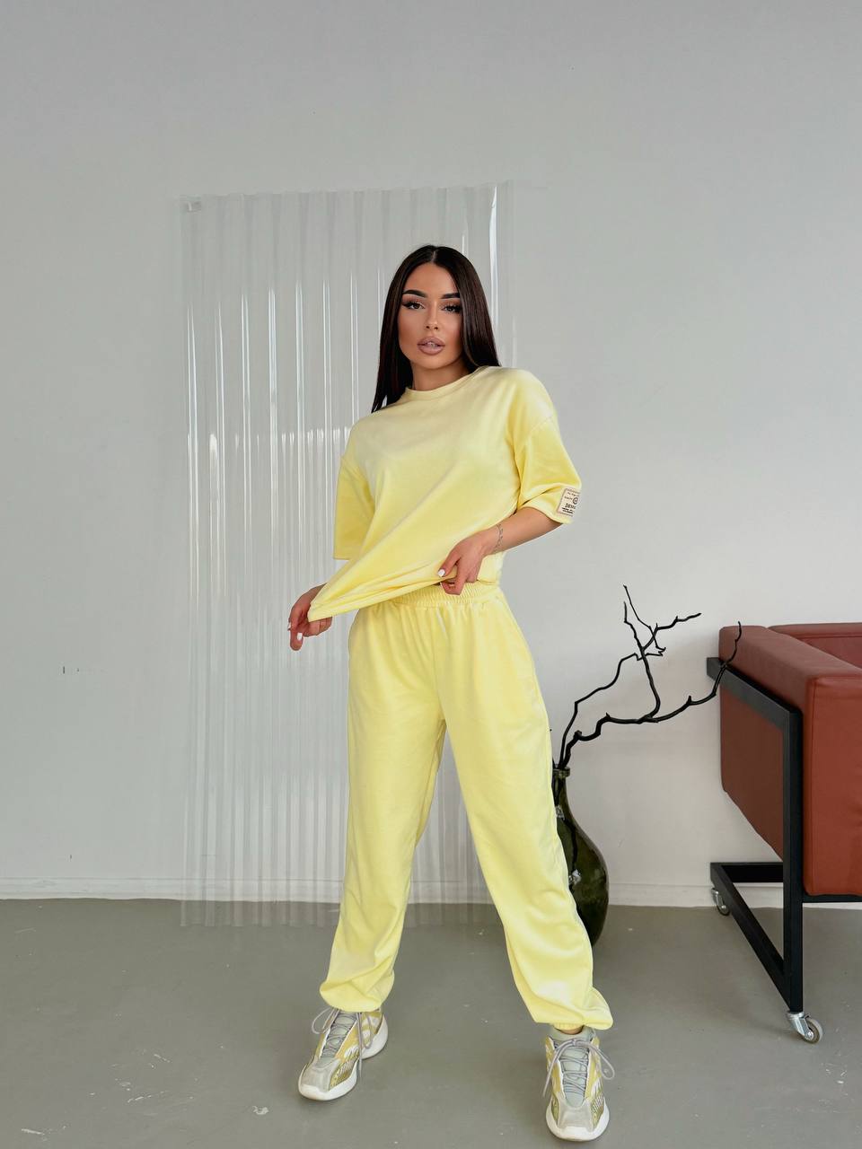 Стильний весняний велюровий костюм із футболкою та штанами — поєднання комфорту й стилю. Приємний до тіла матеріал, зручна посадка та ідеальний варіант для щоденного образу.