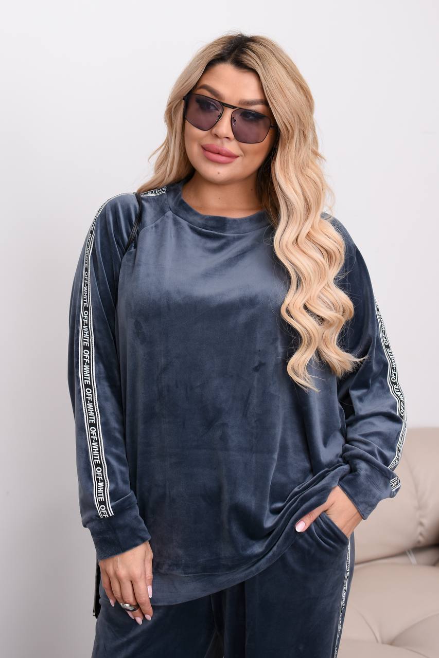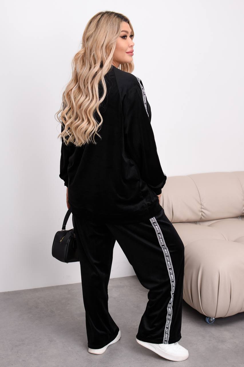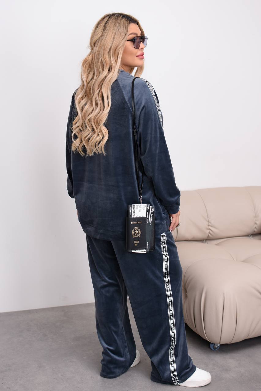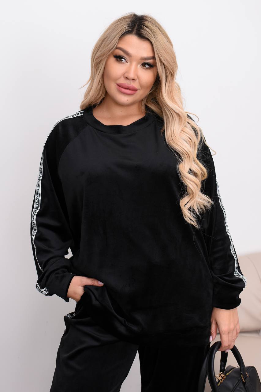 Зручний та стильний костюм вільного крою для активних дівчат.З подовженим світшотом,рукавом реглан і прямими штанами з кишенями,з пришивним лампасом