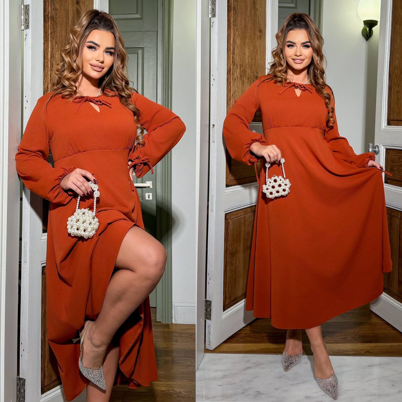 Сукня фасону трапеція з трендовими об’ємними рукавами. Не має застібок, блискавок, дуже гарно підкреслює переваги та ховає недоліки✔️