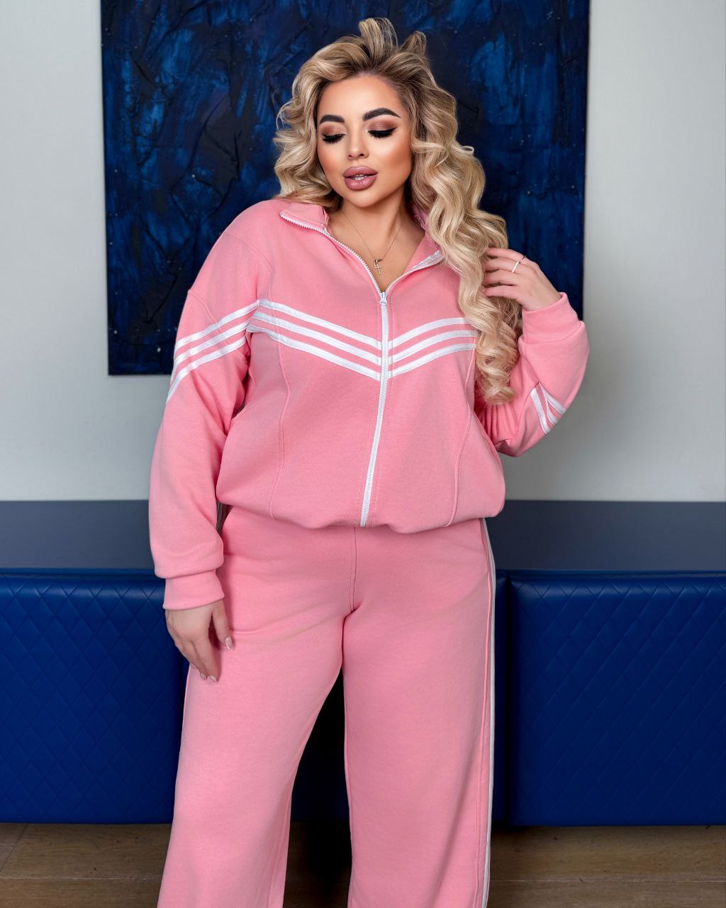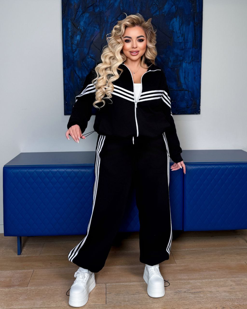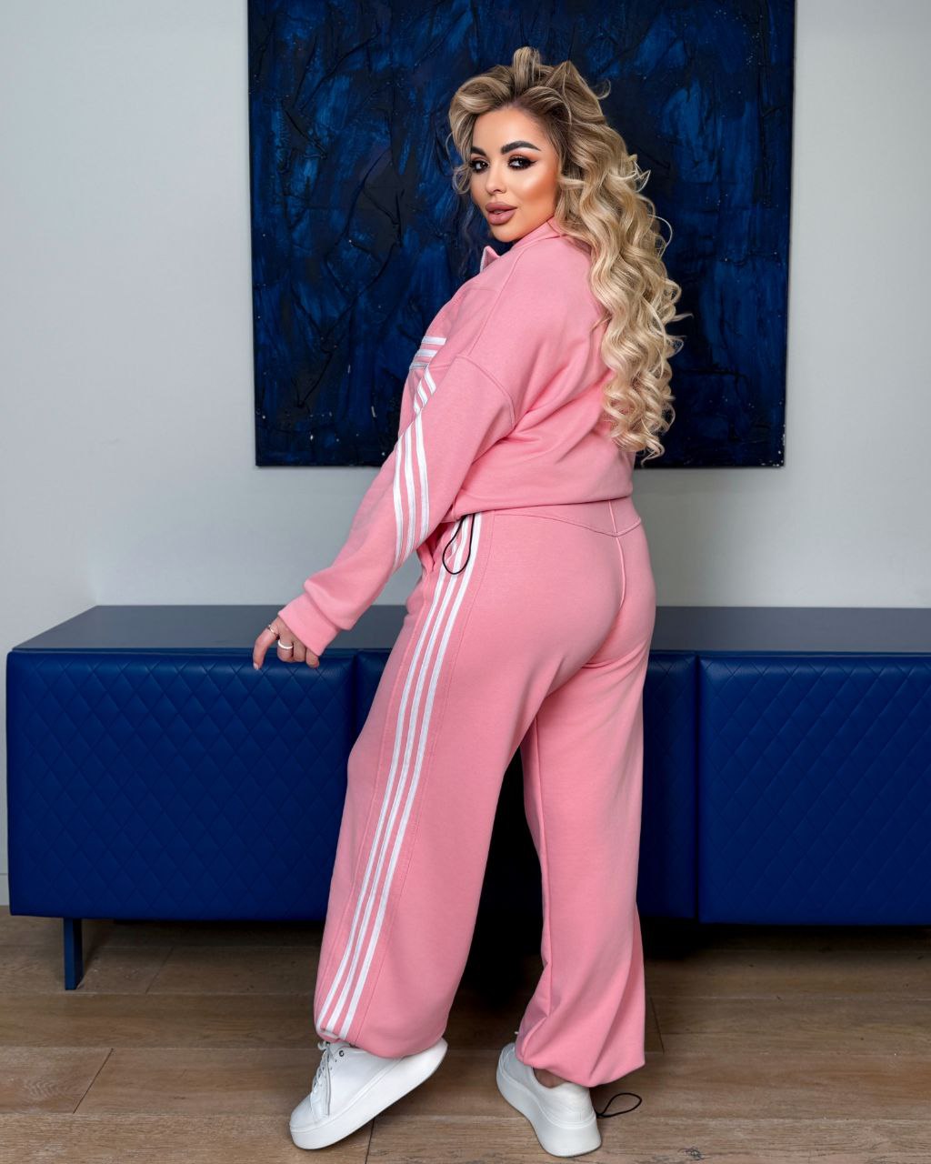 Кофта має дві кишені, по низу куліска. Штанці – висока посадка , низ з регулюванням