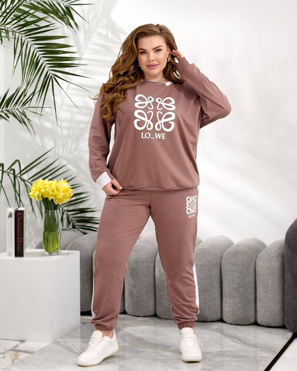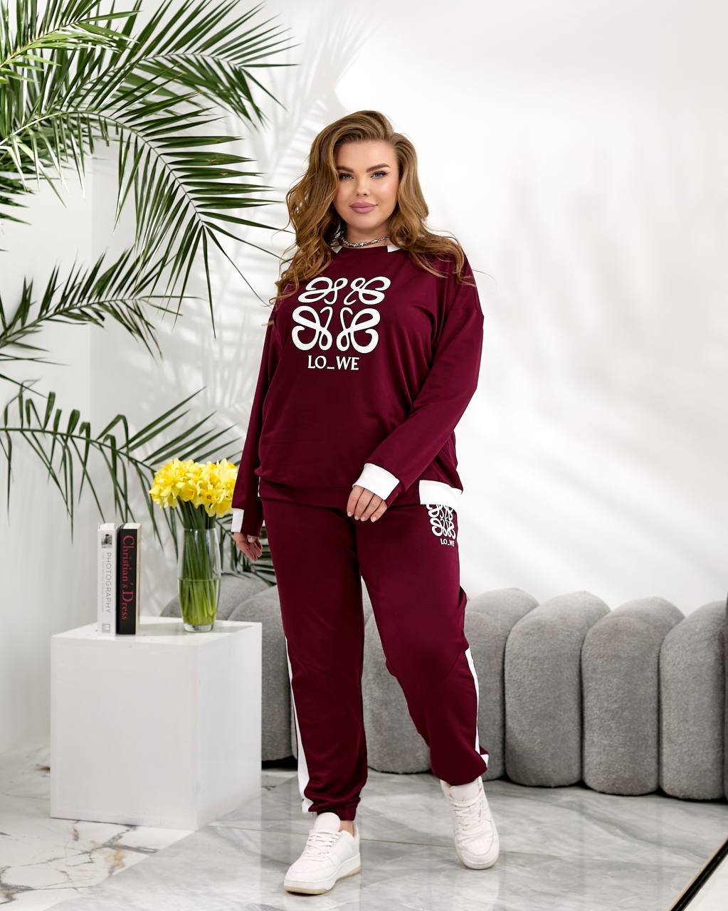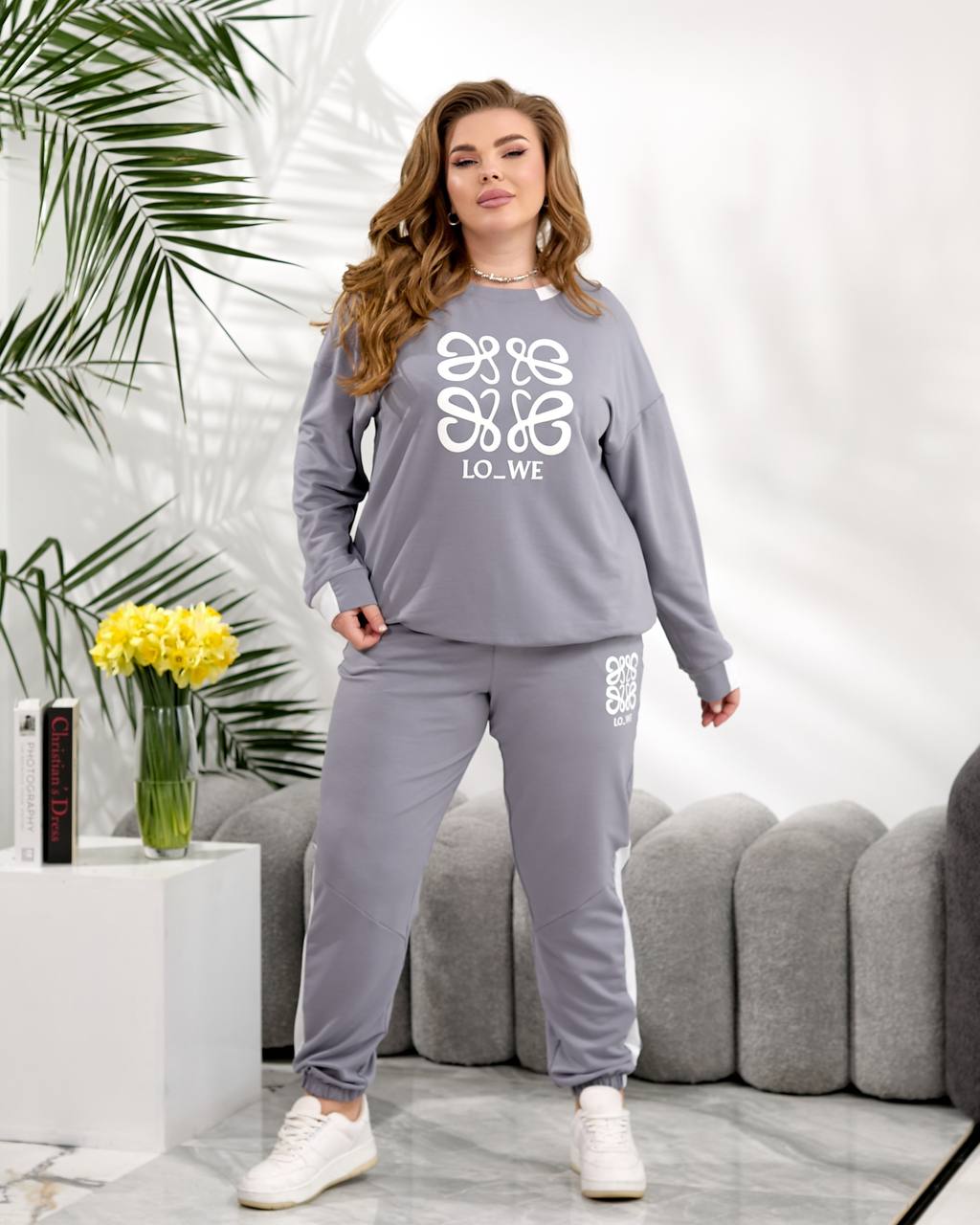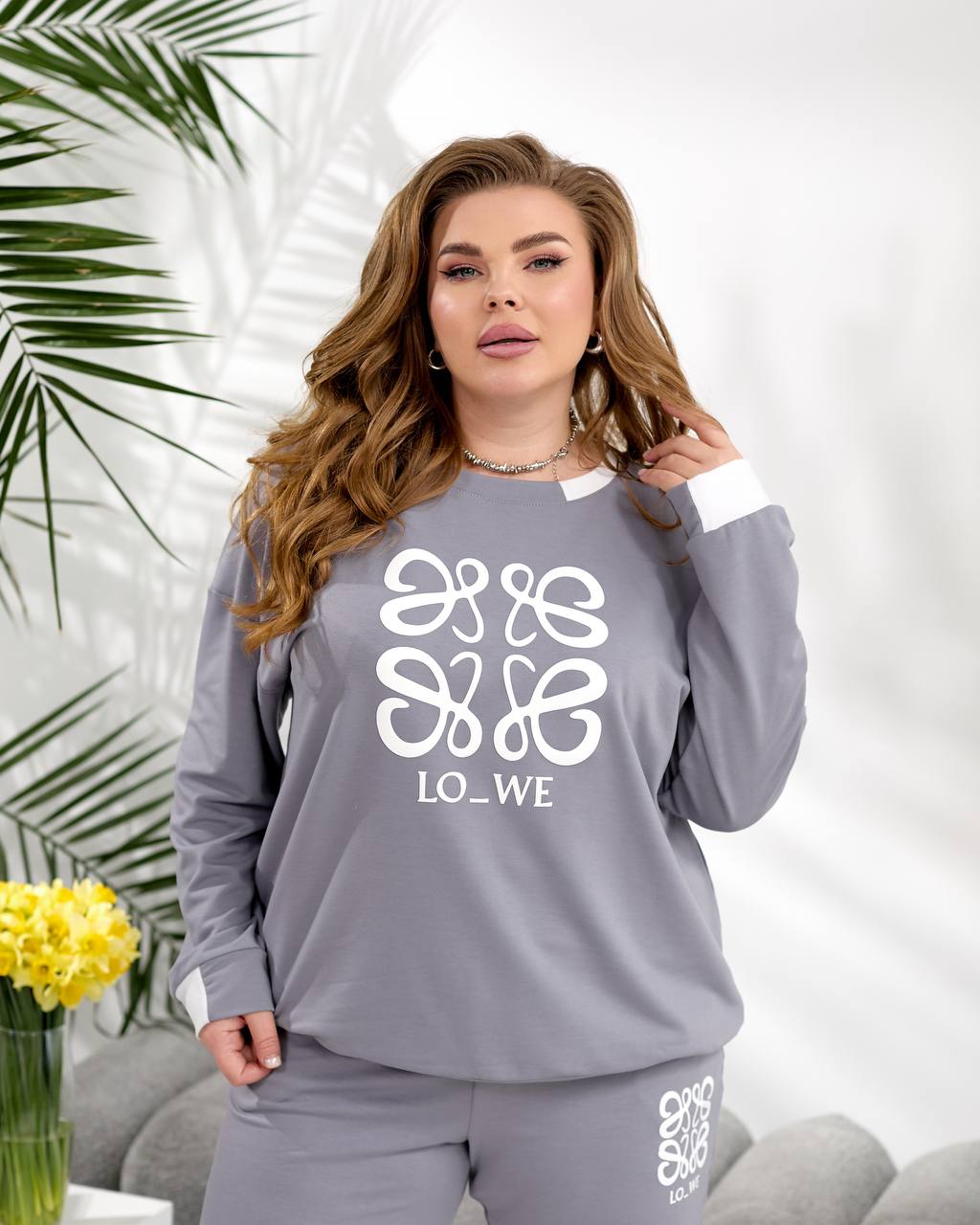 Цей затишний комплект із двонитки стане твоїм улюбленим супутником у повсякденному житті. ♀️ Ефектний принт LO_WE на кофті та штанах додасть родзинку твоєму образу. Вільний крій оверсайз подарує неймовірну свободу рухів. ✨