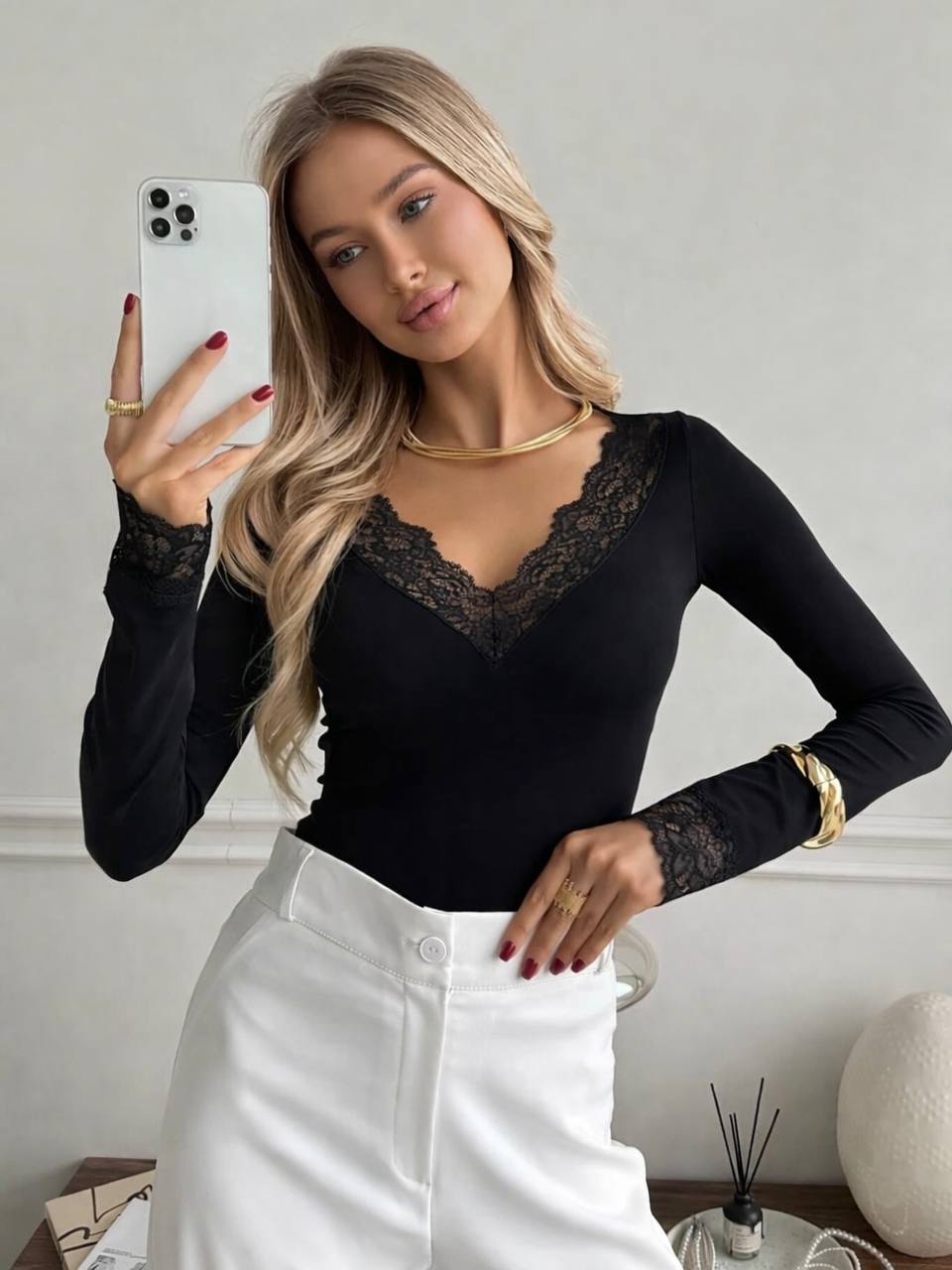 Мереживо додає образу легкості та жіночності, але вигляд залишається стриманим і стильним. Легко поєднується з джинсами, спідницями чи класичними штанами – саме той варіант, який хочеться носити знову і знову.