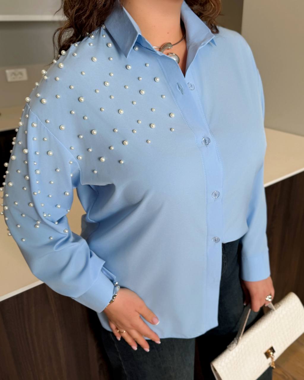 ✅Стильний сорочка с жемчужинами .