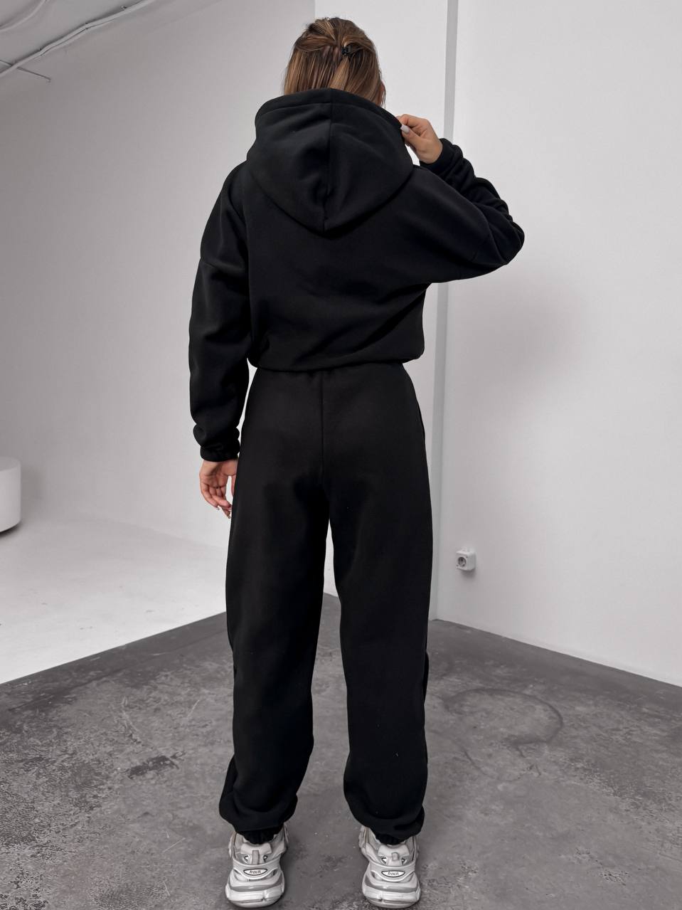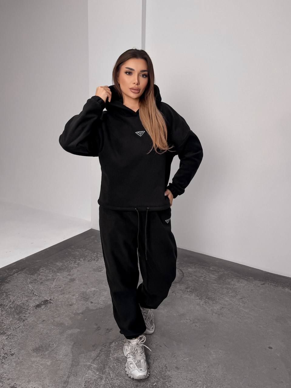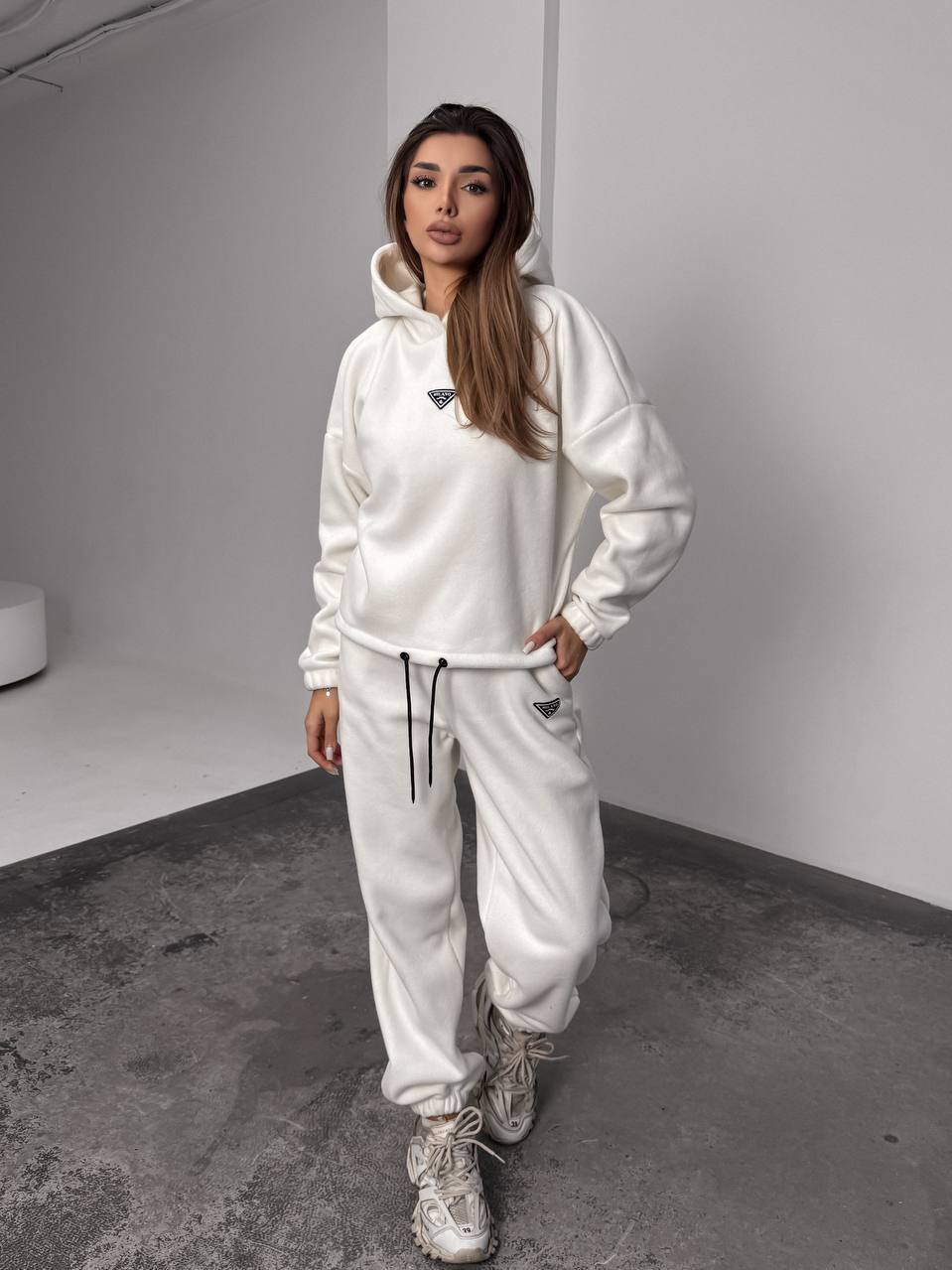 Жіночий флісовий костюм стильний та комфортний вибір на кожен день. Кофта з капюшоном має шнурок-затяжку по низу, можна носити її як прямою, так і зав’язаною для створення різного силуету. Штани з кишенями, низ на резинці додає комфорту та гарно тримає форму.